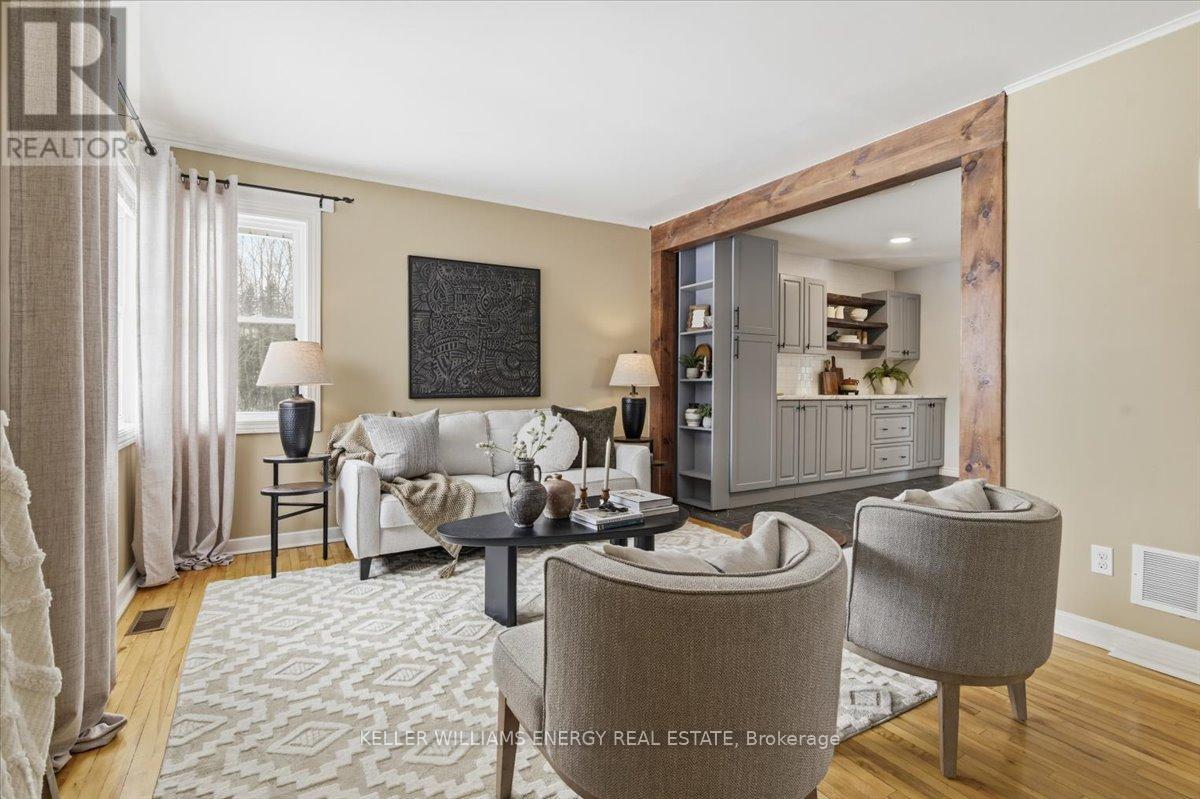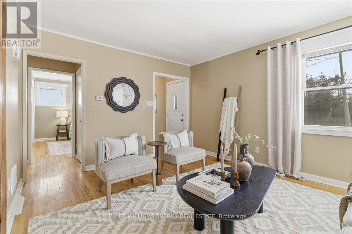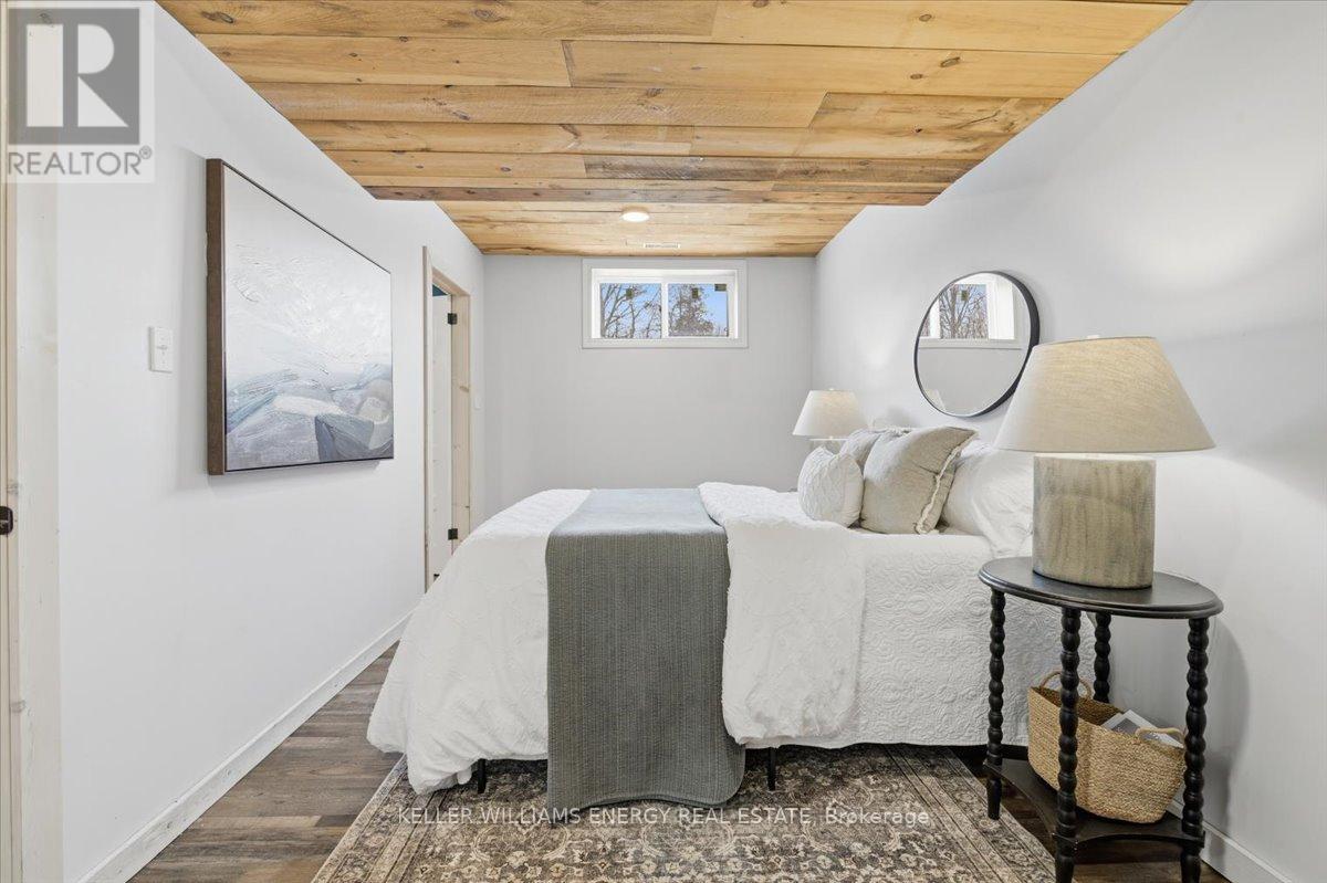Charming 2+1 bedroom home set on a generous in town lot with no rear neighbours and a treed backdrop. Located on a quiet street steps from in town amenities and within walking distance to the waterfront with a boat launch at the end of the street. Bright and inviting with large windows that bring in natural light, the home offers comfortable everyday living with a functional layout and welcoming main living space.The original home was built in 1950 and relocated to this property in 2009 where it was placed on a new poured concrete foundation with updated walls plumbing and wiring. Includes an attached deep garage with room for a vehicle along with tools or extra storage. Hardwood flooring runs through the living room and main floor bedrooms.The finished basement features 10 ft ceilings and includes a spacious family room or rec room with an electric fireplace, a large additional bedroom with walk in closet and a 3 piece ensuite, along with laundry and ample storage throughout the home. (id:61423)