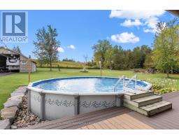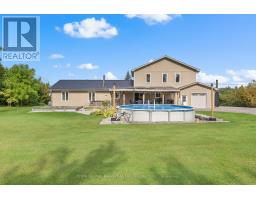 This home was designed for entertaining warm, inviting, and ready for gatherings. Enjoy morning coffee on the front porch, host dinner parties on the back deck, or spend summer evenings around the firepit. The kitchen flows seamlessly to a partially covered & screened TREX deck with a solar-heated pool, hot tub, and plenty of outdoor living space. Inside, the main floor features multiple dining areas, a cozy living room with fireplace, a home office nook, foyer, and 2-pc bath. Upstairs, the primary suite includes a 3-pc ensuite, glass shower, and his & her closets, plus two additional bedrooms and a 5-pc bath. The lower level offers even more living space with a rec room, bar, wood fireplace, 4th bedroom, 4-pc bath, laundry, and storage. For the storage enthusiast, this property is a dream with ample parking for cars & RVs, a drive-thru attached double garage, plus a detached garage for all the extras. Your country escape awaits. (id:61423)