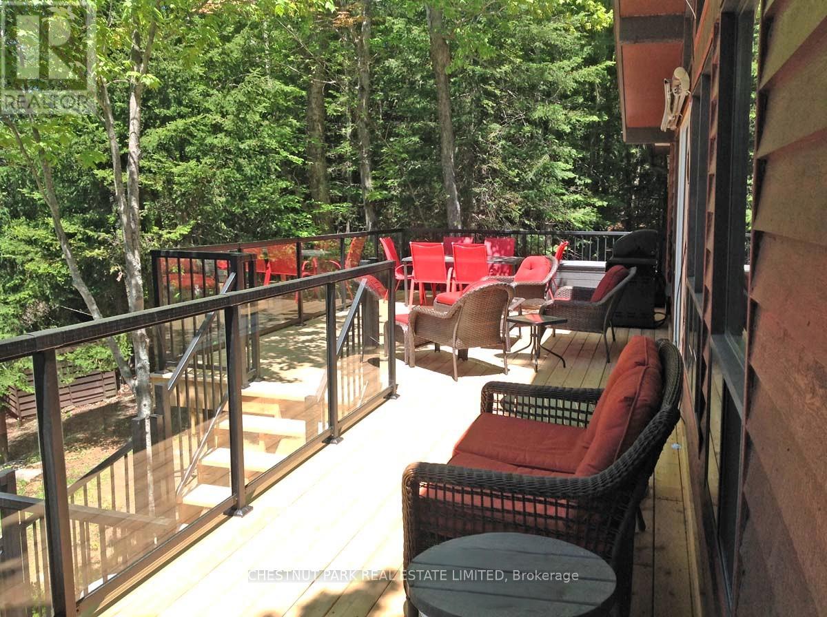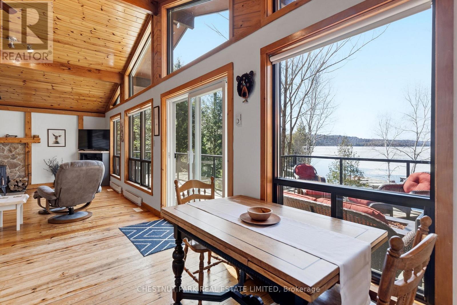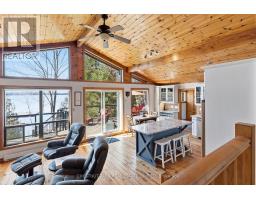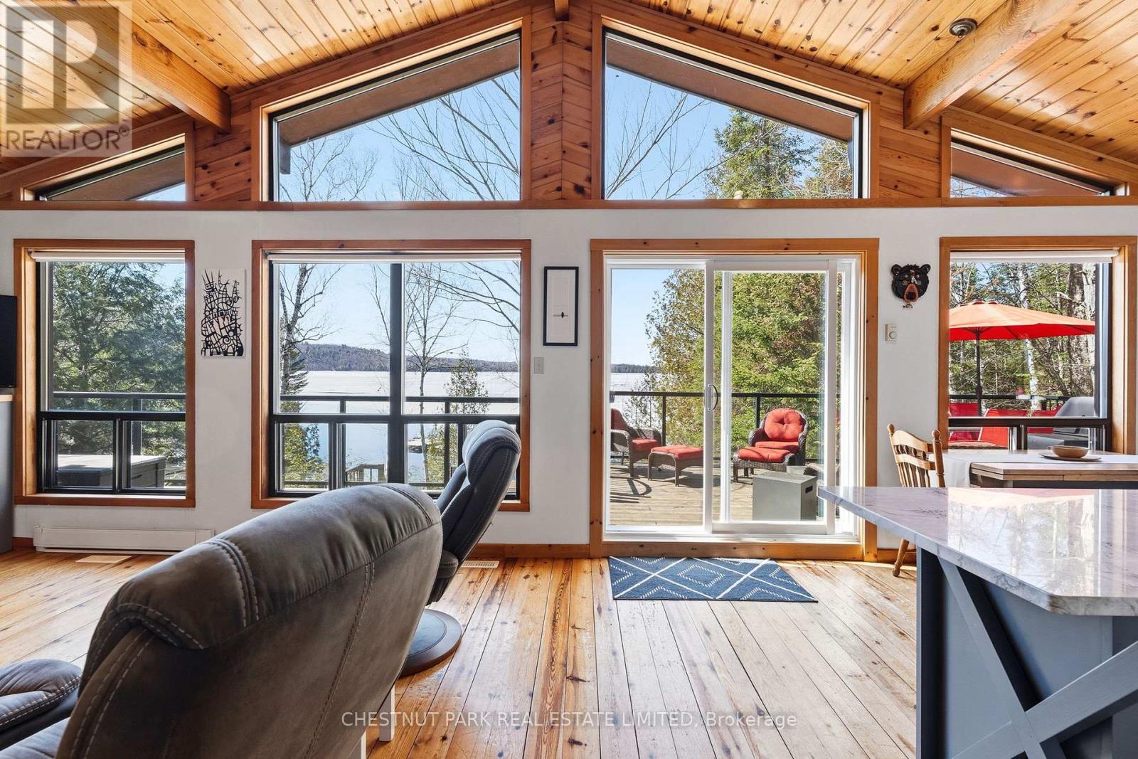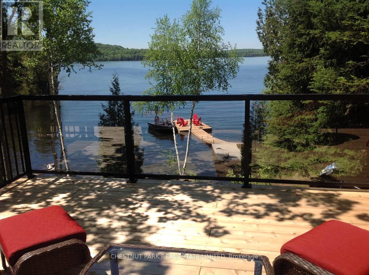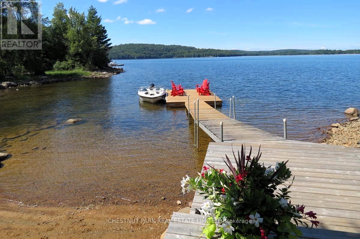 Experience the best of Redstone Lake living with west-facing exposure, all-day sun, and unforgettable sunsets over expansive big water views. This well-maintained 3+1 bedroom, 2 bathroom 4 season waterfront cottage is ideally positioned to capture the lake from both inside and out, offering a premium waterfront lifestyle in the Haliburton Highlands. Set on a private lot just under 2 acres with 168 feet of waterfrontage and year-round road access, the property offers exceptional privacy in a peaceful natural setting. The gently sloping, family-friendly lot leads to a sandy beach with easy access to clean, deep shoreline, ideal for swimming, boating, and all-day enjoyment on the lake. Outdoor living is a standout, featuring expansive decks, a private setting at the cottage and dock, and a lakeside firepit area perfect for entertaining. A convenient lakeside storage shed and additional utility space provide excellent storage for waterfront equipment and recreational gear. A detached garage with loft offers excellent versatility, ideal for a workshop, studio, or flex space. Redstone Lake is known for its size, depth, and excellent boating and fishing, with a quiet atmosphere and responsible boat traffic. Surrounded by trails and wilderness, and located close to Haliburton Forest and Wildlife Reserve and Sir Sam's Ski Area, this property offers a true four-season recreational setting. Well-equipped for comfort and reliability, the property includes a full-home 22kW propane generator with fibre WiFi and app-based monitoring, hard-piped BBQ hookup, and additional propane rough-ins for future upgrades. End your days with breathtaking sunsets on Redstone Lake, where sunset exposure and expansive big water views create the perfect Haliburton waterfront escape. (id:61423)