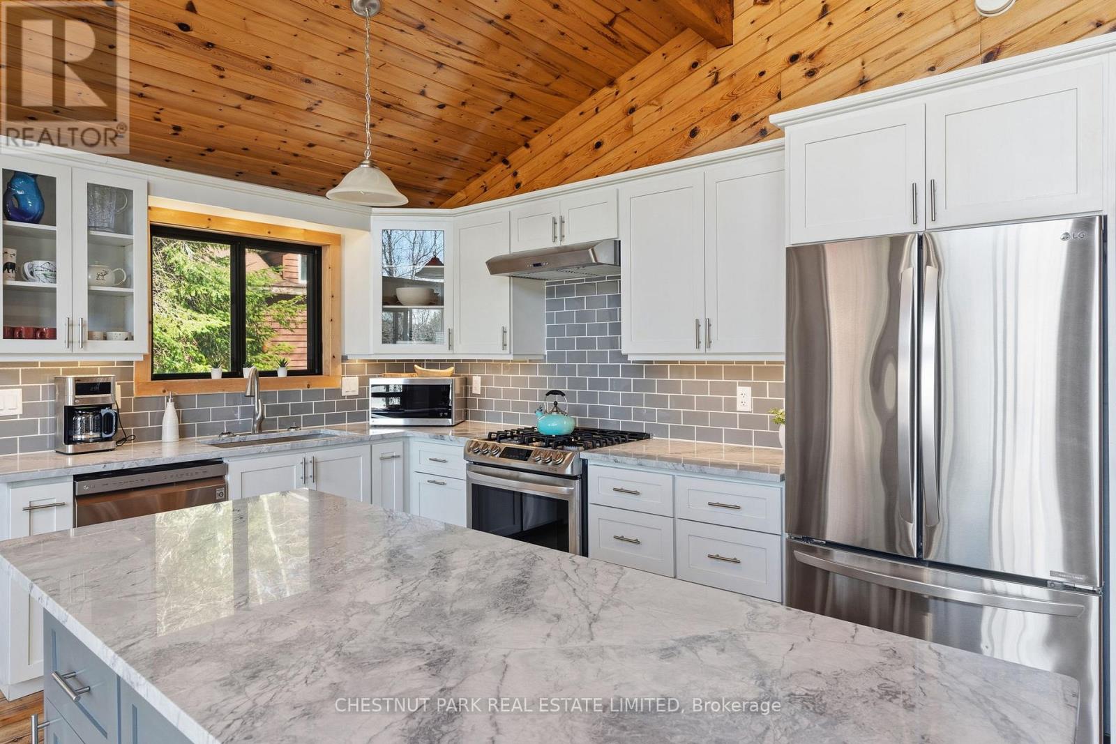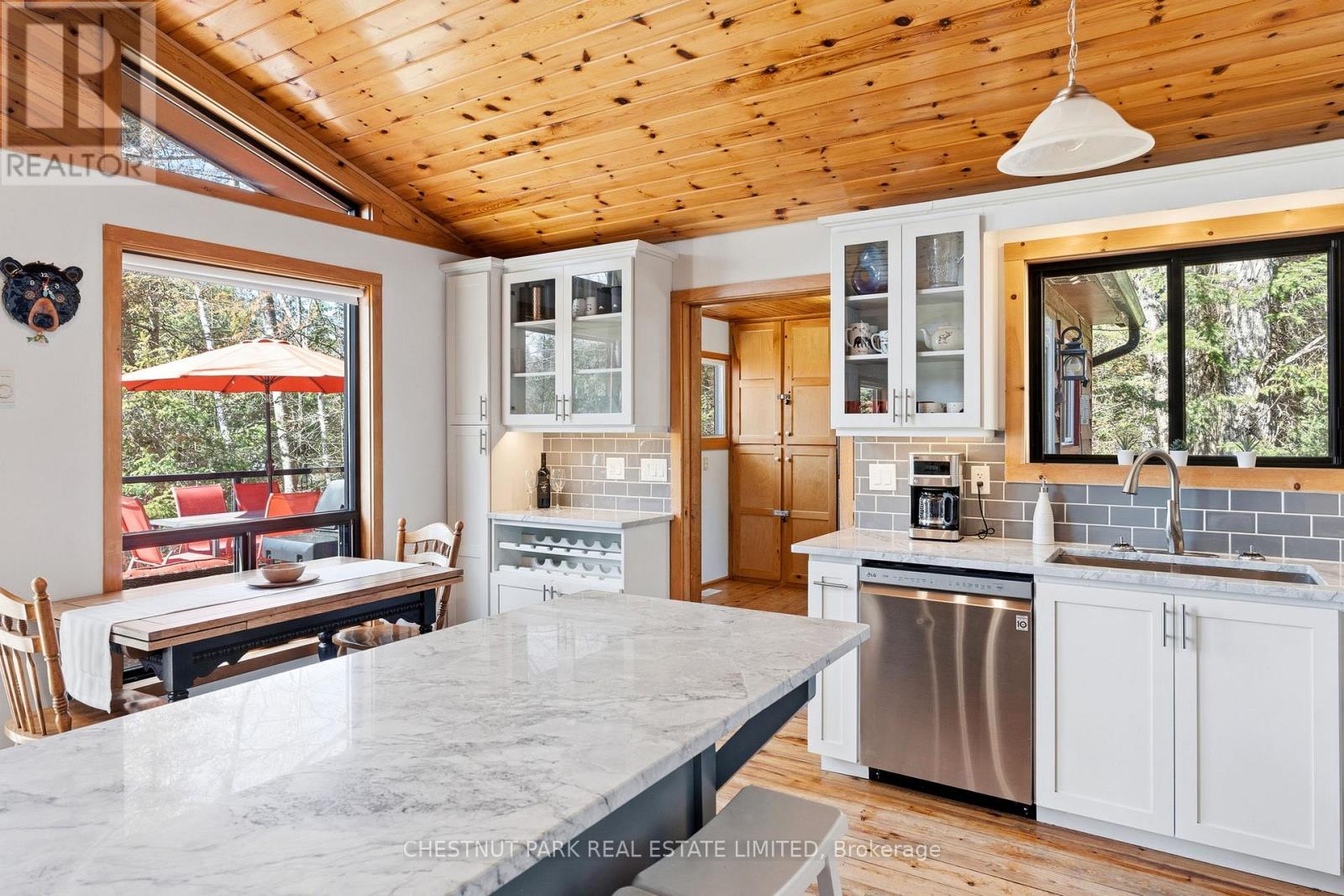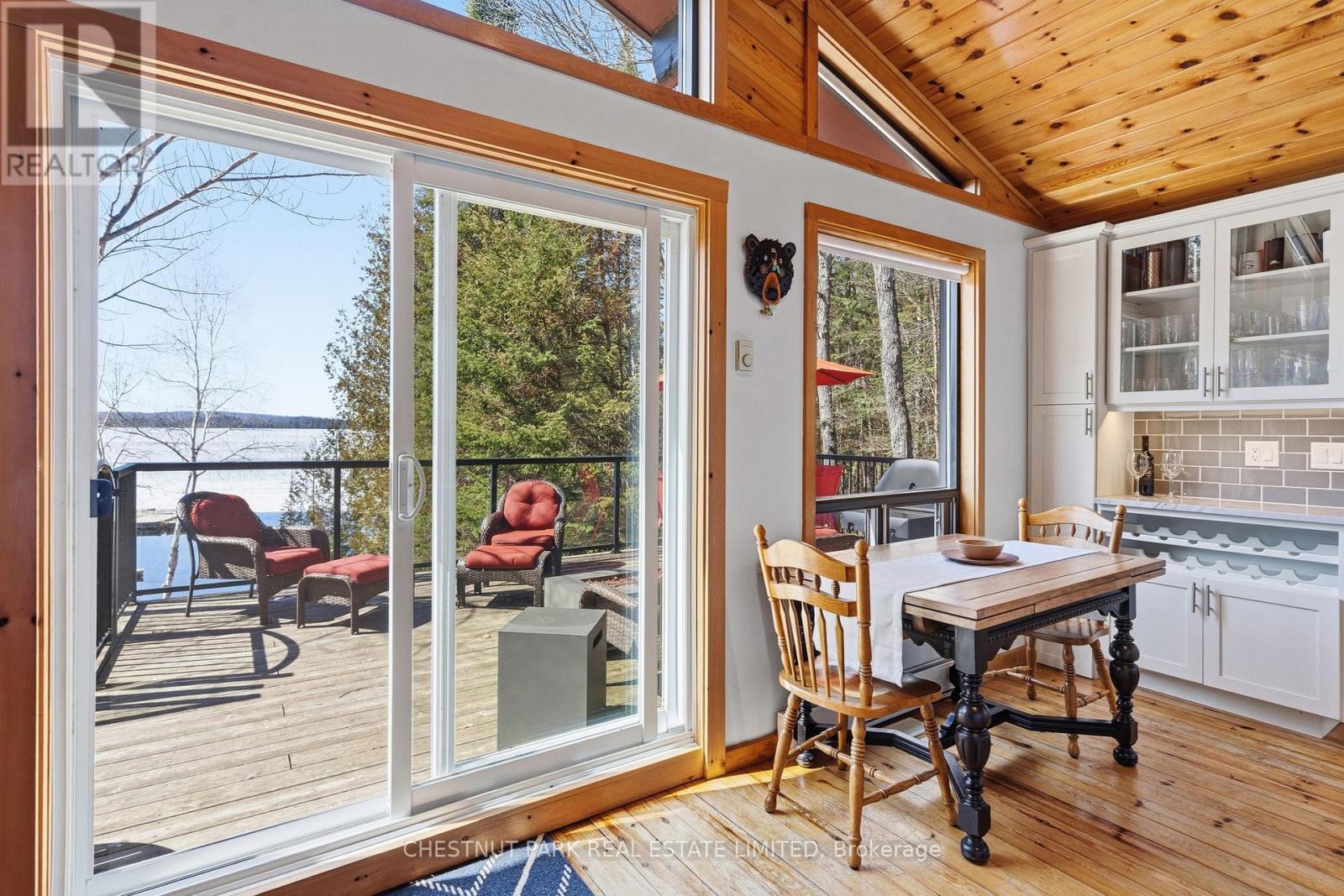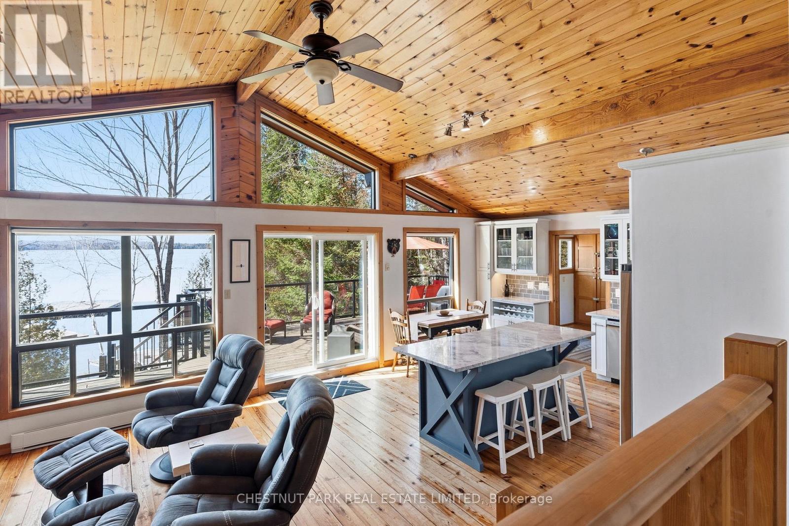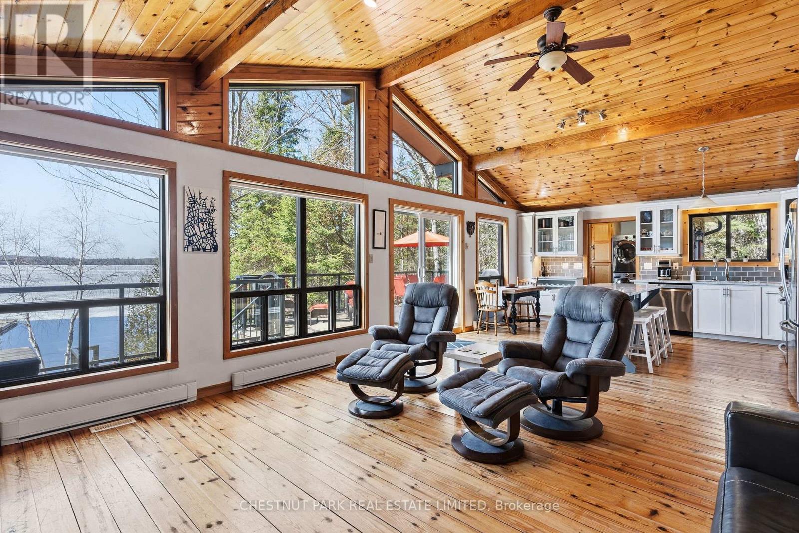 Experience the best of Redstone Lake living with west-facing exposure, all-day sun, and unforgettable sunsets over expansive big water views. This well-maintained 3+1 bedroom, 2 bathroom 4 season waterfront cottage is ideally positioned to capture the lake from both inside and out, offering a premium waterfront lifestyle in the Haliburton Highlands. Set on a private lot just under 2 acres with 168 feet of waterfrontage and year-round road access, the property offers exceptional privacy in a peaceful natural setting. The gently sloping, family-friendly lot leads to a sandy beach with easy access to clean, deep shoreline, ideal for swimming, boating, and all-day enjoyment on the lake. Outdoor living is a standout, featuring expansive decks, a private setting at the cottage and dock, and a lakeside firepit area perfect for entertaining. A convenient lakeside storage shed and additional utility space provide excellent storage for waterfront equipment and recreational gear. A detached garage with loft offers excellent versatility, ideal for a workshop, studio, or flex space. Redstone Lake is known for its size, depth, and excellent boating and fishing, with a quiet atmosphere and responsible boat traffic. Surrounded by trails and wilderness, and located close to Haliburton Forest and Wildlife Reserve and Sir Sam's Ski Area, this property offers a true four-season recreational setting. Well-equipped for comfort and reliability, the property includes a full-home 22kW propane generator with fibre WiFi and app-based monitoring, hard-piped BBQ hookup, and additional propane rough-ins for future upgrades. End your days with breathtaking sunsets on Redstone Lake, where sunset exposure and expansive big water views create the perfect Haliburton waterfront escape. (id:61423)