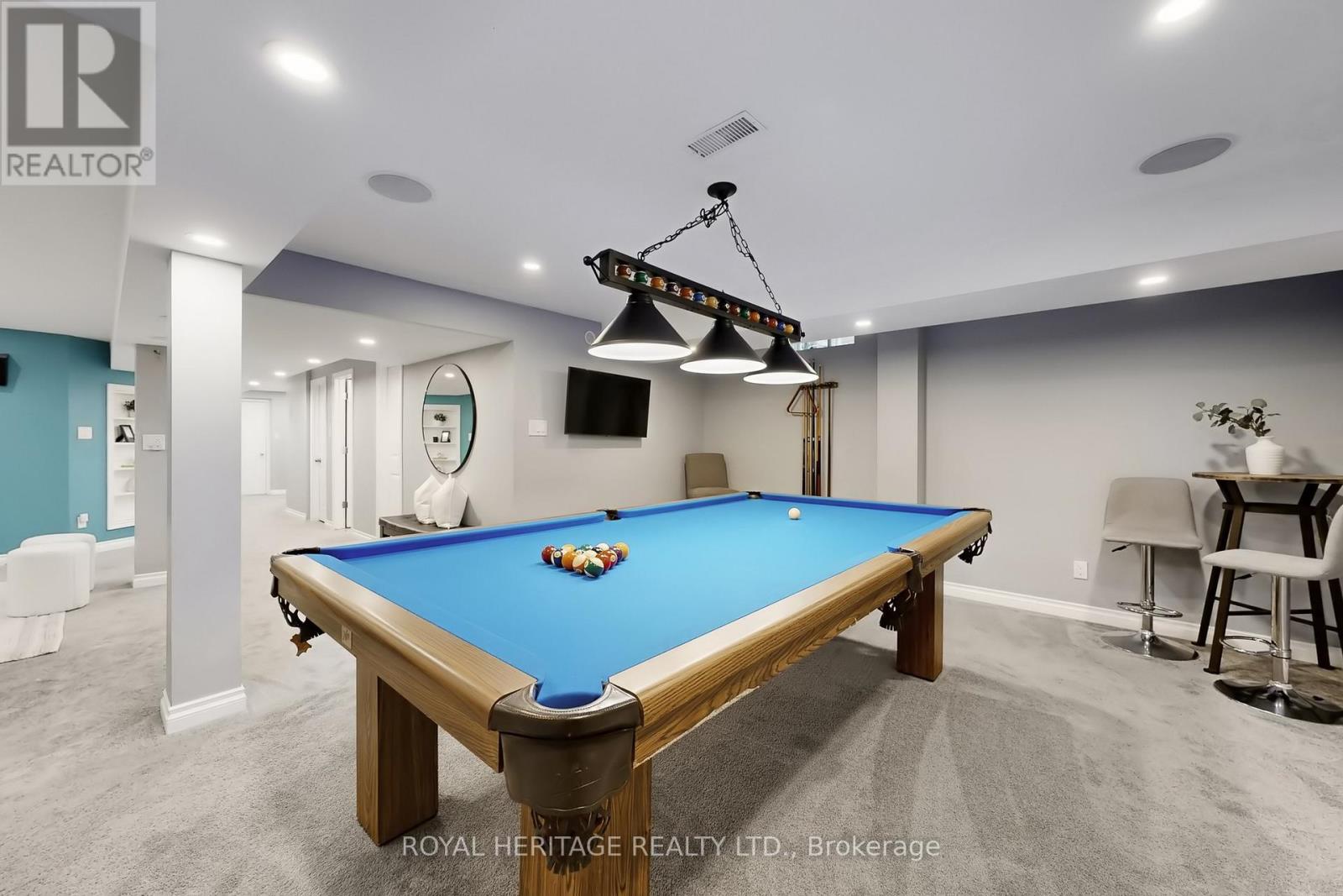 Welcome to this spacious and well-maintained family home, freshly painted and move-in ready. Designed with both everyday living and entertaining in mind, this property offers generous living space throughout. The main floor features a large kitchen with an eat-in/breakfast area, a separate dining room for formal gatherings, and a bright living room complete with a cozy natural gas fireplace. Upstairs, you'll find four well-sized bedrooms, including a primary retreat with a walk-in closet and a private ensuite featuring double sinks and a separate soaker tub. The fully finished basement is an entertainer's dream, complete with built-in speakers, ample space for a large TV, and a pool table (included) - perfect for hosting family and friends. Additional highlights include updated 200 amp electrical service, a garage equipped with 100 amp service ideal for an electric vehicle charger, and a backyard oasis featuring a heated above-ground pool. (id:61423)