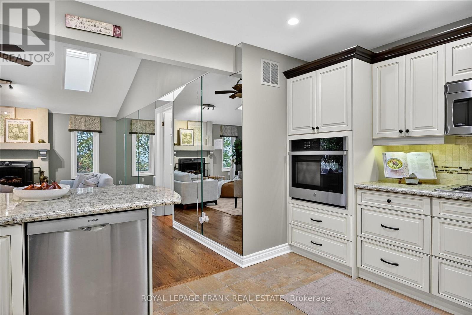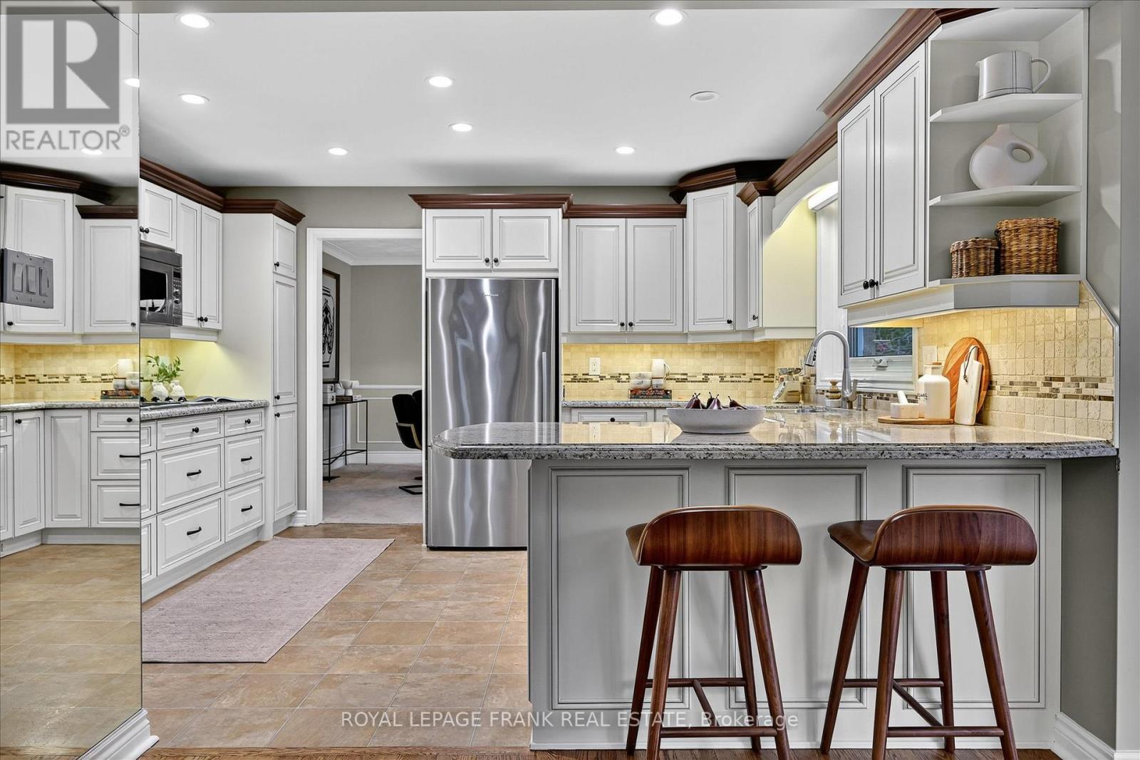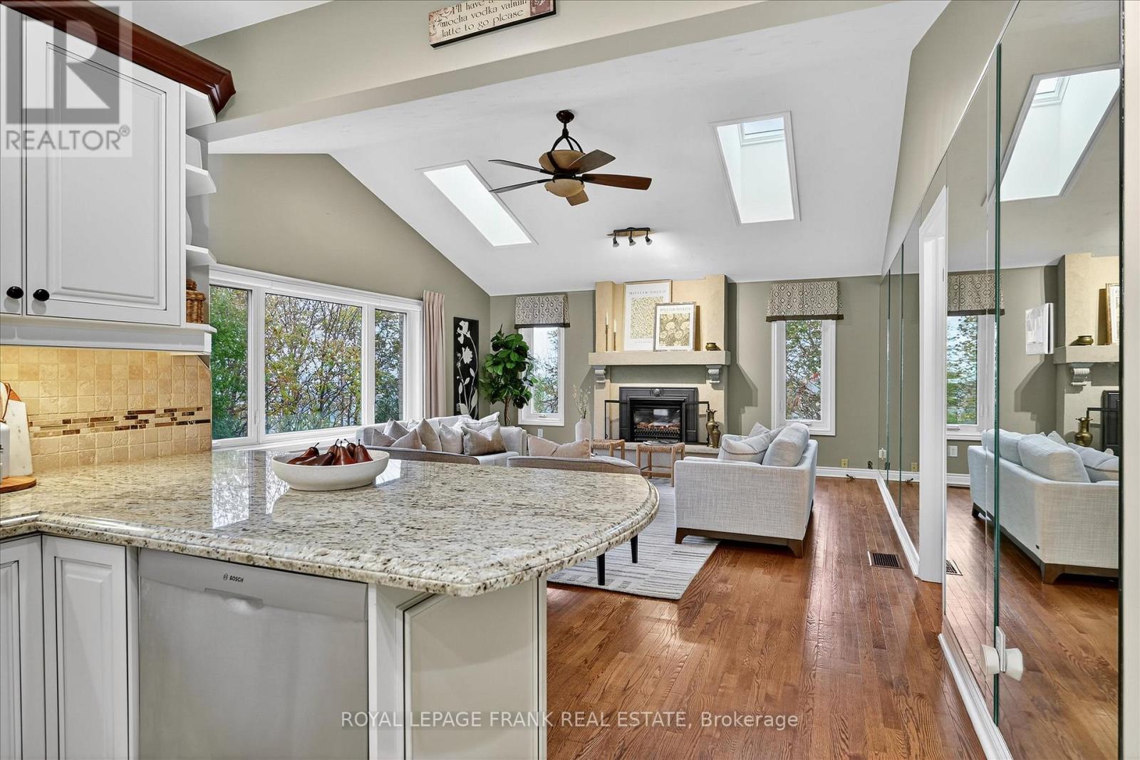 Stunning executive bungalow in the west end of Peterborough, located on a dead end cul de sac near Kawartha Golf and Country Club perched on a ravine lot with a spectacular view over the city to the southeast. This custom-built home is exceptionally well cared for inside and out. As a retirement bungalow you can live comfortably on one floor and have the walkout separate entrance lower level for guests or extended family. As a family home you have 4 bedrooms, 3.5 baths, 3 separate living spaces, 2 full kitchens for entertaining or a ready-made in-law suite with its own entrance for mom and dad. It's very private while sitting on the entertainment size deck off the main floor family room in the summer surrounded by trees and has spectacular city views in the winter when the leaves are down. Close to Monseigneur Jamot, St. Catherines, James Strath and Crestwood schools. Presale inspection available (id:61423)