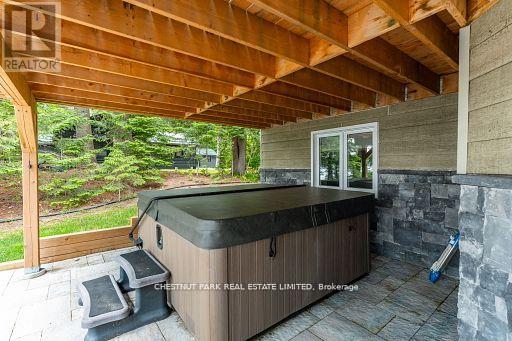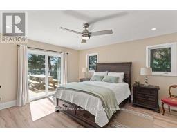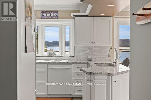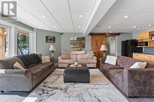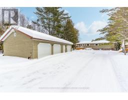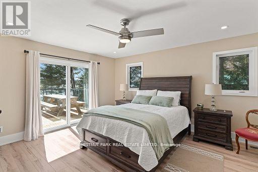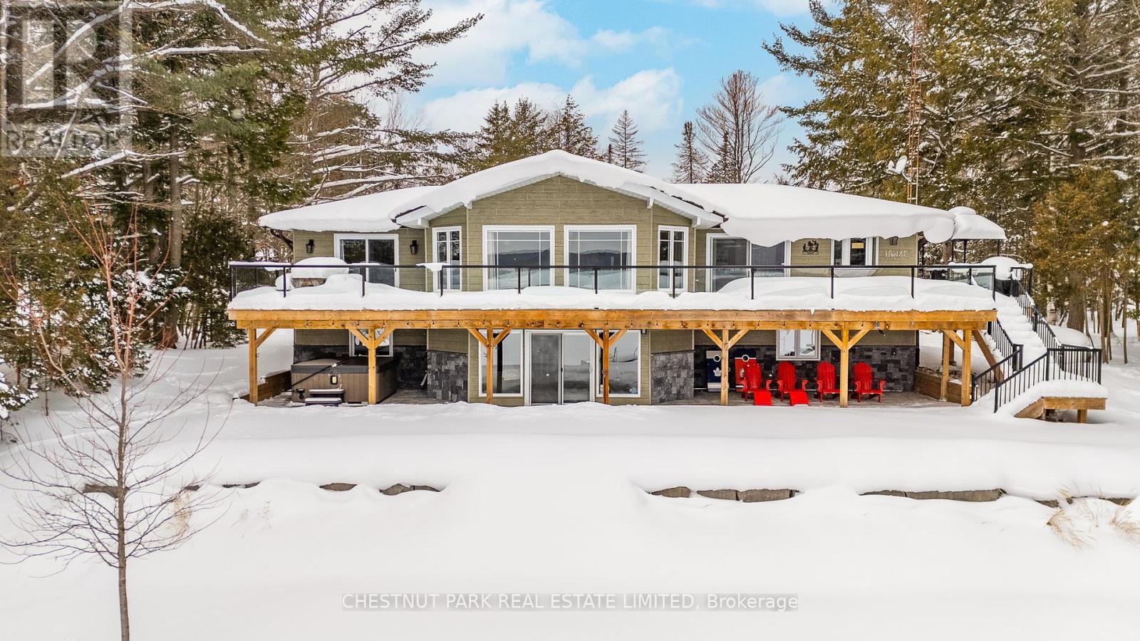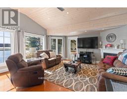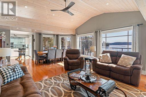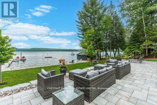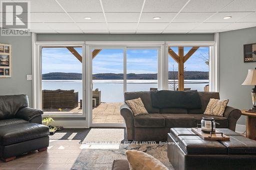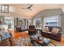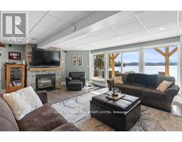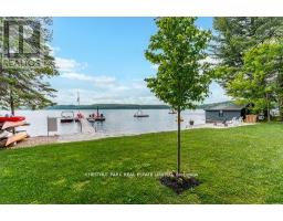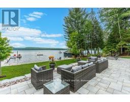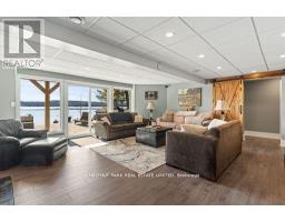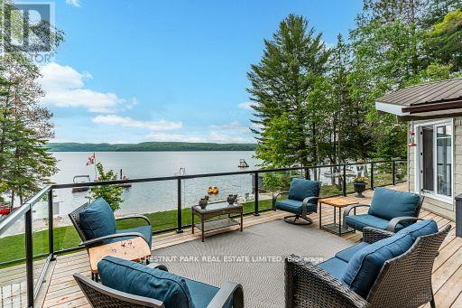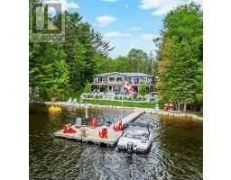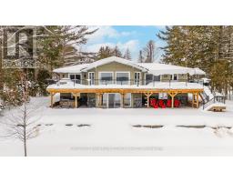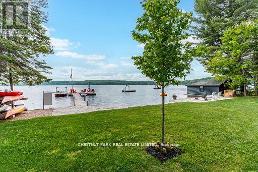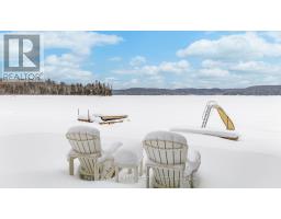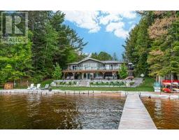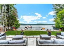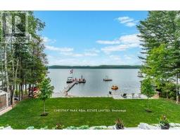 This refined Haliburton Lake waterfront residence offers a rare combination of luxury, privacy, and four-season recreation on one of the area's most prestigious lakes. Ideal for year-round living or an elevated cottage retreat, the home features 2,850 sq. ft. of well-designed living space on a level, treed 1.1-acre lot with 100 feet of prime sandy shoreline and clear, deep water. The shoreline offers both shallow entry and deep water off the dock-perfect for swimming, boating, and fishing-while wide lake views and southeast-facing exposure provide excellent natural light and tranquil sunrise vistas. Multiple walkouts connect to a 60-foot lakeside patio, creating seamless indoor-outdoor living ideal for entertaining. Inside, the 4+1 bedroom, 3 bathroom layout is defined by cathedral ceilings, hardwood floors, two propane fireplaces, and an open-concept kitchen and living area designed for both everyday comfort and hosting. The property has extensive landscaping with exceptional perennial gardens, enhancing privacy and curb appeal while complementing the natural setting. Additional features include a fitness/games room and a 3-car garage, with one insulated and heated bay ideal for vehicles and recreational equipment. Well suited for winter use, the home offers easy year-round access and proximity to extensive four-season activities including snowmobiling, ice fishing, skating, cross-country skiing, and downhill skiing at Sir Sam's Ski / Ride, just 20 minutes away. Modern comforts include central air, central vacuum, a high-efficiency propane furnace, and a full backup generator. A distinguished offering in Haliburton real estate, this waterfront property delivers understated luxury and year-round enjoyment in a premier lakefront setting. (id:61423)