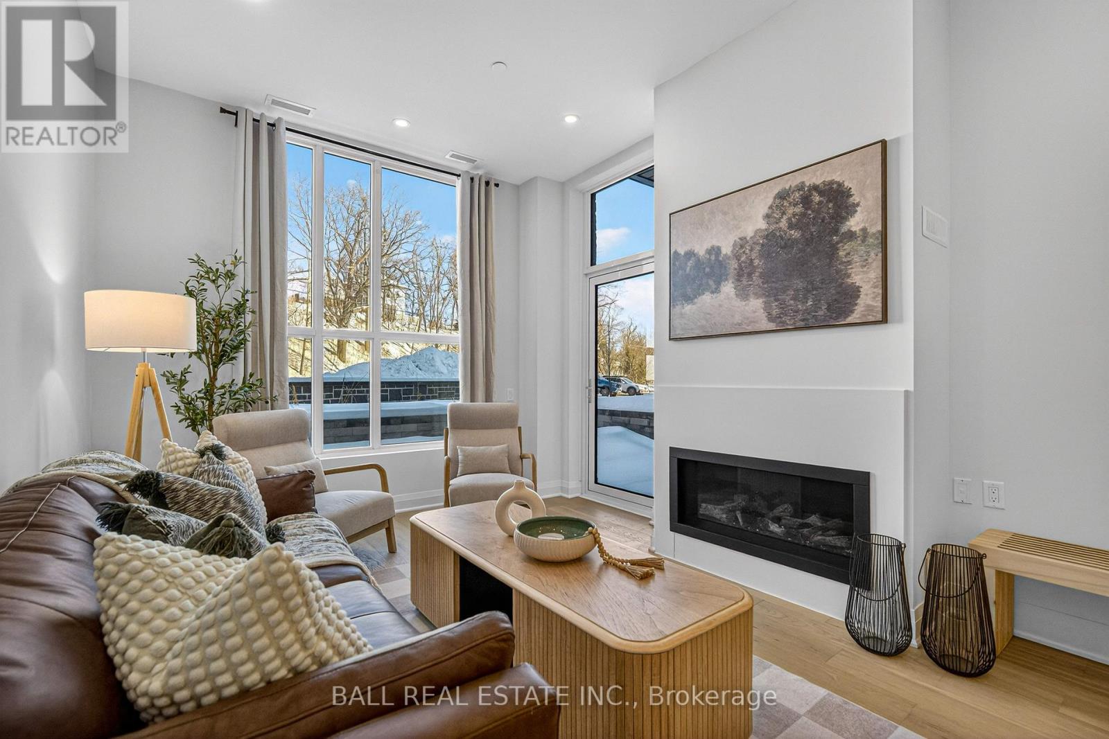 Luxury Living in the Heart of Kawartha Lakes, experience resort-style living every day in Kawartha Lakes' premier condo development - The Moorings on Cameron Lake! This stunning 2-bedroom, 2-bath suite + den with 1149 sq ft of elegant and spacious living with 9ft ceilings, clerestory windows and an open-concept layout with premium finishes throughout. Suite Features: Bright kitchen, dining/living area with gas fireplace and walk-out to an oversized corner terrace (gas BBQ hookup). Upgraded kitchen with quality cabinets, quartz countertops, under-cabinet lighting and stainless-steel appliances. Primary suite has a walk-in closet and luxurious en-suite bathroom. Second bedroom ideal for guests. Den that would make a great office space. In-suite laundry room with extra storage. Engineered hardwood & porcelain tile flooring throughout, upgraded doors and trim. One underground parking spot and private locker included. World-Class Amenities: Outside Lakeview lounge with western sunsets, lakeview state-of-the-art fitness centre with indoor sauna, lakeview owners lounge with caterer's kitchen & movie theatre (can be booked for private events), 2 guests suites, grand foyer with gas fireplace, heated outdoor pool & hot tub, tennis/pickleball court, and beautifully landscaped outdoor areas. Boat slips available for purchase at the on-site marina (to be built, spaces limited) and as a bonus you get a boat worth approximately 25-30,000 dollars with this unit!! . Steps from the Victoria Trail, shopping, dining, wellness services, and entertainment. Located on the tranquil shores of Cameron Lake, part of the Trent-Severn Waterway, and just minutes to Lindsay and Bobcaygeon, this is an ideal blend of luxury, convenience, and nature. Enjoy spectacular western sunsets, peaceful surroundings, and vibrant local living - all less than 90 minutes from the GTA. Only a few units remain - don't miss this rare opportunity to own at The Moorings! (id:61423)