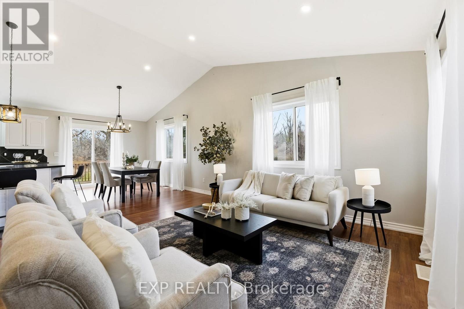 Opportunity and Possibility headline this home set on a near 1/2-acre lot tucked on a quiet street in the heart of the growing little hamlet of Hastings. Catering to ownership on all levels, this 4 bedroom (2+2), 2 Kitchen (1+1), 3-bathroom home with lower-level walk-out/separate entrance, presents a multitude of options. New-growing families, retirees, multi-generational, investors adding to their portfolio, first time home buyers with the additional income potential and everything in between. The open concept main floor showcases the home and has many wonderful features - Vaulted ceilings sprawling over the kitchen-living and dining room spaces with a center island positioned to entertain. Patio walkouts from the dining and primary rooms to private deck spaces overlooking the beautiful .44 acre lot, garage access, 2 big bedrooms, office/den/3rd bedroom, laundry-powder room, and a well appointed semi-4-piece ensuite. The lower level offers flexibility to have an apartment, in-law suite, additional income, or just a wonderful family/recreational area. 2 large bedrooms, 3-piece bathroom, fridge, stove and separate walk-out entrance. New glass custom cut to replace in all windows- lower level installed and upstairs still in garage. North side of home has been waterproofed and second sump installed. Walking distance to the seaway to around the world via the Trent Severn Waterway, Lift locks, Best Fish n Chips in Northumberland, Parks, Shopping, Downtown, Highways 7 & 45, and so much more! (id:61423)