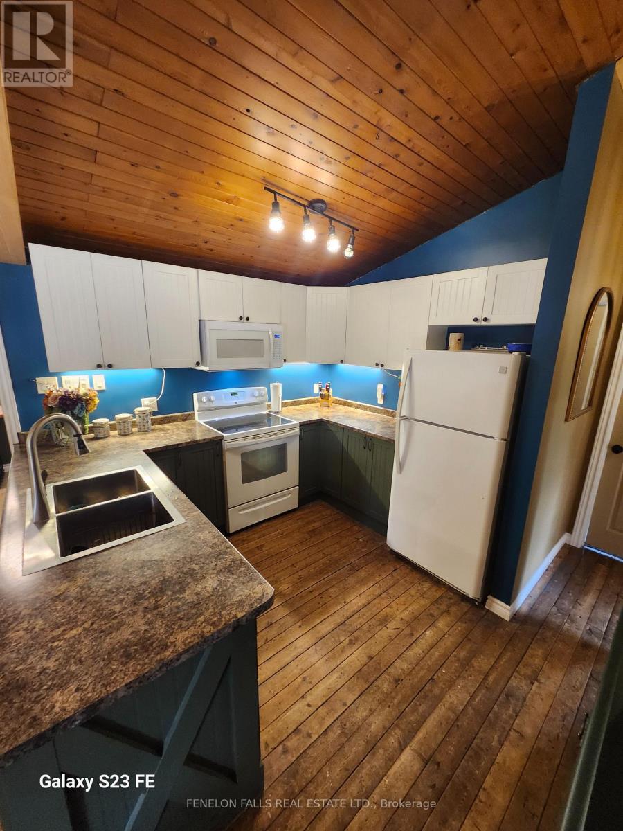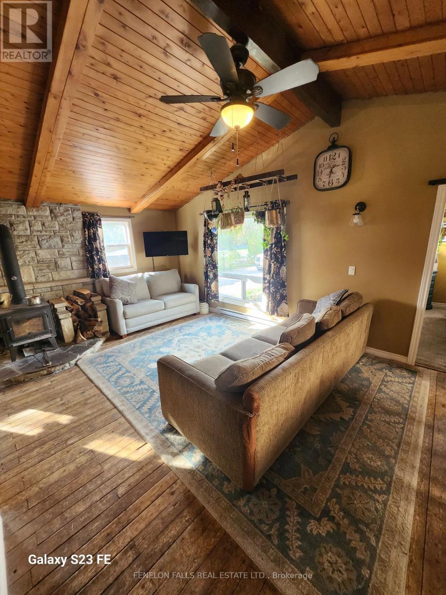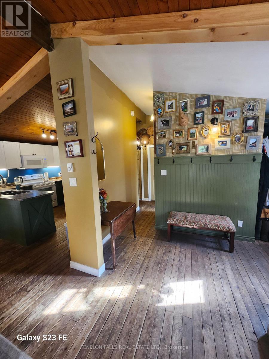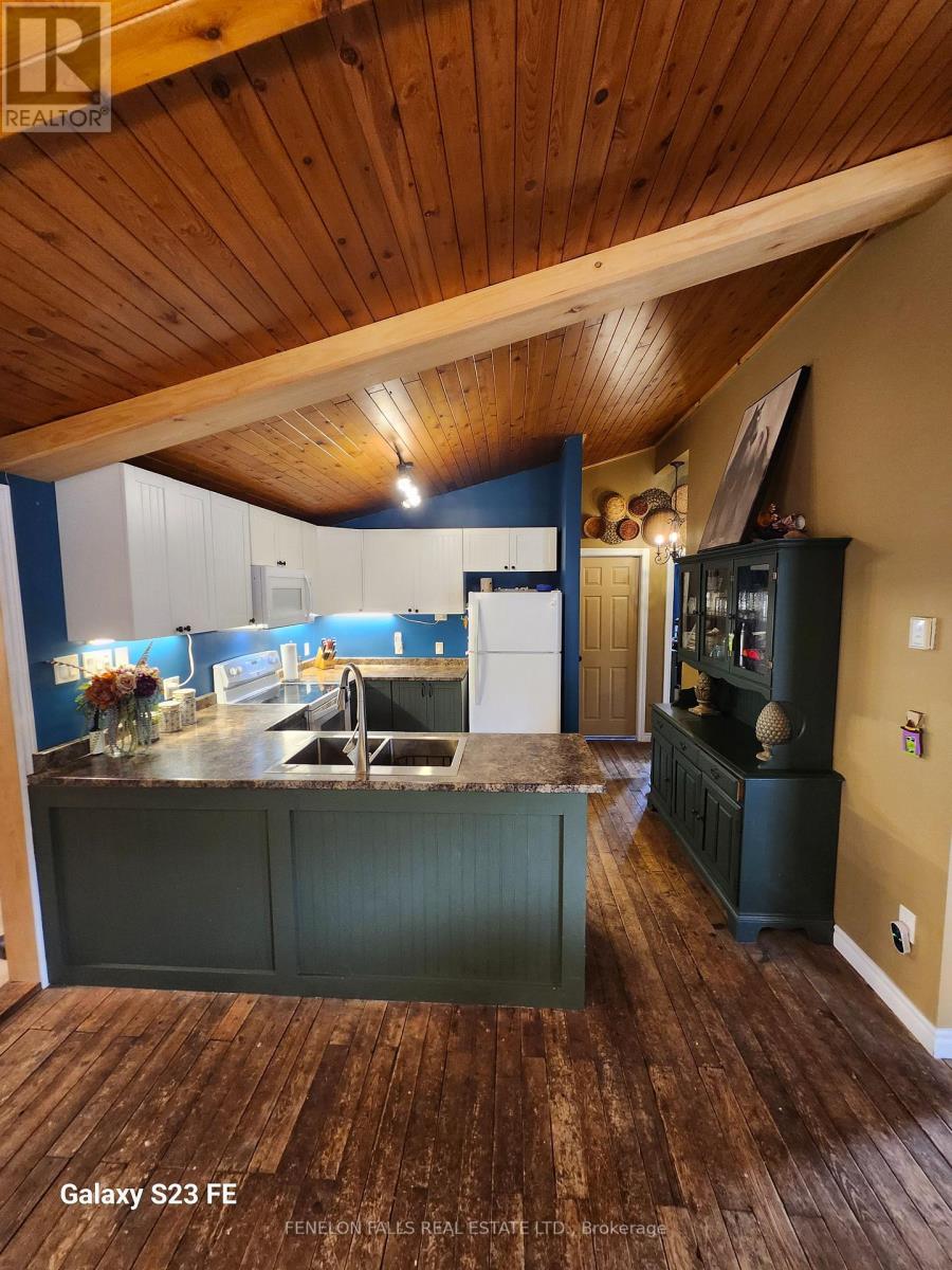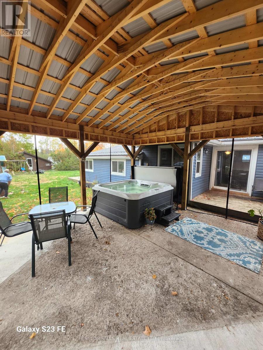 This affordable 3 bedroom, 1 bathroom home sits on nearly 1 acre just meters from water access to Sturgeon Lake on a good paved road between Fenelon Falls and Bobcaygeon. Over 50 different types of perennials make gardening simple and adds colour to the spacious yard. Lots of room to tuck equipment or toys out of the way at rear of yard. A long list of upgrades including metal roof with extra insulation underneath (2024), New eavestrough (2024), New Gazebo and Hot Tub (2025), New siding (2023), New Panel and 200 amp service to the home and shed (2024) and other upgrades within the last 7 years including kitchen, bathroom, most windows. (id:61423)
