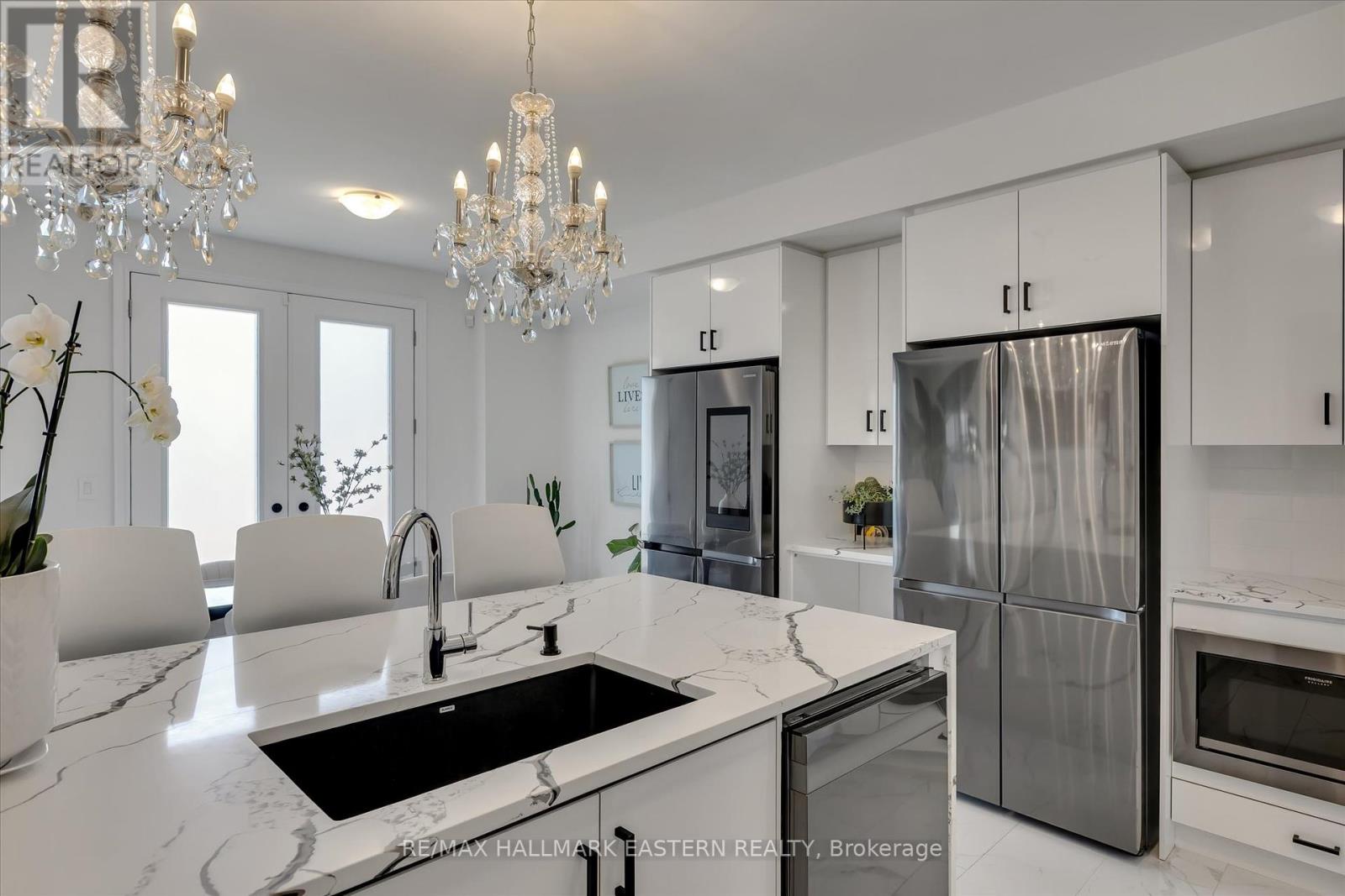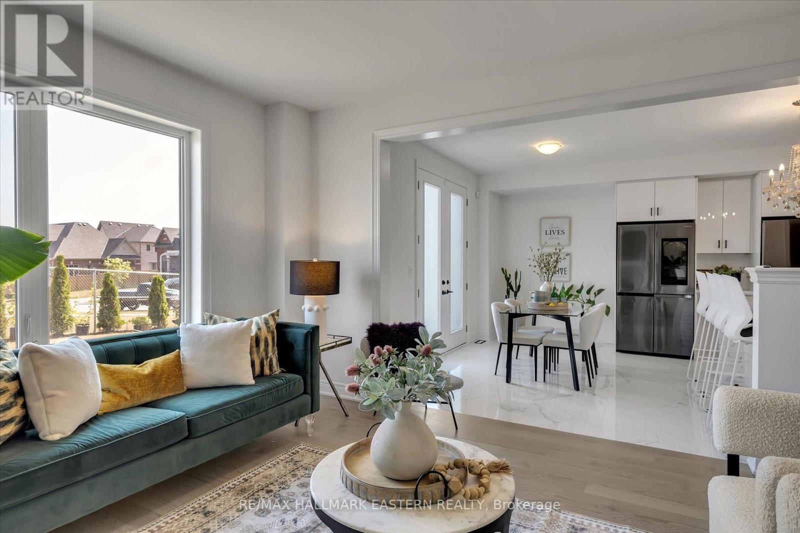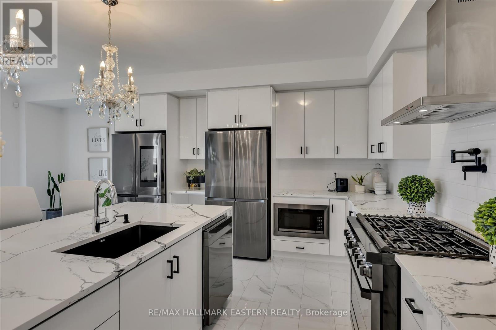 Welcome to this stunning 4 bedroom, 4 bathroom home in the sought after Gracefields Redux Development by Lindvest! This 2 year old home has over $100,000 worth of upgrades with an extra $80,000 spent for the premium lot that backs onto green space/park. The large, modern kitchen is perfect for those who love to cook and entertain, showcasing upgraded appliances including two refrigerators, built-in microwave, gas cook top with pot filler, quartz countertops, a large island, and lots of cabinetry for storage. Offering a thoughtful layout and quality finishes throughout, enter to white oak engineered hardwood flooring on the main level and a striking open staircase extending from the basement to the top floor. A separate dining room leads into that aforementioned striking kitchen and a large living room with gas fireplace and sleek mantel and large windows that let in plenty of natural light. A convenient 2-piece bathroom completes the main floor. Upstairs, the spacious primary bedroom includes a walk-in closet and a 5-piece ensuite with a standalone tub, glass-enclosed shower, and double sinks. The second bedroom also enjoys its own private ensuite and generous closet space, while the remaining two bedrooms share a well-appointed 3-piece bathroom. All bathrooms in the home feature quartz countertops, offering luxury at all turns! Short drive to Hwy 401, Hwy 35/115, Newcastle Marina and stunning views of Lake Ontario! Minutes to all amenities including local sport complex, parks, grocery stores, restaurants and shopping. (id:61423)