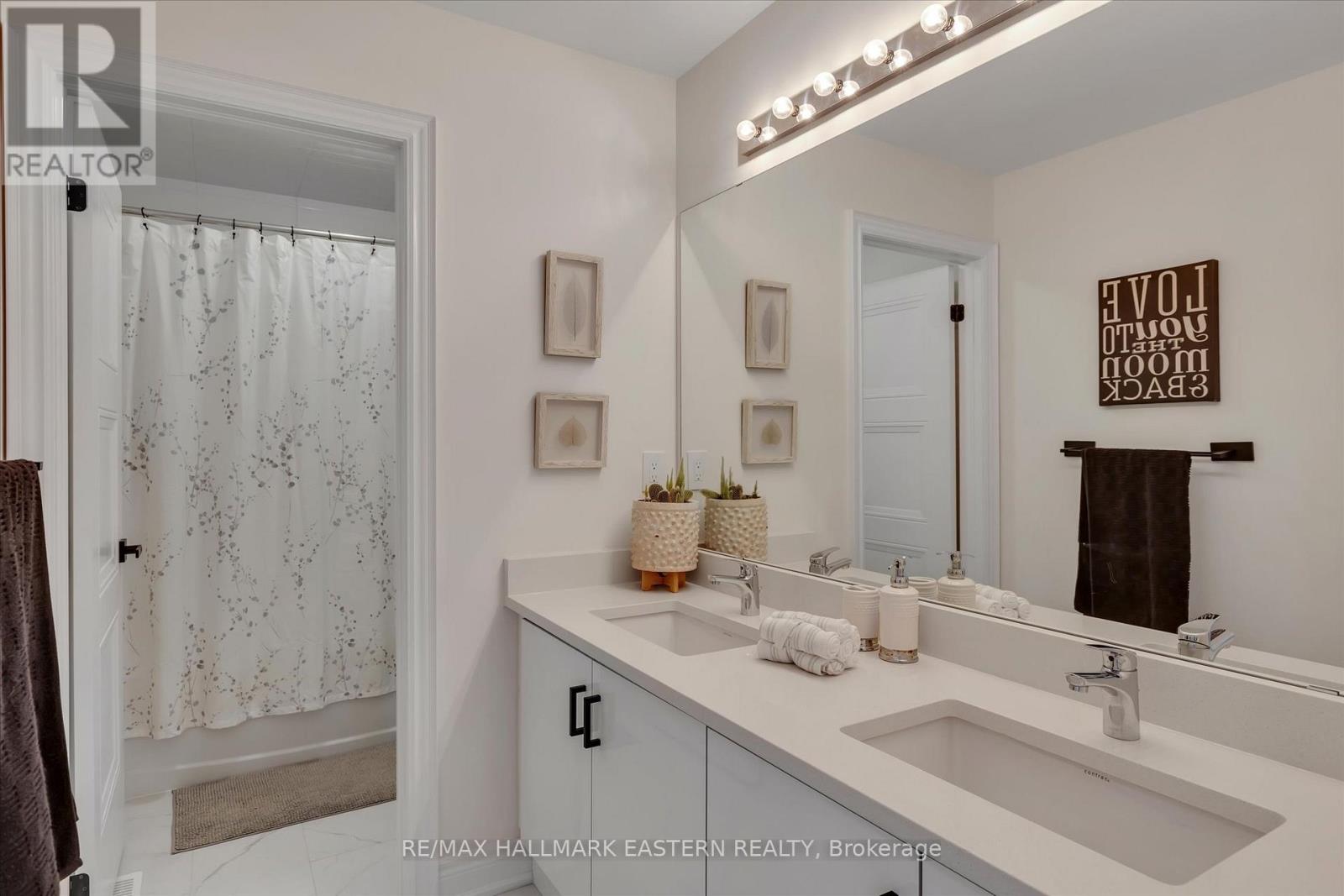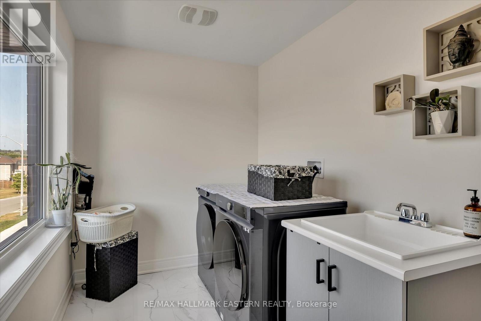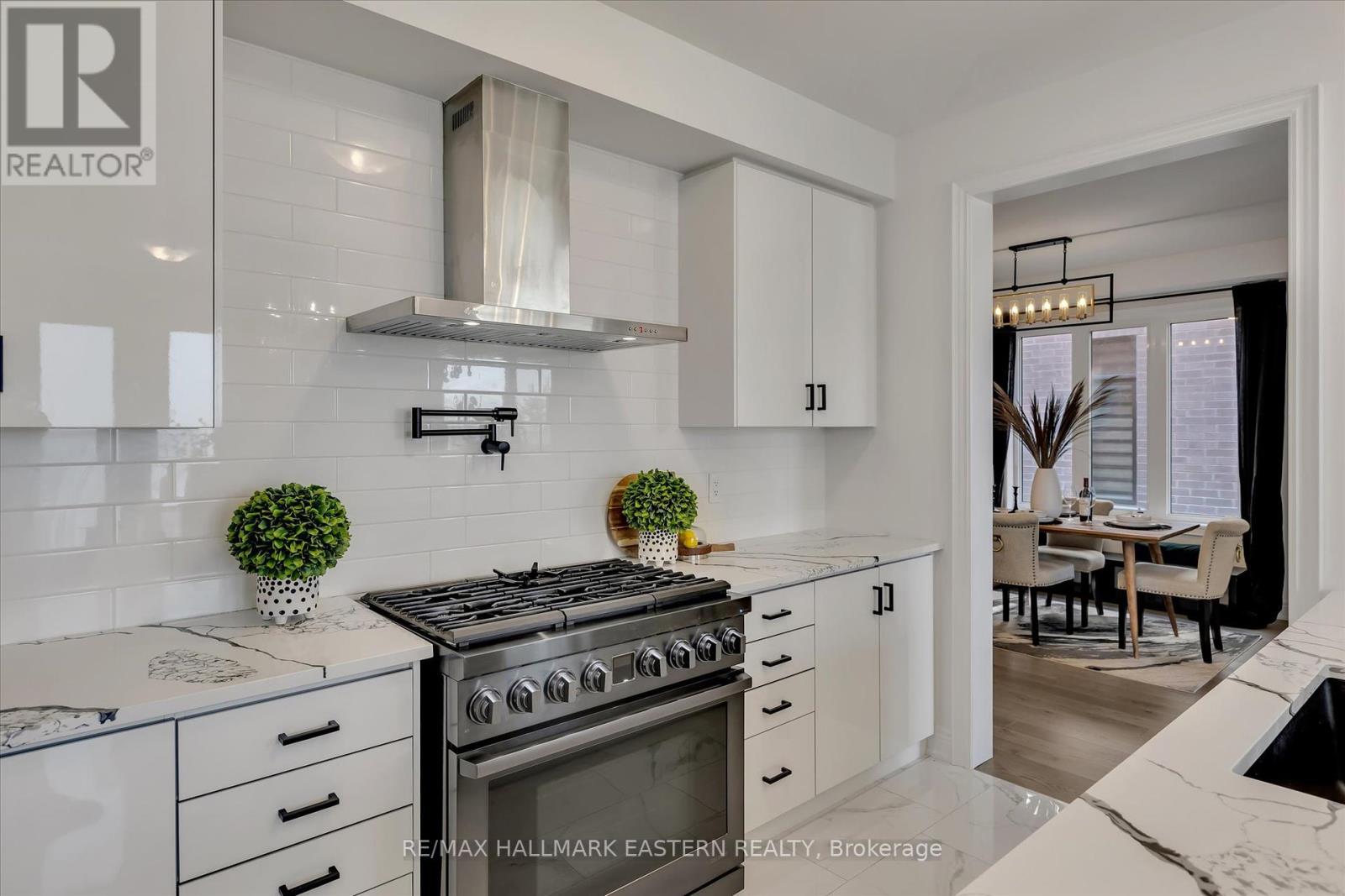 Welcome to this stunning 4 bedroom, 4 bathroom home in the sought after Gracefields Redux Development by Lindvest! This 2 year old home has over $100,000 worth of upgrades with an extra $80,000 spent for the premium lot that backs onto green space/park. The large, modern kitchen is perfect for those who love to cook and entertain, showcasing upgraded appliances including two refrigerators, built-in microwave, gas cook top with pot filler, quartz countertops, a large island, and lots of cabinetry for storage. Offering a thoughtful layout and quality finishes throughout, enter to white oak engineered hardwood flooring on the main level and a striking open staircase extending from the basement to the top floor. A separate dining room leads into that aforementioned striking kitchen and a large living room with gas fireplace and sleek mantel and large windows that let in plenty of natural light. A convenient 2-piece bathroom completes the main floor. Upstairs, the spacious primary bedroom includes a walk-in closet and a 5-piece ensuite with a standalone tub, glass-enclosed shower, and double sinks. The second bedroom also enjoys its own private ensuite and generous closet space, while the remaining two bedrooms share a well-appointed 3-piece bathroom. All bathrooms in the home feature quartz countertops, offering luxury at all turns! Short drive to Hwy 401, Hwy 35/115, Newcastle Marina and stunning views of Lake Ontario! Minutes to all amenities including local sport complex, parks, grocery stores, restaurants and shopping. (id:61423)