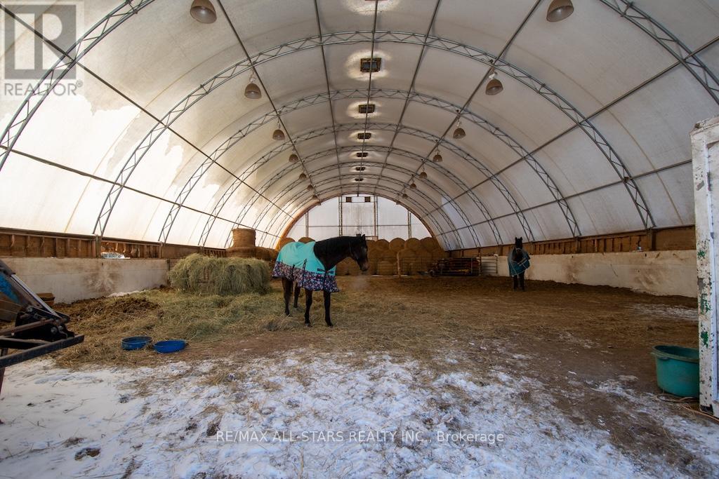 Welcome to this lovely 36.94-acre country property offering the perfect blend of privacy, functionality, and the ability to have all your hobbies and or workspace at your fingertips. Set in a beautiful, tranquil setting, this ranch-style bungalow is surrounded by rolling acreage, fenced paddocks with shelters, and outbuildings, ideal for small-scale farming, equestrian use, or those seeking space to live, work, play or unwind. The main residence features 3 bedrooms, 1.5 baths, a comfortable family room with a propane fireplace, kitchen, dining, and living areas designed for everyday living and entertaining. Step outside from the walk-out to your own backyard oasis, complete with an inground pool (requires a skimmer system), hot tub and custom-built sauna, all framed by peaceful country views. Main floor laundry adds everyday convenience. The fully finished basement expands the home's versatility with 3 additional bedrooms, a 3-piece bath, laundry area, utility room, living room and a dry kitchen, plus a separate entrance ideal for extended family, guests, or potential in-law accommodations. Above the double-car garage, you'll find even more living space with 3 bedrooms and a cozy nook, perfect for a home office, studio, or guest quarters. Outdoors, the property truly shines with a 60x120 coverall building, additional storage buildings, and paddocks offering endless possibilities for business, recreation or agricultural purposes. (id:61423)