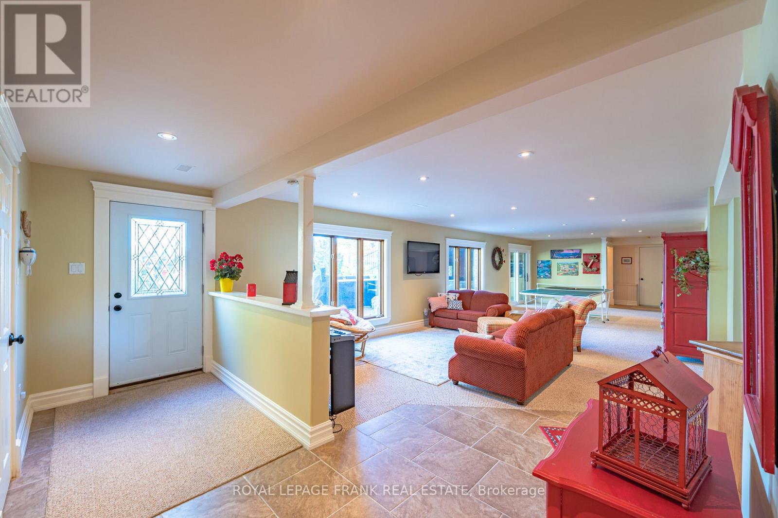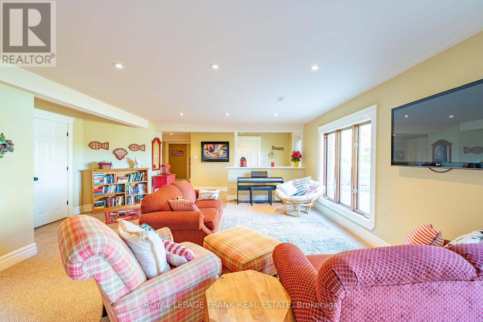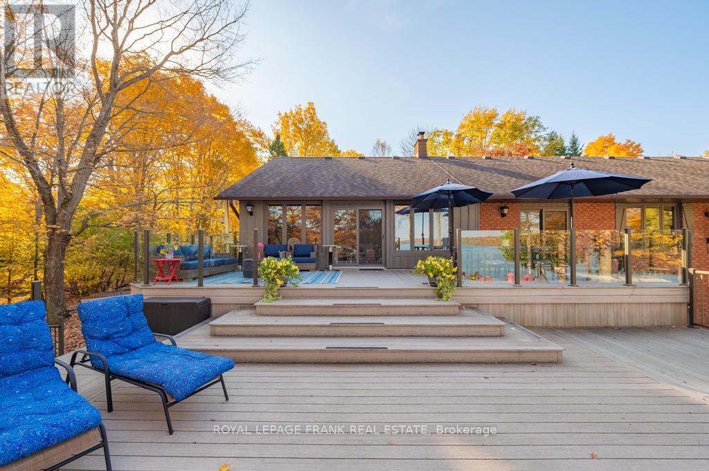 Enjoy the picturesque views and turquoise waters of beautiful Sandy Lake. With 190 feet of shoreline and over an acre of treed privacy, this stunning property is one of a kind. Relax on the waterfront patio while watching the kids play in the sandy wade in beach or enjoy a swim off the dock. This fabulous lakehouse has many recent upgrades and boasts over 4000 square feet of living space. It features 4 spacious bedrooms plus an office (currently used as a 5th bedroom), 3.5 baths including a 4 piece ensuite, family room, living room and separate dining area. Both the family room and 4-season sunroom walk out to a large composite deck and a great entertaining space with amazing lake views. The fully finished lower level is the perfect spot for visiting family and friends and includes a games room, recreation room and a walkout to an outdoor kitchen area. The attached double car garage and workshop area can be accessed from both the upper and lower levels of the house. The home comes fully furnished including appliances for the outdoor kitchen, canoe and 2 kayaks, as well as a new 2400 kw hard wired generator. Just move in and enjoy. The property is level and nicely landscaped. This exceptional setting offers a true cottage experience with all the convenience of home. High speed internet makes working from home completely viable. Close to marinas, golf, restaurants and shopping. Located on a township road, school bus route and minutes from the town of Buckhorn. (id:61423)