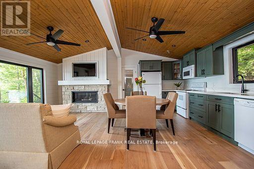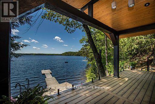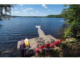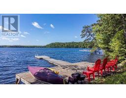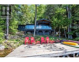 Escape to your private lakeside retreat, where the beauty of the forest meets the pristine shores of Gold Lake. Tucked into the trees on a beautiful 0.84-acre lot, this stunning cottage offers 180 feet of crystal-clear shoreline with unbeatable southern exposure and breathtaking panoramic views. Blending modern updates with classic cottage warmth, the interior features an open-concept layout with vaulted ceilings, granite kitchen counters, a cozy stone fireplace, and a brand-new bathroom with laundry hookups. Enjoy the peace of mind that comes with recent upgrades, including new windows, roof shingles, and siding. Step out onto the deck to enjoy morning coffee in the solitude of nature, or unwind on the extensive dock system. Nestled on the sought-after seven-lake chain, this rare property offers outstanding privacy, excellent swimming, and direct access to a network of scenic waterways. Whether you're relaxing under the forest canopy or exploring the lake by boat, this is the ultimate cottage escape. (id:61423)
