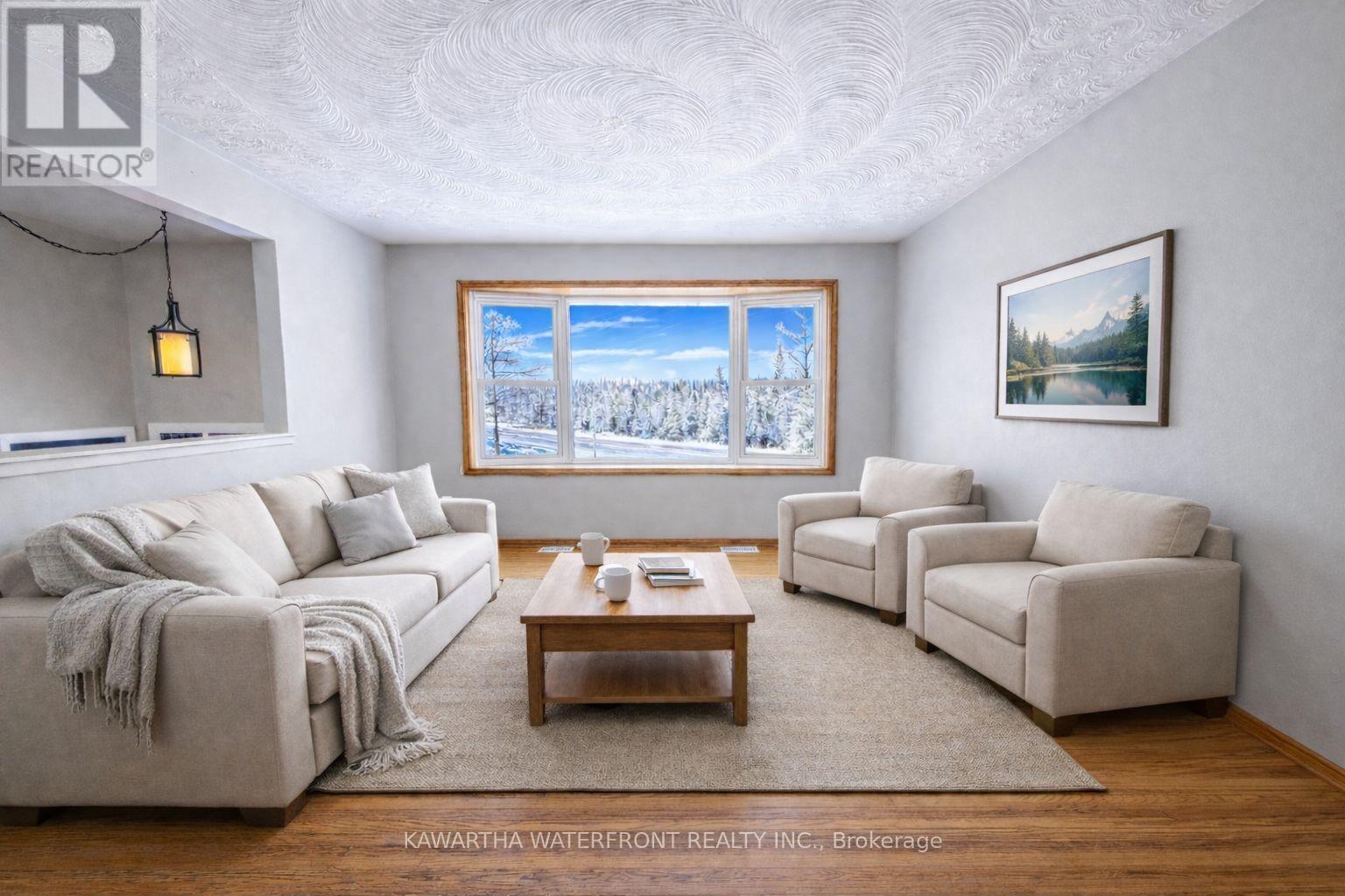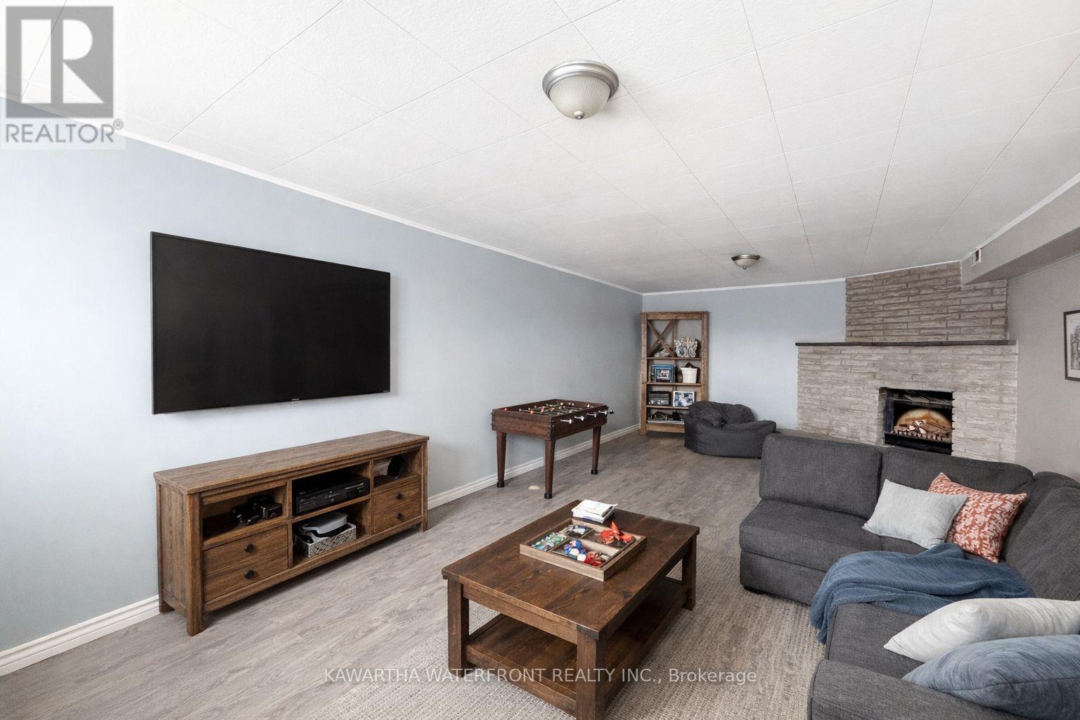 Situated just minutes from Peterborough, and conveniently positioned between the GTA and Ottawa, this location offers excellent access for both daily commuting and weekend adventures. The generous lot features a fenced backyard and two driveways, providing ample space for family life, outdoor enjoyment, and recreational equipment. The well-designed raised bungalow offers three bedrooms and two bathrooms, with a functional layout ideal for growing families. The lower level features a spacious family room, an office or additional bedroom, a laundry room, and the second full bathroom, providing flexible living options for work, play, or guests. The former garage has been converted into a versatile open space, perfect for storage, a home office, a playroom, or a hobby area, ready to adapt to your needs. (id:61423)