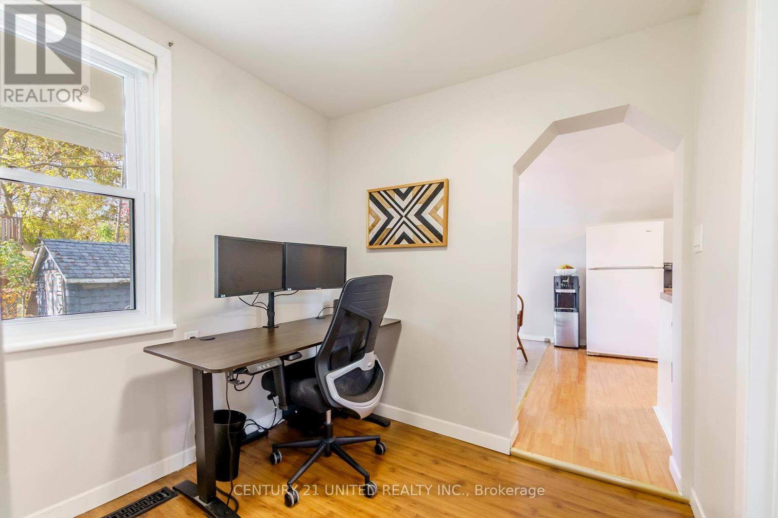 Charming 1.5-storey home situated on a large lot in Lindsay's desirable North Ward - steps from the park, splash pad, and Parkview Public School. Conveniently located minutes from the hospital, downtown, shopping, and amenities. This 2-bedroom, 2-bathroom home features an eat-in kitchen with a gas stove, a gas fireplace, and a walkout to a deck that opens onto the fully fenced yard. The office nook off the living room offers a perfect work-from-home setup. Recent updates: bathrooms (main floor 2025, upper 2023), windows (2023), kitchen counters & backsplash (2025), 100-amp panel & partial wiring (2017/2021), furnace (2018), and natural gas BBQ hookup (2021). Ideal for first-time buyers, downsizers, or investors - this home is move-in ready and a must-see! (id:61423)