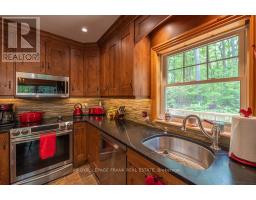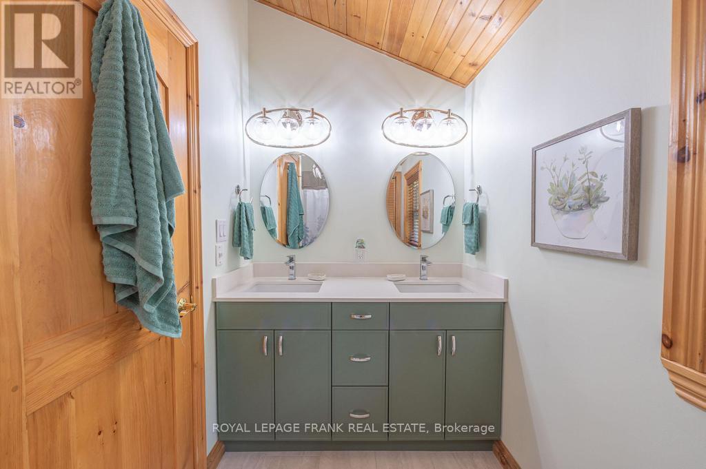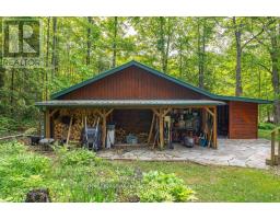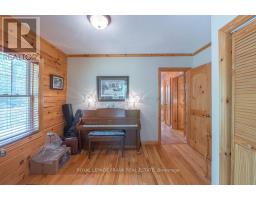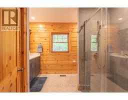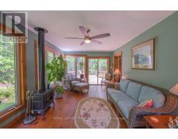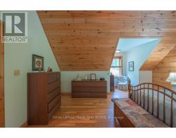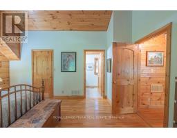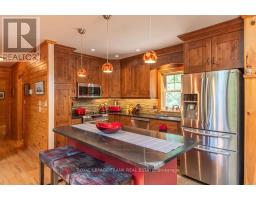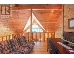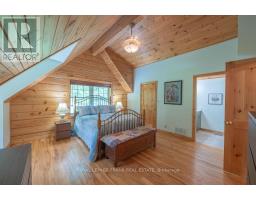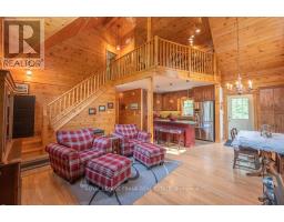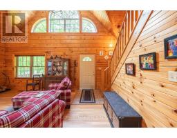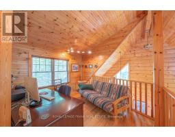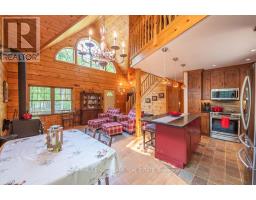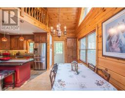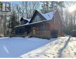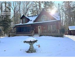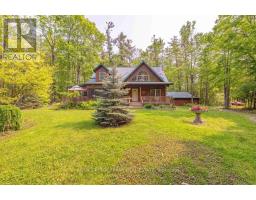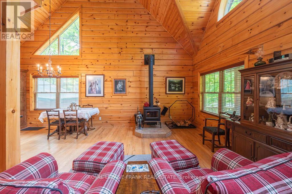 Well maintained home nestled on 1.5 acre treed lot a short walk to a public access on Pigeon Lake for great swimming. You won't be disappointed by this classic rustic log home featuring 3 bedrooms, 2.5 baths, stunning vaulted ceilings, open concept with a cozy wood stove which is WETT certified. The 4-season sunroom with propane stove overlooks a private treed yard. The updated kitchen with alderwood cabinets and soapstone counters blends perfectly with the open concept living area. The main level bedroom is located across from a newly renovated bathroom. The second floor has a large primary suite with a 5 pc ensuite bathroom plus an office area open to the floor below. The lower level is fully finished with a large family room and plenty of storage. Screened in porch, large deck, perennial gardens and an oversized double car garage with carport. Situated on a township road, and a school bus route, close to the town of Buckhorn. (id:61423)