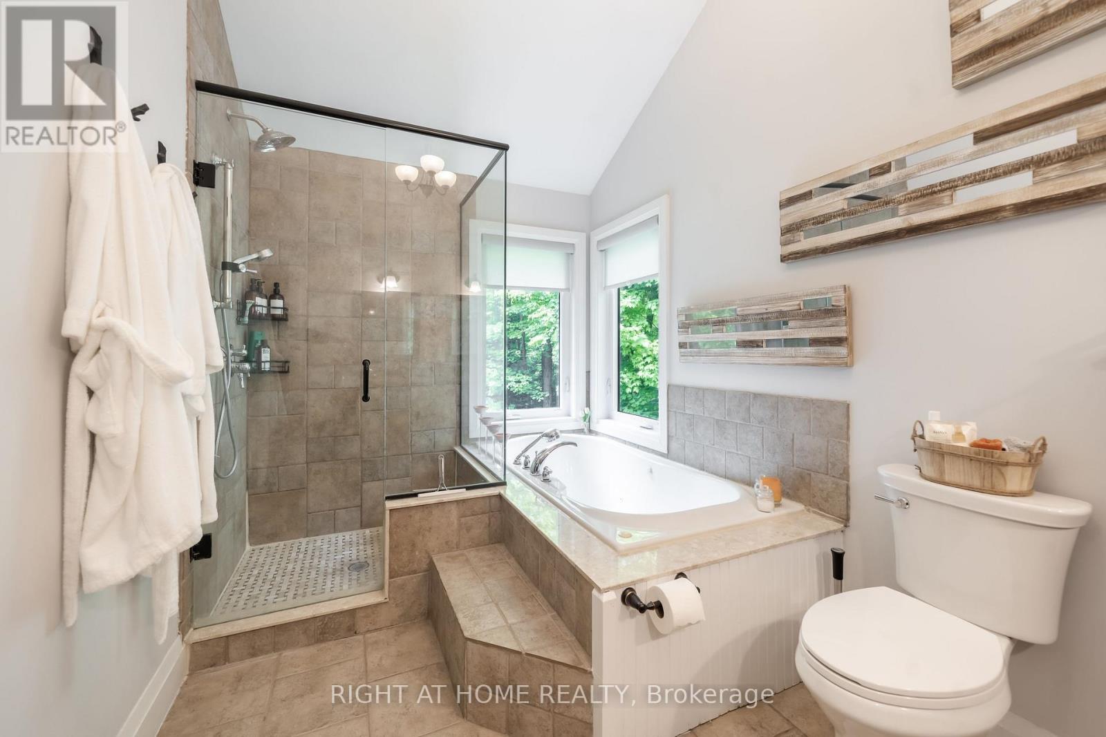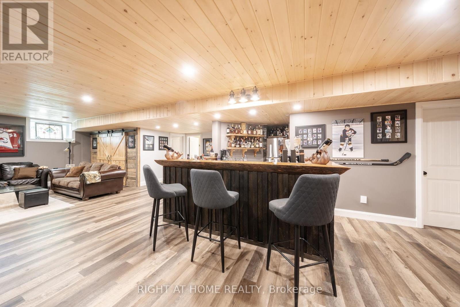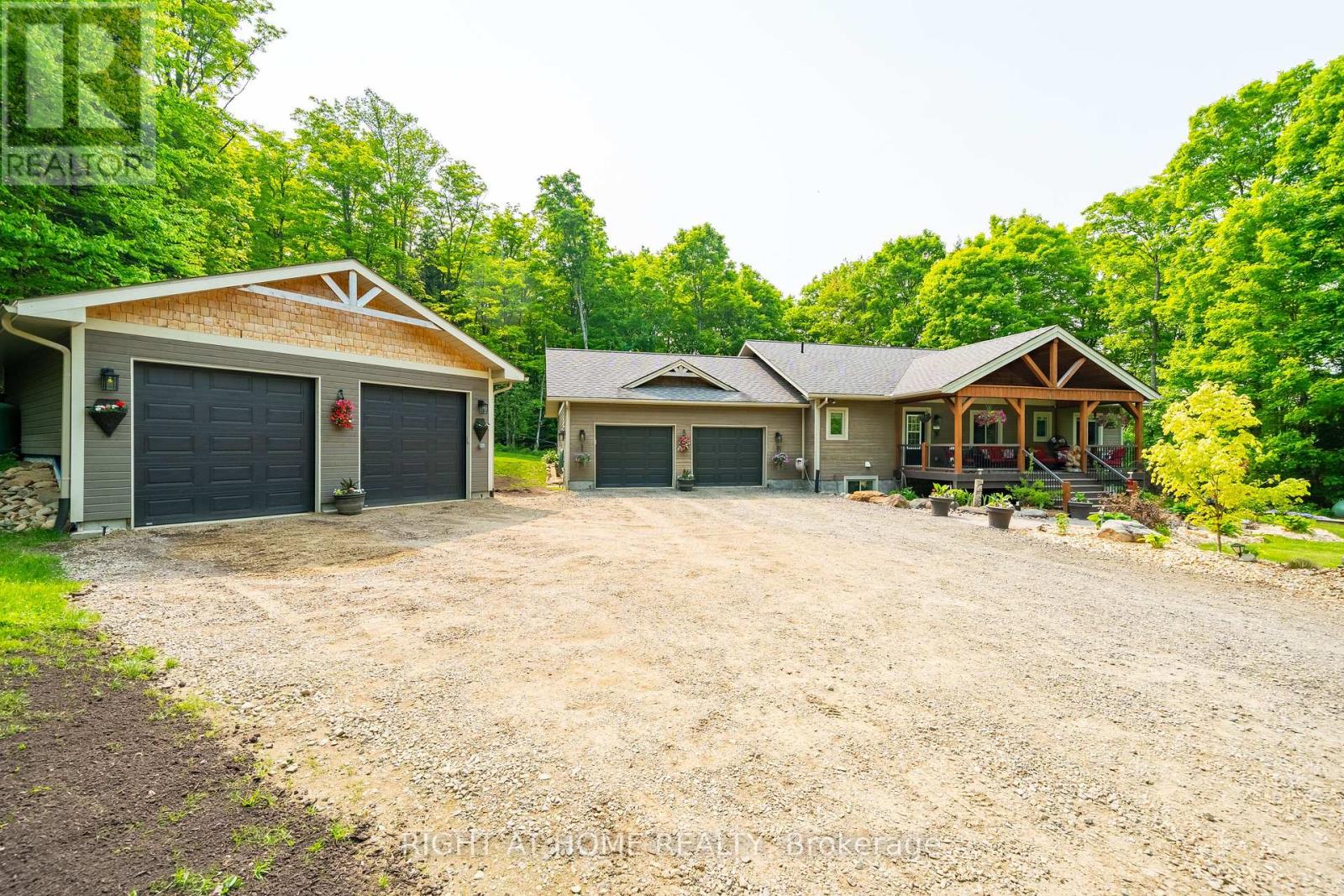 A Hidden Gem Perfectly Tucked Away on 5.5 Acres Lot - Nature, Privacy & Character Where A Dreams Come True. Welcome to a rare gem that's more than just a home, it's a lifestyle. Charming, Maintained with love and tucked away on a stunning, very private and peaceful 5.5 acre lot, this charming bungalow offers full connection with nature with deer visiting your backyard from time to time and birdsong as your daily soundtrack. Step into your dream with this character-filled bungalow boasting 3+1 bedrooms & 3 full bathrooms, a layout perfect for comfort and flexibility. Approximately 3,000 sq ft of living space. The cathedral ceilings in the open-concept living area and kitchen create an airy, inviting space centred around a stunning gas fireplace, perfect for cozy evenings. The primary suite is a private retreat featuring a walk-in closet and a luxurious 5-piece ensuite overlooking serene greenery. Whether you're a car enthusiast or a collector of big toys - this property has room for it all!You'll be thrilled with the attached 27'6"x27' garage PLUS a newly built 24'x24' heated detached workshop/garage with concrete slab, ideal for year-round projects, storage, or hobbies. The finished basement offers a huge great room with a solid wood bar, large above-grade windows, an extra bedroom, and plenty of storage to customize for your needs. Pet parents, rejoice! A dedicated mudroom with a dog shower makes daily life cleaner, easier, and even more pet-friendly. Step outside to your stunning front and backyard oasis, where peace, privacy, and panoramic nature views await. Sip your morning coffee on the deck as the forest whispers around you, its pure paradise. Enjoy the convenience of dual driveways and easy commutes on fully paved roads. You're just a short drive to shopping, public beaches, Lakeside Golf Club, groceries, and much more.This isn't just a move it's a rare opportunity to live the lifestyle you've dreamed of. Property with its own character (id:61423)