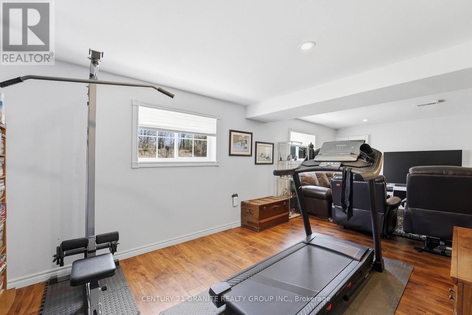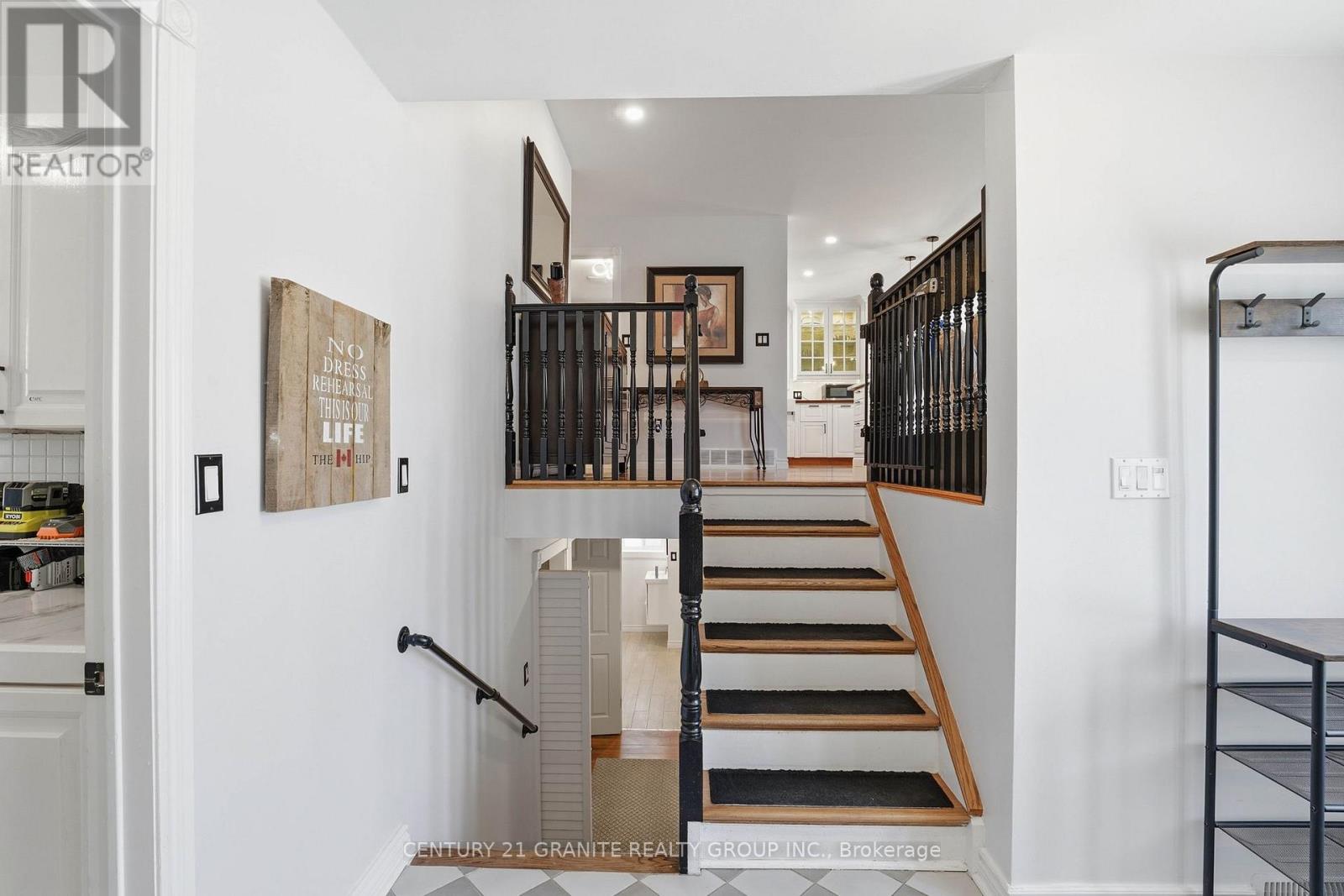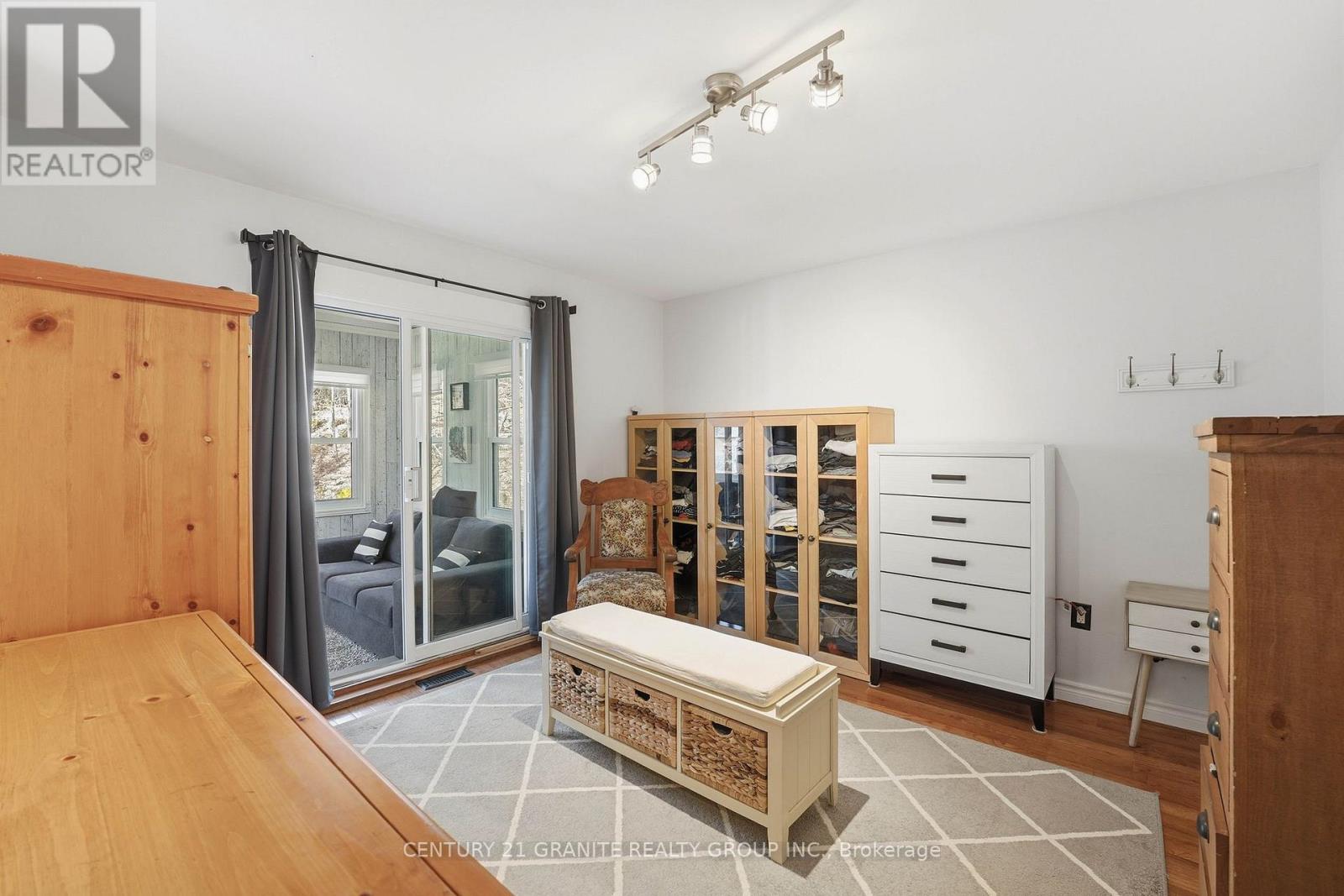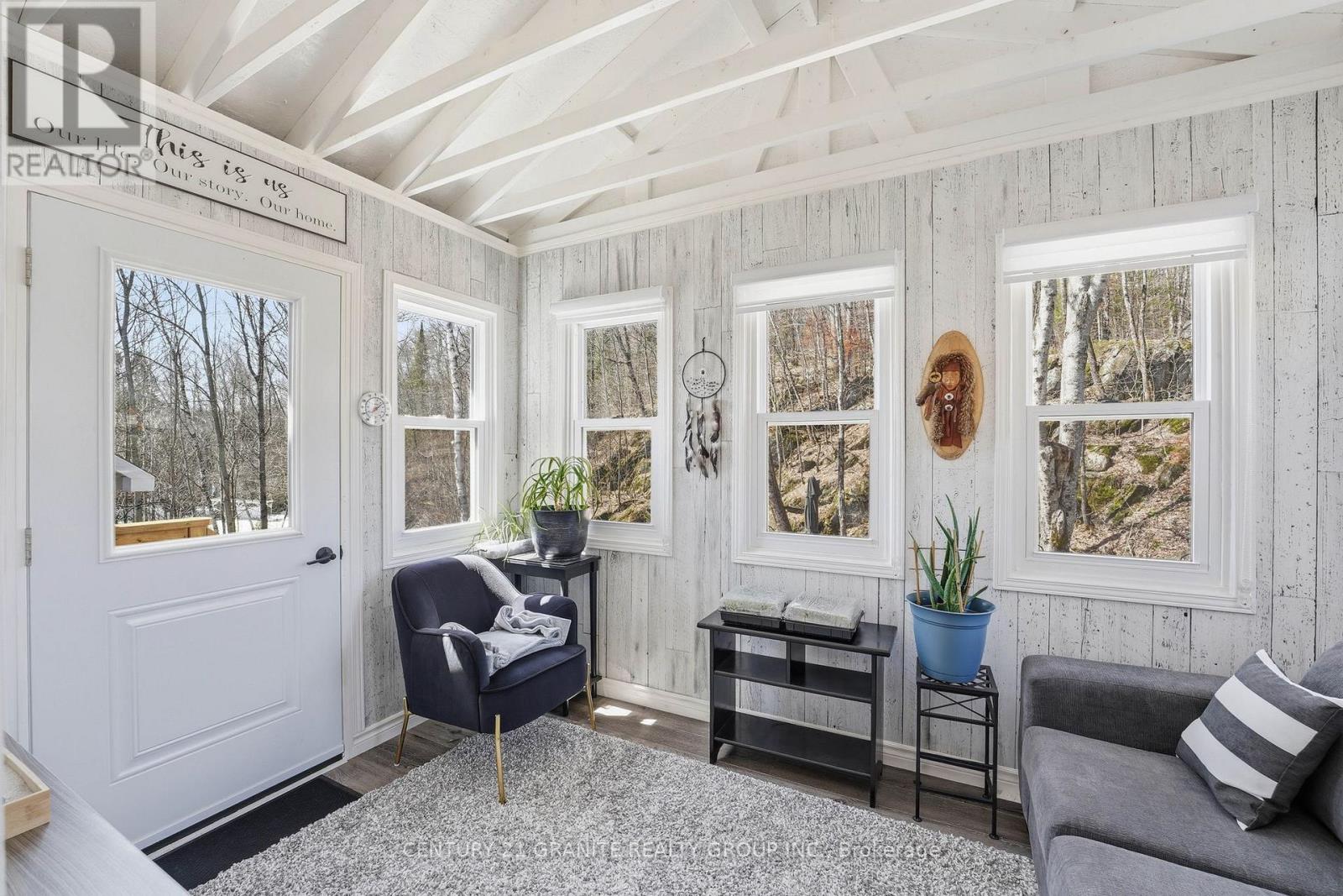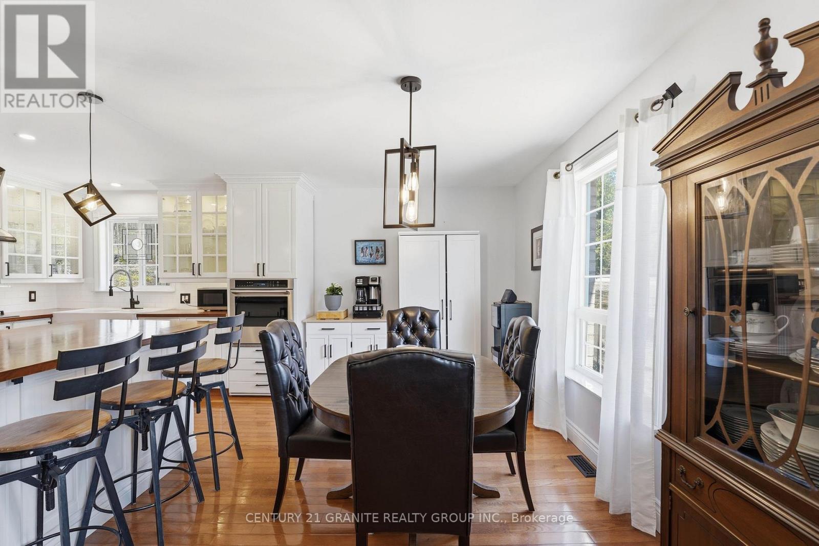 Positioned just minutes from Bancroft's amenities, this custom built brick side split offers a strategic combination of durability, efficiency, and turnkey living. Built in 2006 to R2000 efficiency standards, the home delivers low operating costs and long term performance. Offering over 2,000 sq. ft. of finished living space, this 4 bedroom, 3 bathroom home is designed with functionality in mind. The open concept living, dining, and kitchen area is bright and cohesive, featuring an updated kitchen with stainless steel appliances and strong flow for everyday living and entertaining. Main floor laundry adds practical convenience. The interior presents as exceptionally well maintained, supported by forced air propane heating and central air conditioning. The primary bedroom includes a private ensuite, while a standout feature is the beautiful sunroom off the rear bedroom, creating a quiet, light filled retreat. Extensive upgrades have been completed throughout, ensuring the property is truly move-in ready. Set on a municipally maintained road, the home offers excellent access, a poured concrete driveway, and an attached double car garage, reinforcing both curb appeal and functionality. Outdoors, the property delivers a highly private setting with a striking backdrop of hardwood trees, exposed granite outcropping and over 1,200 sq. ft. of terraced, cantilevered decking, designed for elevated outdoor living and seamless entertaining. Multiple sitting areas invite morning coffee, evening dining, and quiet reflection, all immersed in a natural, shielded landscape. A screened-in gazebo extends seasonal use in comfort, while the dog run, bunkie, and storage sheds add both flexibility and function to this thoughtfully curated outdoor environment. Located near the Hastings Heritage Trail, this property supports four-season recreation in a quiet country setting just steps from town. A well executed, energy efficient home offering space, privacy, and a true turnkey opportunity. (id:61423)