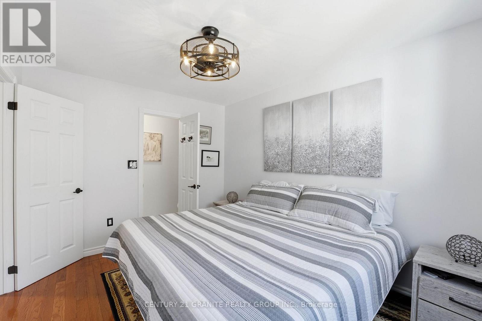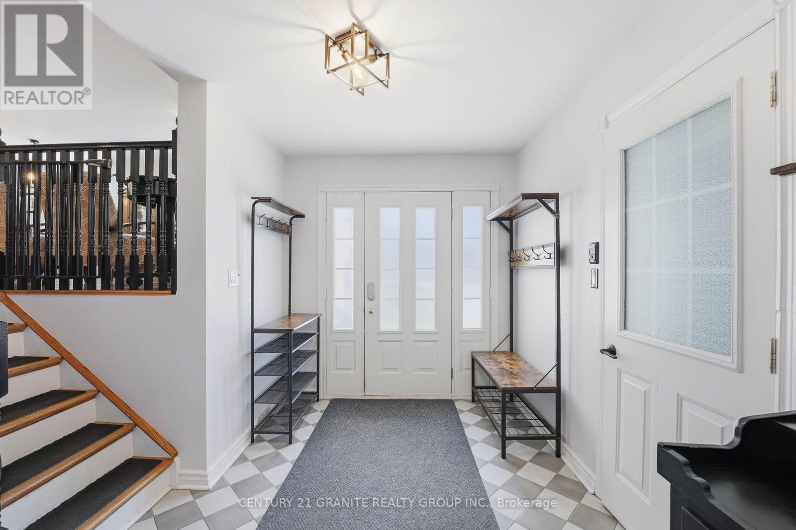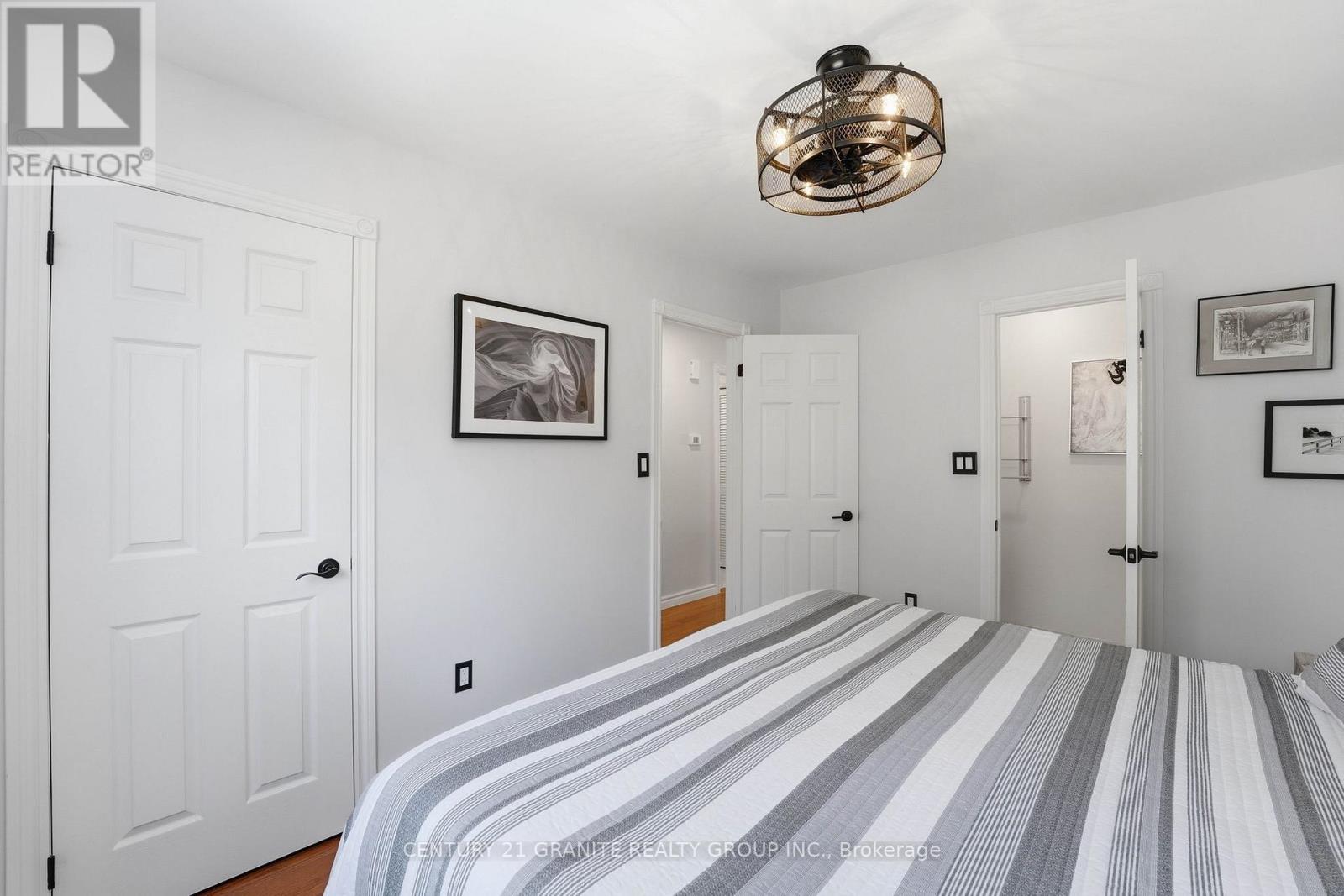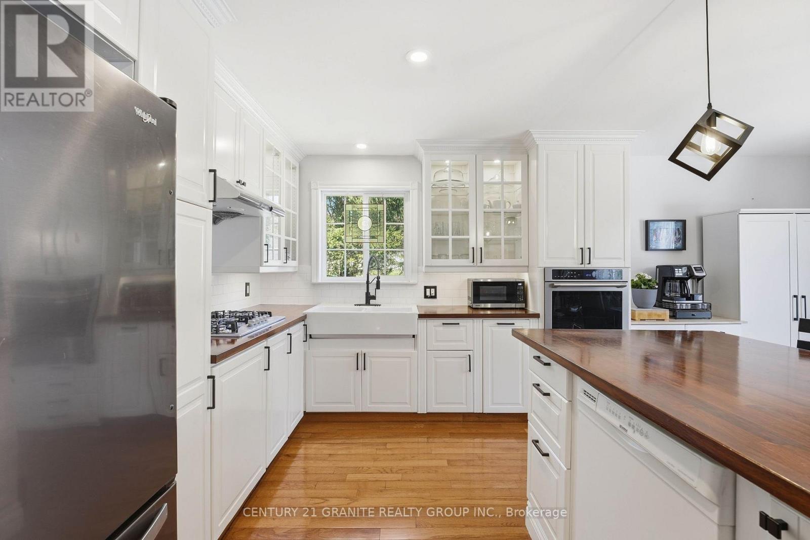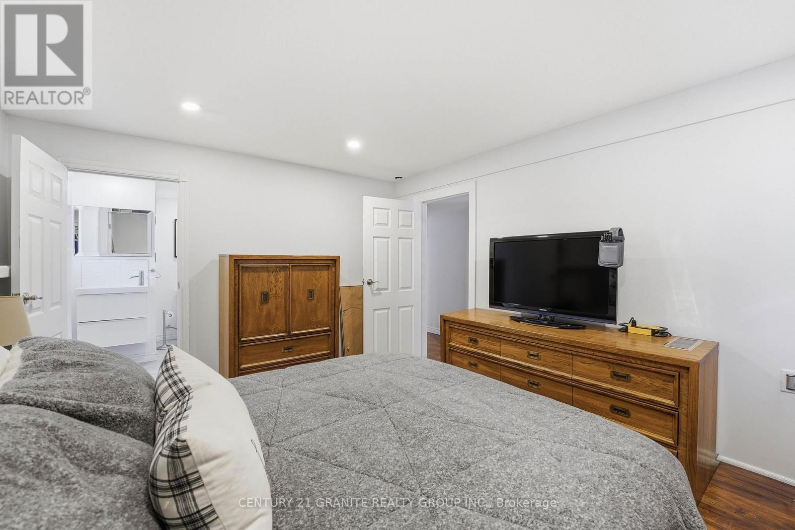 Positioned just minutes from Bancroft's amenities, this custom built brick side split offers a strategic combination of durability, efficiency, and turnkey living. Built in 2006 to R2000 efficiency standards, the home delivers low operating costs and long term performance. Offering over 2,000 sq. ft. of finished living space, this 4 bedroom, 3 bathroom home is designed with functionality in mind. The open concept living, dining, and kitchen area is bright and cohesive, featuring an updated kitchen with stainless steel appliances and strong flow for everyday living and entertaining. Main floor laundry adds practical convenience. The interior presents as exceptionally well maintained, supported by forced air propane heating and central air conditioning. The primary bedroom includes a private ensuite, while a standout feature is the beautiful sunroom off the rear bedroom, creating a quiet, light filled retreat. Extensive upgrades have been completed throughout, ensuring the property is truly move-in ready. Set on a municipally maintained road, the home offers excellent access, a poured concrete driveway, and an attached double car garage, reinforcing both curb appeal and functionality. Outdoors, the property delivers a highly private setting with a striking backdrop of hardwood trees, exposed granite outcropping and over 1,200 sq. ft. of terraced, cantilevered decking, designed for elevated outdoor living and seamless entertaining. Multiple sitting areas invite morning coffee, evening dining, and quiet reflection, all immersed in a natural, shielded landscape. A screened-in gazebo extends seasonal use in comfort, while the dog run, bunkie, and storage sheds add both flexibility and function to this thoughtfully curated outdoor environment. Located near the Hastings Heritage Trail, this property supports four-season recreation in a quiet country setting just steps from town. A well executed, energy efficient home offering space, privacy, and a true turnkey opportunity. (id:61423)