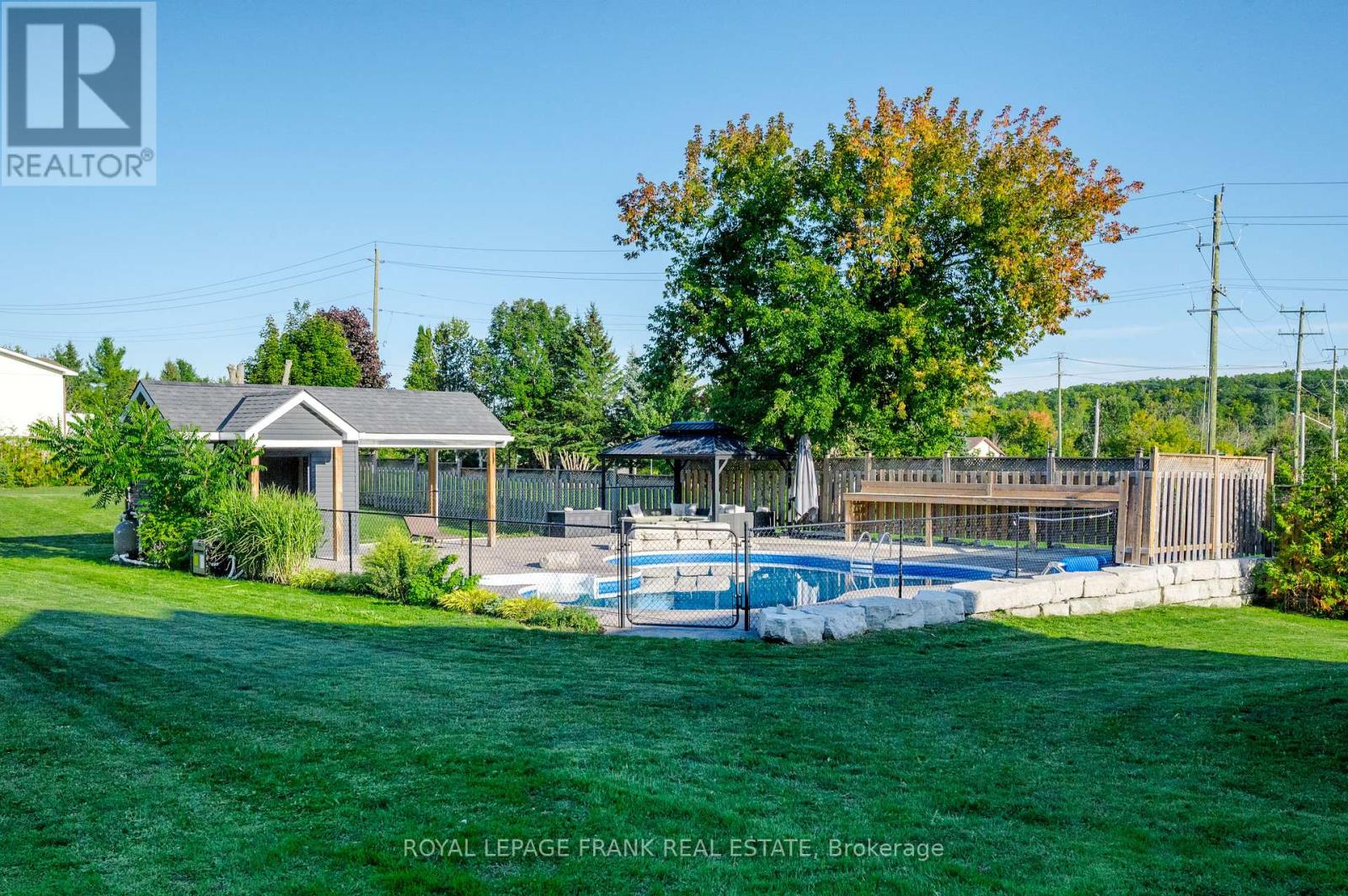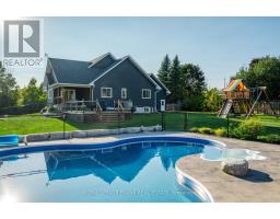 Discover a perfect blend of luxury, space and adventure in Hastings! This stunning 2017-build home sits on nearly an acre of lush, private rural land, boasting deeded waterfront access to the Trent River - a rare gem for boating and fishing enthusiasts. With 5 spacious bedrooms, 3 baths and a fully finished basement including a massive rec room, it's ideal for growing families to create lasting memories or retirees seeking a serene retreat. Seize the day watching the sunrise over your heated saltwater pool, or relax while watching sunsets across the farmers fields, cozied up by the gas fireplace. Enjoy stainless steel appliances, convenient main floor laundry and a luxurious primary bath with a deep soaker tub and glass shower. The fully fenced yard offers endless possibilities for gardening, play area or pets, with plenty of room to expand whatever you've been dreaming of. Winter chores are a thing of the past thanks to the triple car heated garage, plus a 160 sf driveshed offers tons of room for storing ATV's and equipment. Benefit from municipal services and the charm of Hastings village just minutes away, where year round outdoor adventure awaits - boating, fishing, snowmobiling, cycling and hiking right at your doorstep. Whether you are raising a family or enjoying retirement, this property checks all the boxes! (id:61423)