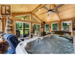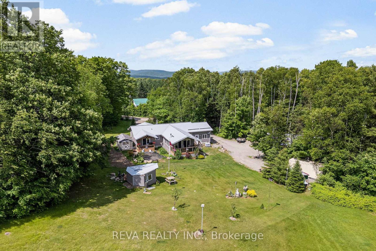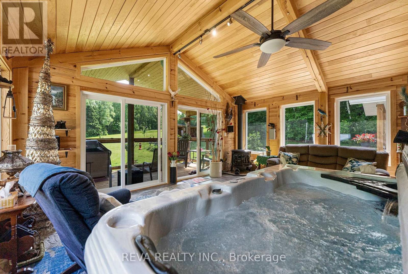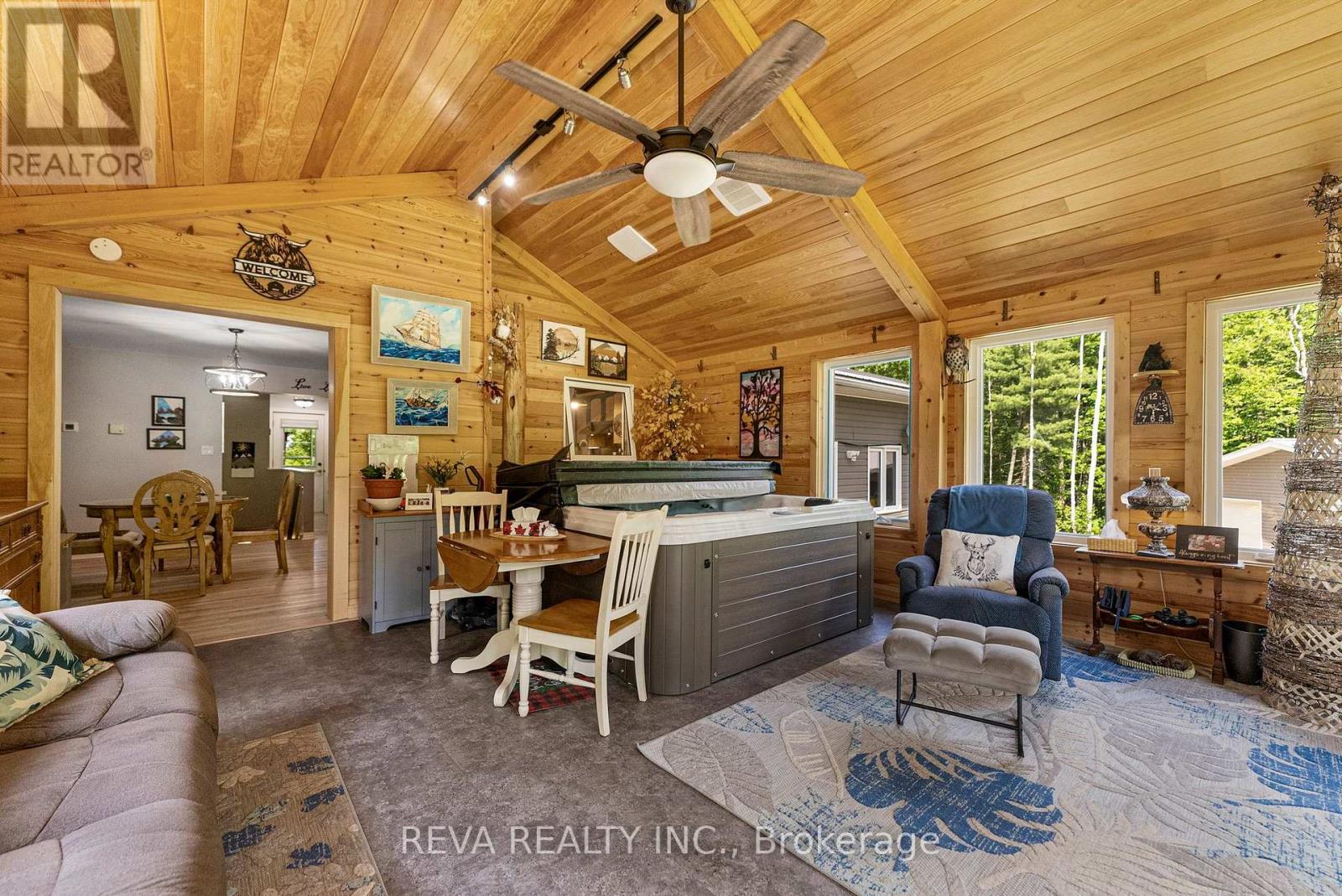 Imagine waking up and stepping out onto your covered porch overlooking the meadows and watching wildlife at play. This peaceful 1-acre lot is surrounded by the beauty of rural Ontario! **Key Features: **1. Only a 4 minute drive to Fosters Lake Park with a sandy beach, playground, skating reach and boat launch (along with several other great swimming and fishing lakes). **2. This fully updated 3+1 bedroom, 3-bathroom home blends modern upgrades with rustic charm, featuring new windows, doors, metal roof, insulation, furnace, water heater, central air, and a full-house generator for peace of mind. **3. At the heart of the home is a stunning four-season post-and-beam sunroom with wrap around windows and hot tub perfect for soaking and taking in views of a grassy hillside behind the property and a beautiful year round view of a mixed forest of maple, birch and oak trees and abundant wildlife. **4. A large heated, insulated workshop with hydro, its own driveway, and high ceilings ideal for a home-based business, studio, or hobbyist haven. **5. Located between Bancroft and Maynooth and just 2 hours from Ottawa. **6. Boulter offers a great community that is active and engaging. Enjoy Horsehoes, Darts, Baseball, Dances, AMAZING sunsets and a drive you'll never get tired of. --> Motivated Seller (id:61423)