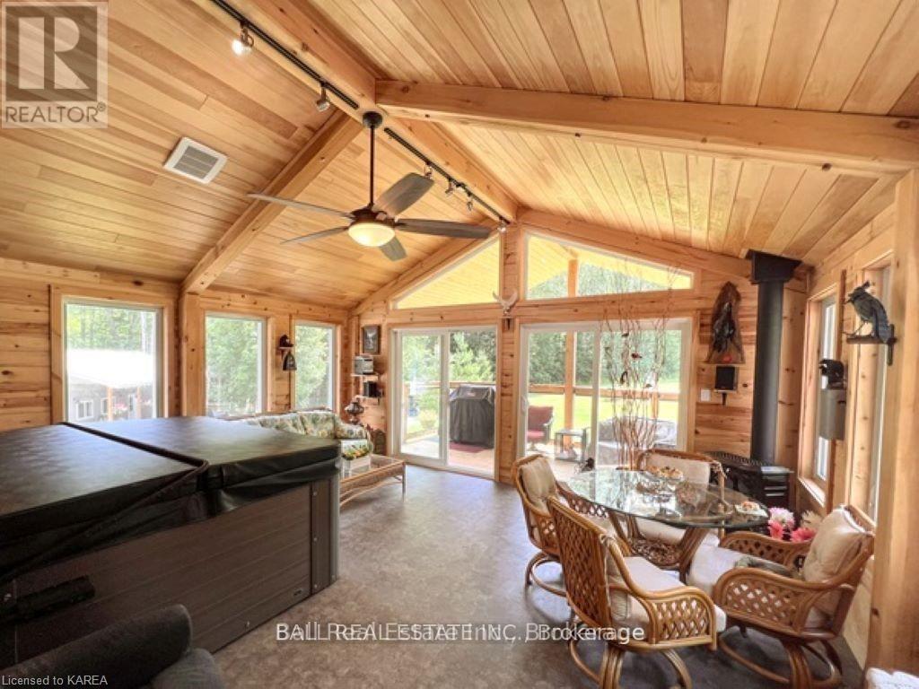 Beautifully Updated from 2021 to 2025 - This Home Feels Brand New- Every corner of this property has been thoughtfully improved, making it truly move-in ready. 2021 Upgrades Include, Stunning post-&-beam four-season sunroom with vaulted ceilings and a hot tub. Steel roof, new flooring, kitchen, & all windows. Extensive landscaping - Impressive 38' x 32' insulated and heated workshop/garage (stand-alone), perfect for hobbyists or professionals - Heat exchanger & central air conditioning - Generator - Propane furnace - 2025 Enhancements: Beautifully upgraded main bathroom - Updated primary ensuite with walkout to the breathtaking backyard - Full basement renovation, including new e-gress windows and an additional bathroom. This property offers privacy, peace, and comfort, with two covered porches ideal for relaxing outdoors. Located just 5 minutes from multiple lakes for summer fun and close to snowmobile trails for winter adventure, it's a dream location for outdoor enthusiasts. Two driveways provide excellent access- one leading to the attached single-car garage, and the second taking you directly to the impressive 3+ car workshop/garage. Pride of ownership shines throughout this meticulously maintained oasis. The active local community offers plenty of opportunities to get involved-or simply enjoy the tranquility at your own pace. Motivated Sellers - Don't Miss This One (id:61423)