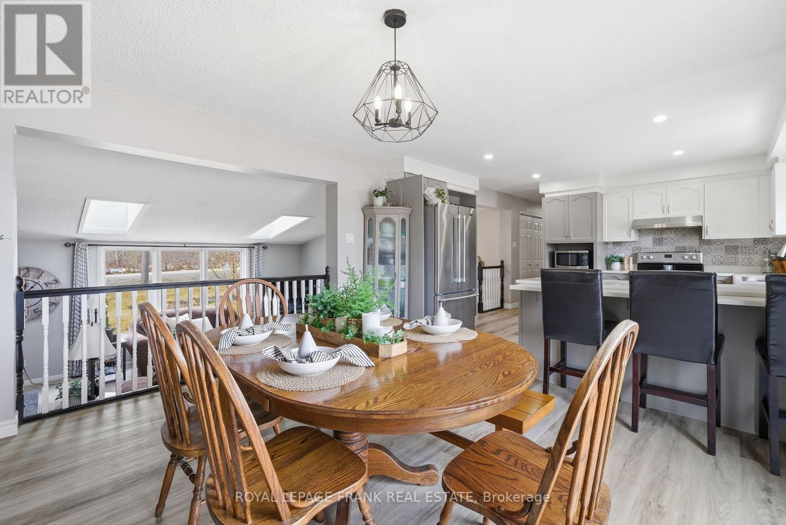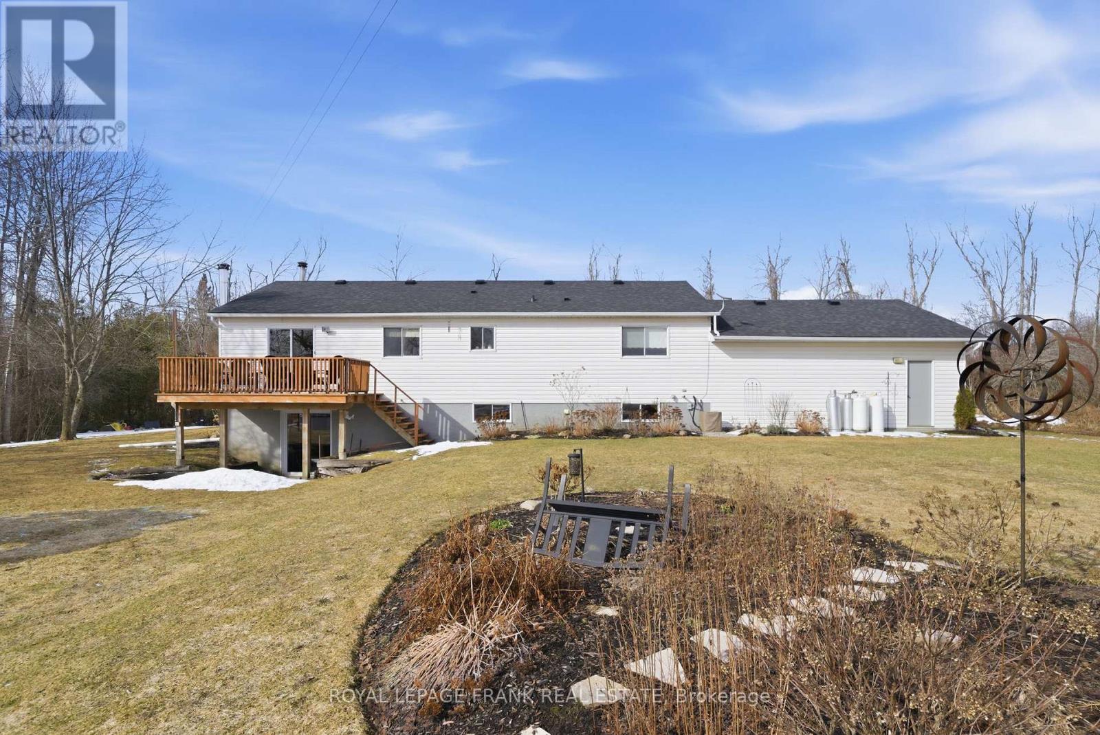 This split level BUNGALOW is set on just over 2.5 ACRES, with scenic CROSS CREEK running along the edge of the property. It offers a peaceful rural lifestyle, just a few minutes north of Janetville, and 20 minutes to both Port Perry and the 115. Well-maintained, featuring 3+1 bedrooms and 2 bathrooms, including a PRIMRY ENSUITE. The functional layout (including a main floor wood burning fireplace) is ideal for families or those seeking additional space. The partially finished basement includes a WALKOUT to the backyard, a fourth bedroom and garage access, offering potential for extended living or recreational use. The property features a large driveway for all the toys, an above-ground POOL, attached garage, and additional outbuildings for storage or hobby use. With PUBLIC ACCESS to Scuggog Lake just down the road, this property is well suited for nature lovers and outdoor enthusiasts. Updates include a roof (2022). This is a GREAT opportunity to enjoy space, outdoor hobbies, privacy, room to grow, and convenience within commuting distance to the GTA. (id:61423)