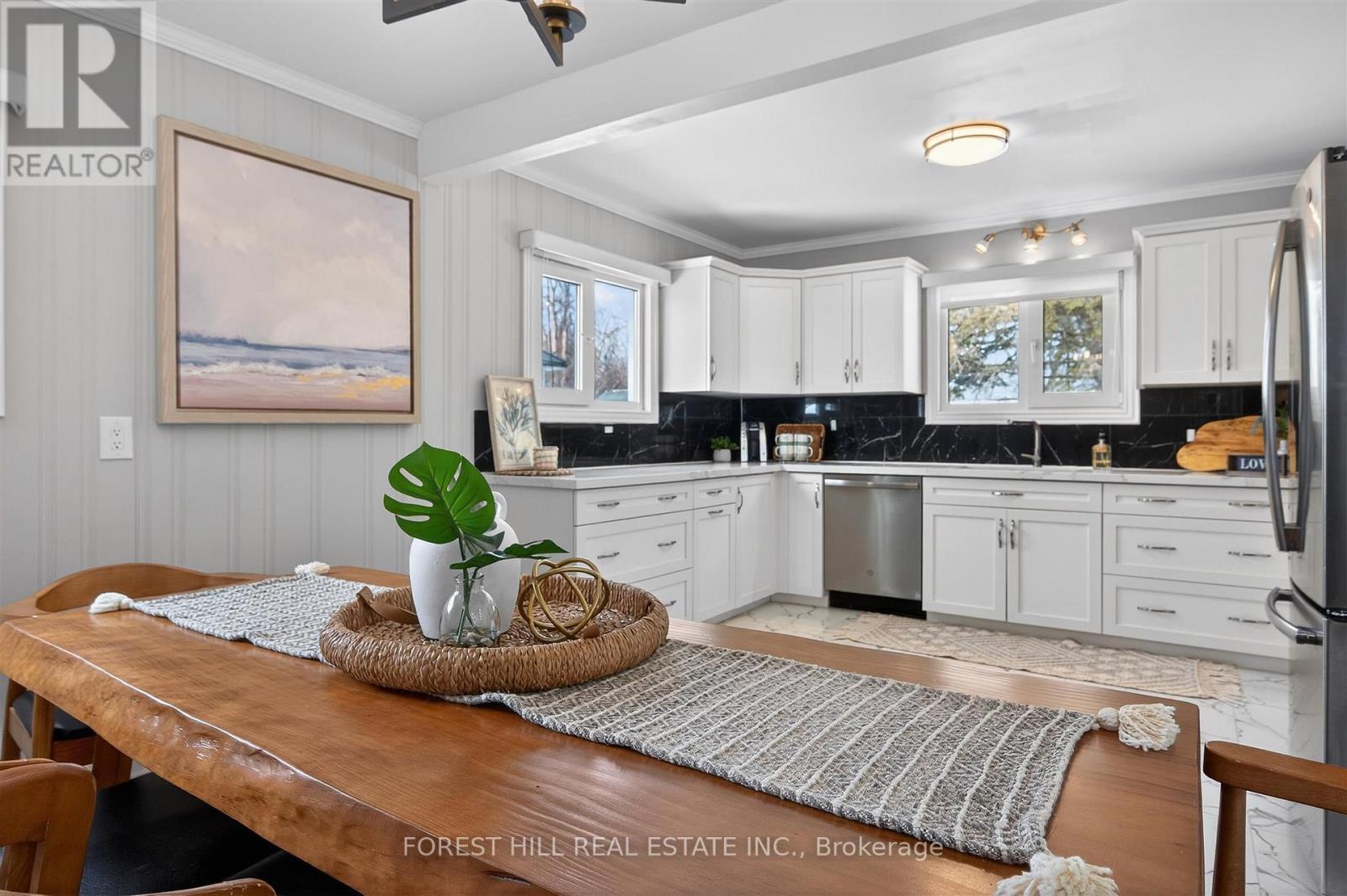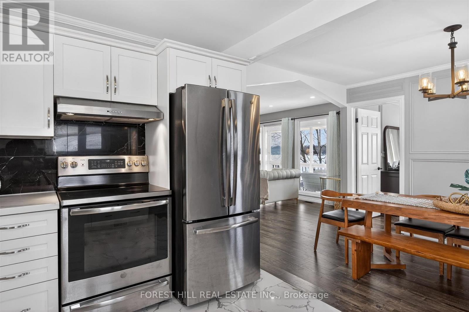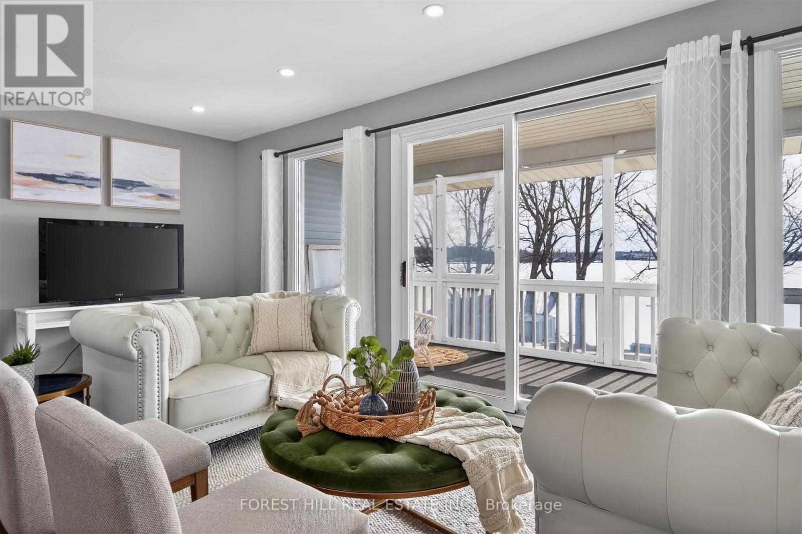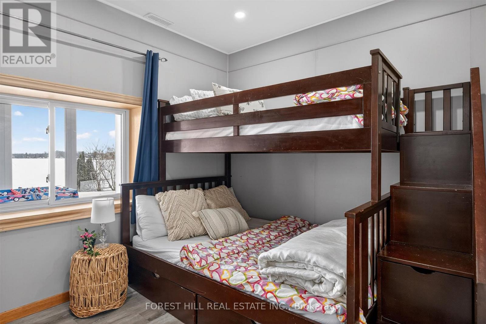 This Stunning 4 Season Lake house is light filled and located on Pristine Buckhorn Lake in the sweet spot where Chemong and Pigeon lake Channel Changes are close by. Walk into this tiled grand foyer and take notice of the Panoramic views featured throughout the Expansive Floor to Ceiling Windows from every room. The interior has many delightful designer finishes throughout incl. a stunning eat in kitchen with white Custom Cabinetry, expansive stone counters, stainless steel appliances and Engineered Hardwood that runs throughout the home. 3 Spacious Bedrooms adorn the main floor as well as a walk out to the Oversized sunroom where the windows can be removed or opened to allow gentle breezes from the lake. This Sunroom is built to Enjoy wildlife, sunsets and entertain while being sheltered. The Lower Level has a cozy Family Room with high ceilings, a Wet bar with sink, cupboards and wine fridge for entertaining and a wood burning fireplace. 2 additional bedrooms are downstairs, a Laundry Room and an additional bath with stand up shower. Walk out to your Back yard oasis with 104 feet of prime waterfront with cantilever Dock system. There is a fantastic Detached garage and a separate bunkie facing the water with 2 additional beds for summer company. Lots of great landscaping and outdoor places to enjoy the views. Beautiful mature trees with great boating or driving options to dine. Boat to Buckhorn for food, ice cream or to visit some of the shops or Bobcaygeon for some of the Kawartha's best shopping or boat docking. The options are limitless when you are on the Trent Severn Waterway. This is a must See. (id:61423)