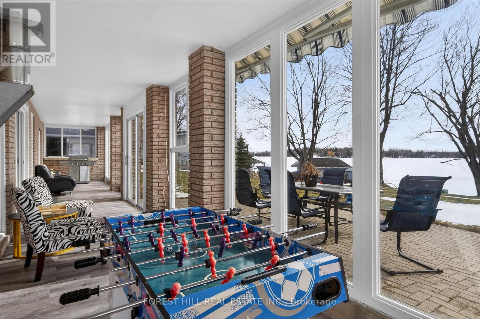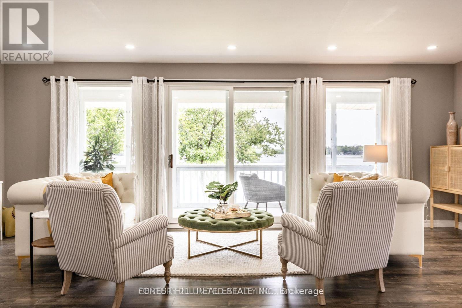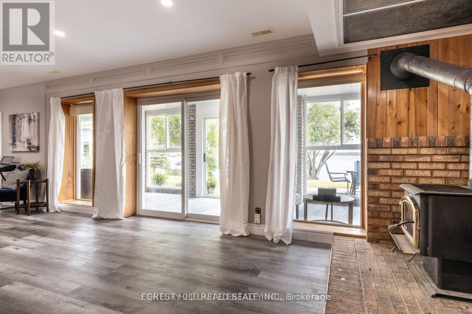 This Stunning 4 Season Lake house is light filled, has 2422 total square feet and is located on Pristine Buckhorn Lake in the sweet spot where Chemong lake and Pigeon lake Channel Changes are close by. Walk into this marble tiled grand foyer and take notice of the Panoramic views featured throughout the Expansive Floor to Ceiling Windows from every room. The interior has many delightful designer finishes throughout incl. a stunning eat in kitchen with white Custom Cabinetry, expansive stone counters, stainless steel appliances and Engineered Hardwood that runs throughout the home. 3 Spacious Bedrooms adorn the main floor as well as a walk out to the Oversized sunroom where the windows can be removed or opened to allow gentle breezes from the lake. This Sunroom is built to Enjoy wildlife, sunsets and entertain while being sheltered. The Lower Level has a cozy Family Room with high ceilings, a Wet bar with sink, cupboards and wine fridge for entertaining and a wood burning fireplace. 2 additional bedrooms are downstairs, a Laundry Room and an additional bath with stand up shower. Walk out to your Back yard oasis with 104 feet of prime waterfront with cantilever Dock system. There is a fantastic Detached garage and a separate spacious bunkie facing the water with spectacular views and 2 additional beds for summer company. On this park like setting, there is great landscaping and lots of outdoor places to enjoy and have fun with great views. Beautiful mature trees with great boating or driving options to dine. Boat to Buckhorn for food, ice cream or to visit some of the shops or Bobcaygeon for some of the Kawartha's best shopping or boat docking. The options are limitless when you are on the Trent Severn Waterway. The Road is Private and is $500.00/ year. It includes repair, maintenance and snow removal. This spacious and stylish home is a must see. (id:61423)