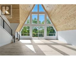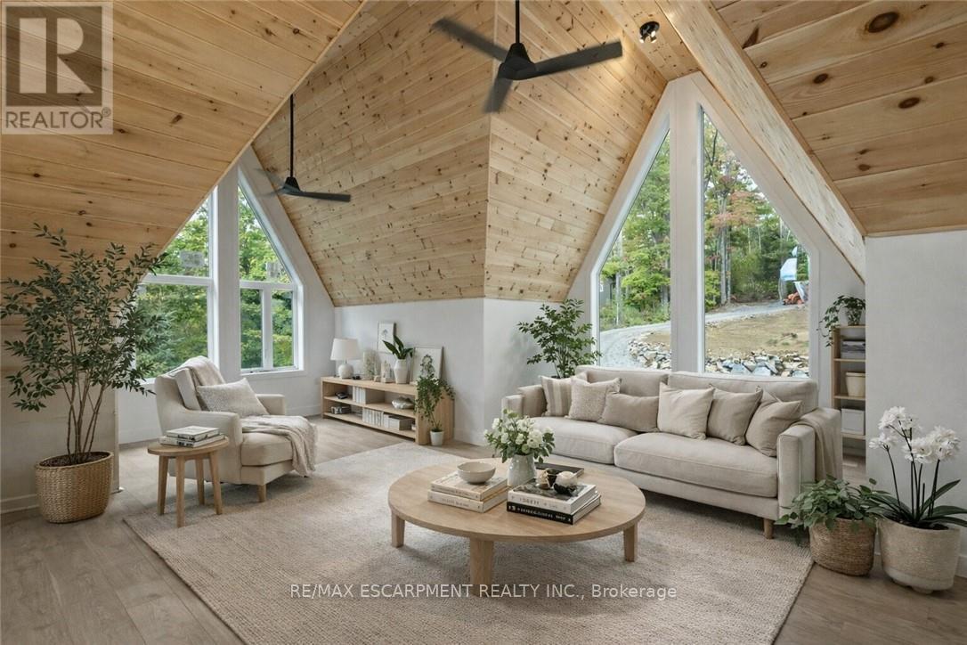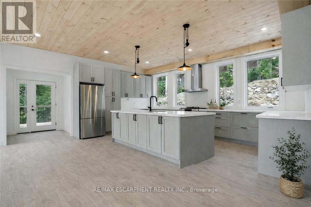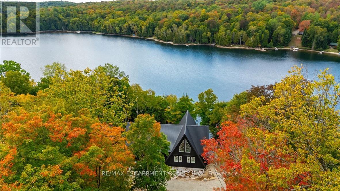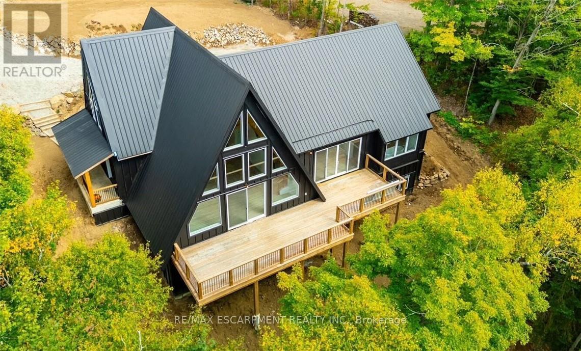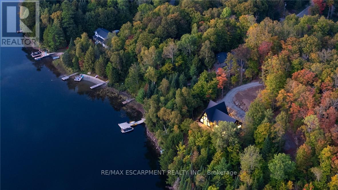 Exceptional opportunity to own this newly completed & distinguished 3-bed, 2-bath A-frame plus contemporary addition, commanding 120 ft of spring-fed Wenona Lake shoreline - where refined design, architectural impact &superior craftsmanship converge w/ quiet confidence. This custom-built residence has been masterfully constructed w/ superior ICF foundation, steel roof/siding & high-performance mechanical systems - engineered for outstanding efficiency, structural integrity & low-maintenance living. Conceived as an investment for generations to come, peace of mind is further enhanced by a comprehensive warranty by renowned luxury builder, Bridge co Homes. Discreetly set back from year-round municipal road, its true scale revealed only upon entry through a bright foyer &well-appointed mudroom, opening seamlessly into a chef-inspired kitchen w/ wet island, stainless steel appliances, generous quartz countertops & walk-in pantry. The open-concept living/dining grand room is defined by a pine-clad cathedral ceiling, expansive windows & striking loft above - making this home equally suited to upscale entertaining or restorative retreat. Spacious primary features walk-out to large deck, walk-in closet & spa-like 5 pc ensuite w/double vanity, walk-in shower & elegant freestanding bath w/ breathtaking forest & lake views. Two additional bedrooms, a refined 3-pc bath & main floor laundry provide comfort & everyday ease within the thoughtfully separated sleeping wing. The lower level offers significant additional space, complete w/ cold room & ground-level walk-out to the lake - ready to be curated to your vision & lifestyle. Enjoy serene morning coffees on the deck w/premium west-facing exposure & experience spectacular sunsets amid Ontario's most breathtaking landscapes. Minutes to Haliburton Village for boutique shopping, golf, hospital, dining & a vibrant arts community - offering an ideal balance of refined convenience & exceptional four-season lakeside living. (id:61423)