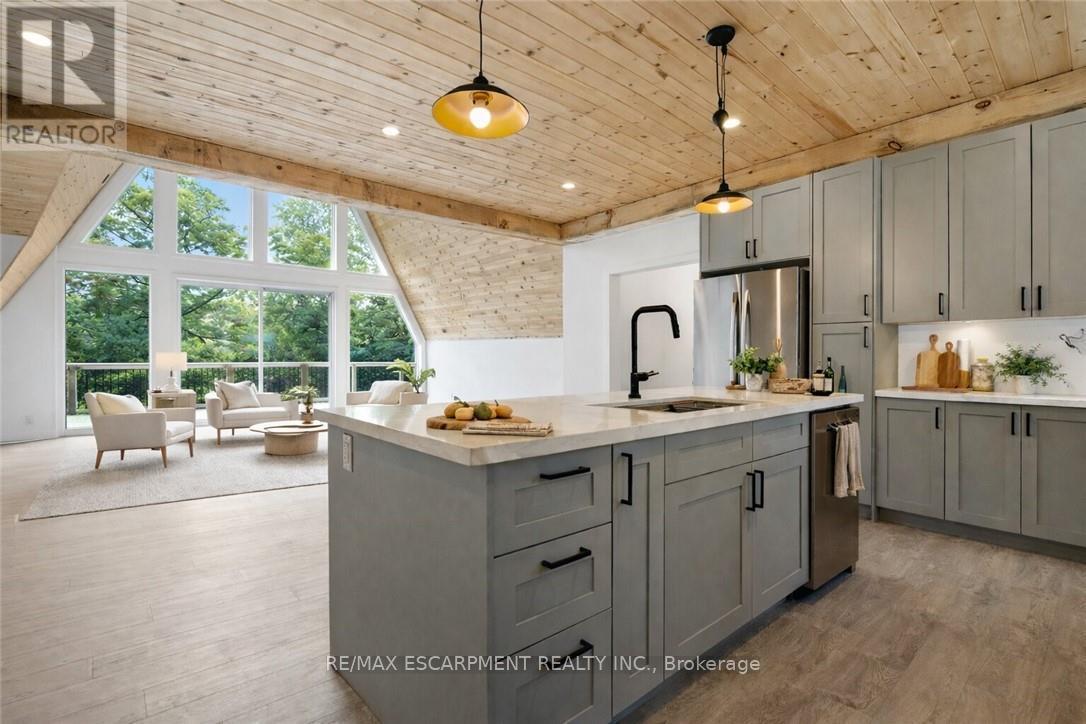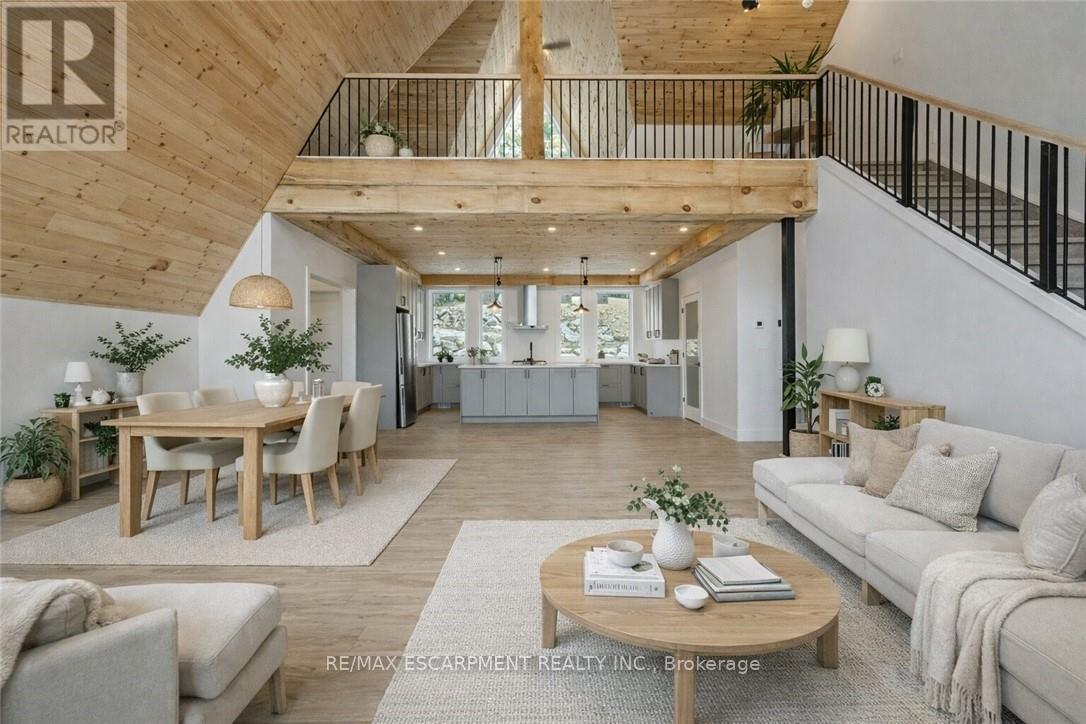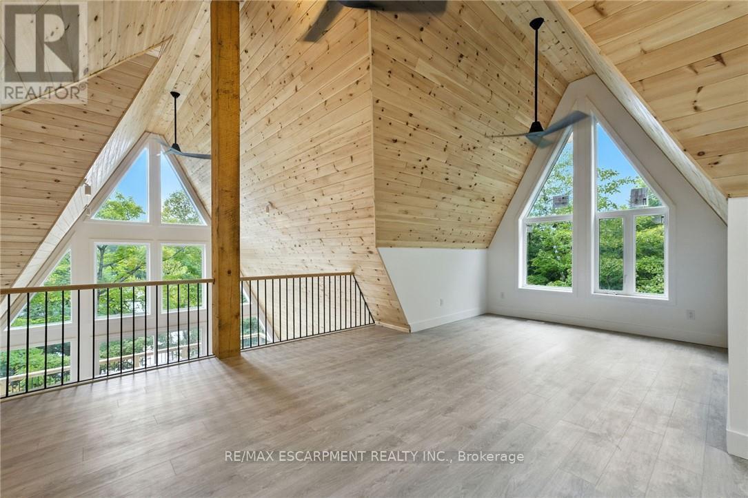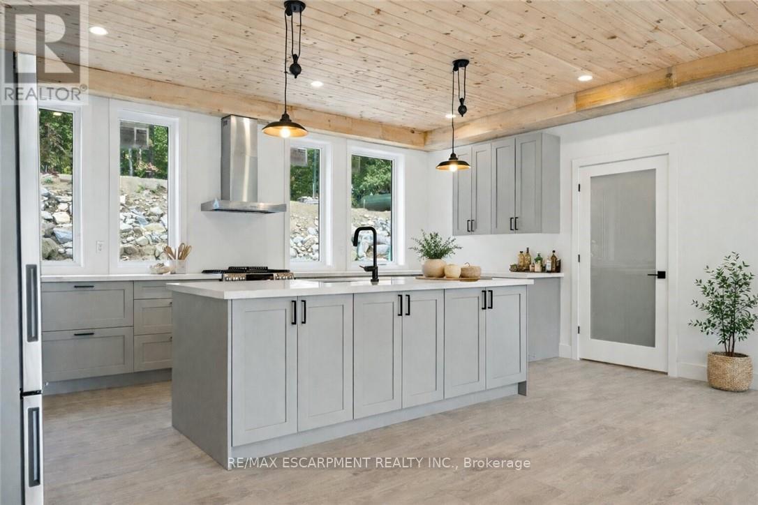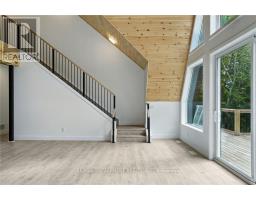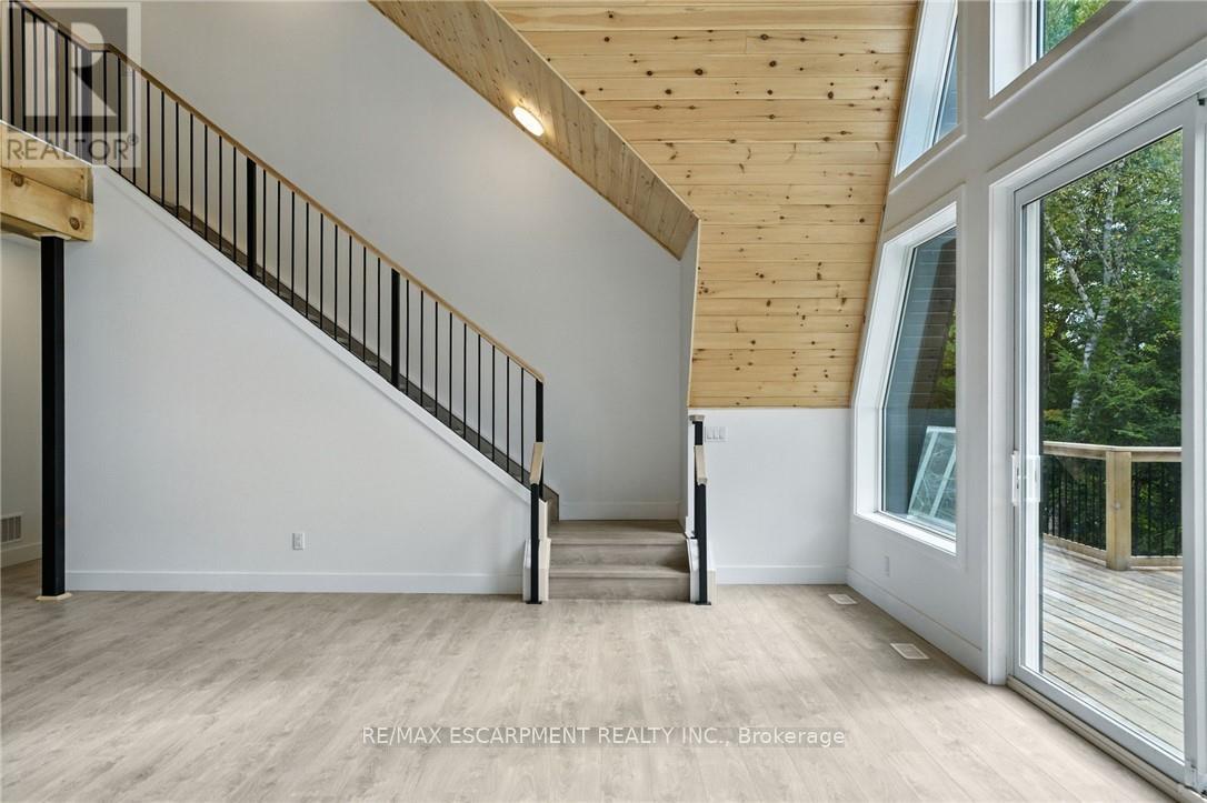 Exceptional opportunity to own this newly completed & distinguished 3-bed, 2-bath A-frame plus contemporary addition, commanding 120 ft of spring-fed Wenona Lake shoreline - where refined design, architectural impact &superior craftsmanship converge w/ quiet confidence. This custom-built residence has been masterfully constructed w/ superior ICF foundation, steel roof/siding & high-performance mechanical systems - engineered for outstanding efficiency, structural integrity & low-maintenance living. Conceived as an investment for generations to come, peace of mind is further enhanced by a comprehensive warranty by renowned luxury builder, Bridge co Homes. Discreetly set back from year-round municipal road, its true scale revealed only upon entry through a bright foyer &well-appointed mudroom, opening seamlessly into a chef-inspired kitchen w/ wet island, stainless steel appliances, generous quartz countertops & walk-in pantry. The open-concept living/dining grand room is defined by a pine-clad cathedral ceiling, expansive windows & striking loft above - making this home equally suited to upscale entertaining or restorative retreat. Spacious primary features walk-out to large deck, walk-in closet & spa-like 5 pc ensuite w/double vanity, walk-in shower & elegant freestanding bath w/ breathtaking forest & lake views. Two additional bedrooms, a refined 3-pc bath & main floor laundry provide comfort & everyday ease within the thoughtfully separated sleeping wing. The lower level offers significant additional space, complete w/ cold room & ground-level walk-out to the lake - ready to be curated to your vision & lifestyle. Enjoy serene morning coffees on the deck w/premium west-facing exposure & experience spectacular sunsets amid Ontario's most breathtaking landscapes. Minutes to Haliburton Village for boutique shopping, golf, hospital, dining & a vibrant arts community - offering an ideal balance of refined convenience & exceptional four-season lakeside living. (id:61423)