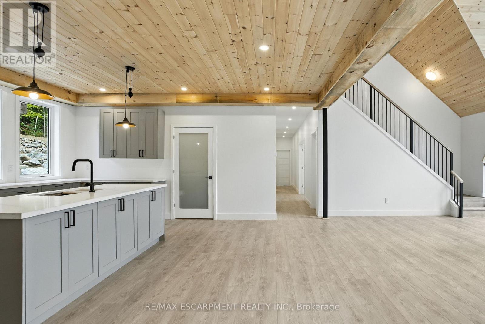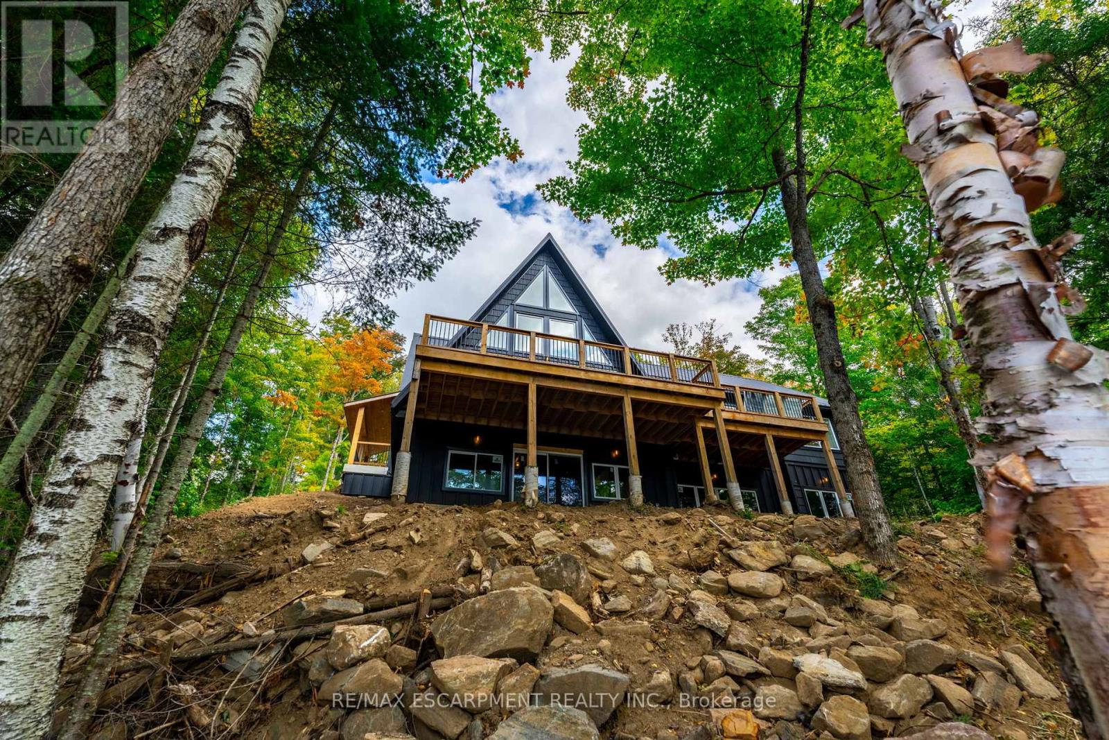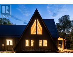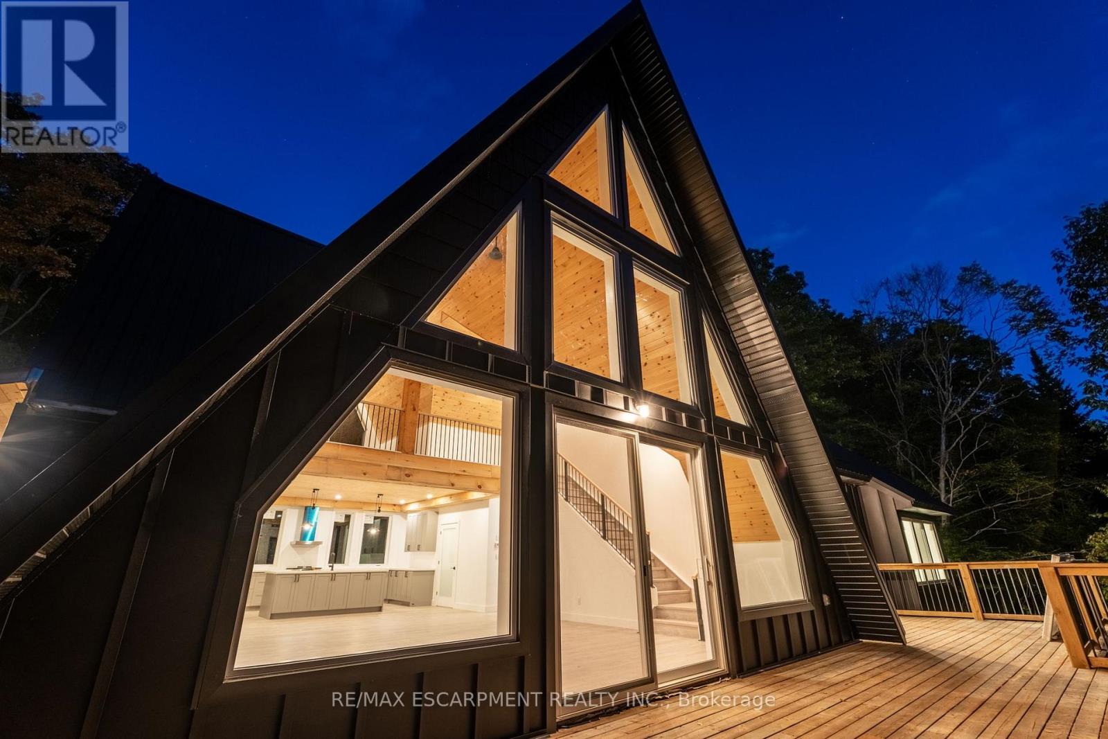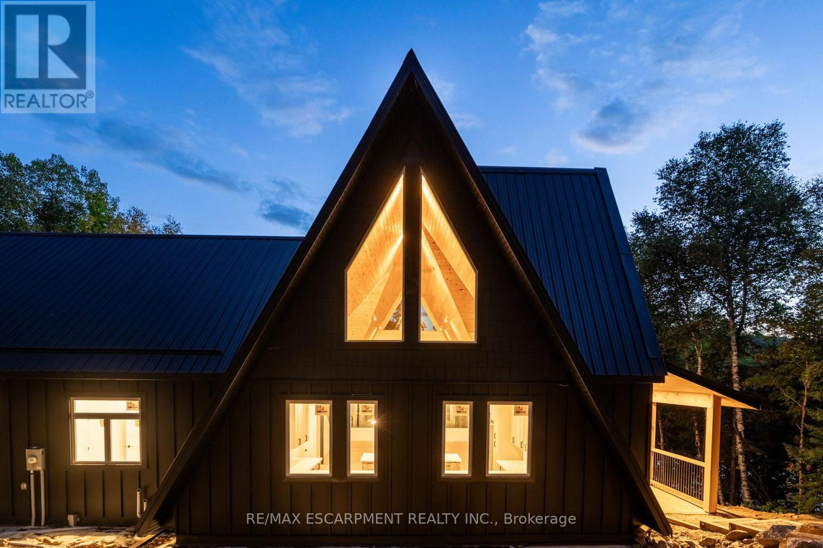 Rare opportunity to own a custom 3-bedroom, 2-bath A-frame + modern hybrid lakefront retreat on spring-fed Wenona Lake - where thoughtful design & exceptional craftsmanship meet Haliburton's pristine natural setting. Completed in October 2025, this professionally designed residence blends architectural impact with refined comfort & timeless quality. Enter through a bright foyer & well-appointed mudroom flowing into a chef-inspired kitchen with wet island, brand-new stainless steel appliances, soft-close cabinetry & generous quartz countertops. This Hollywood kitchen was designed with entertaining in mind, with the walk-in pantry adding practical storage & roughed-in versatility for future expansion. The impressive open-concept grand living room is anchored by a 500+ sq ft loft above, pine-clad cathedral ceiling & a dramatic wall of feature windows bathing the space in natural light. The spacious primary offers a walk-out to treetop balcony, walk-in closet & spa-like 5-pc ensuite with double vanity, oversized walk-in shower & freestanding tub offering breathtaking lake & forest views. Two additional bedrooms, a stylish 3-pc bath with pocket door & a main floor laundry room add ease & comfort to this captivating home. Built to exceed expectations both aesthetically and structurally, the build features an ICF foundation for superior energy efficiency, plus a steel roof & siding for durability & minimal maintenance. The lower level offers high ceilings, a cold room & walk-out to the lake - a blank canvas for future customization. Framed by maple, birch & pine trees with west-facing frontage, the property enjoys spectacular sunsets & starry nights. With year-round municipal road access, this architectural lakefront retreat is perfect for private escapes or unforgettable gatherings - a unique chance to create your family's legacy on Wenona Lake. A truly special property - built to last, designed to inspire. Luxury Certified. (id:61423)