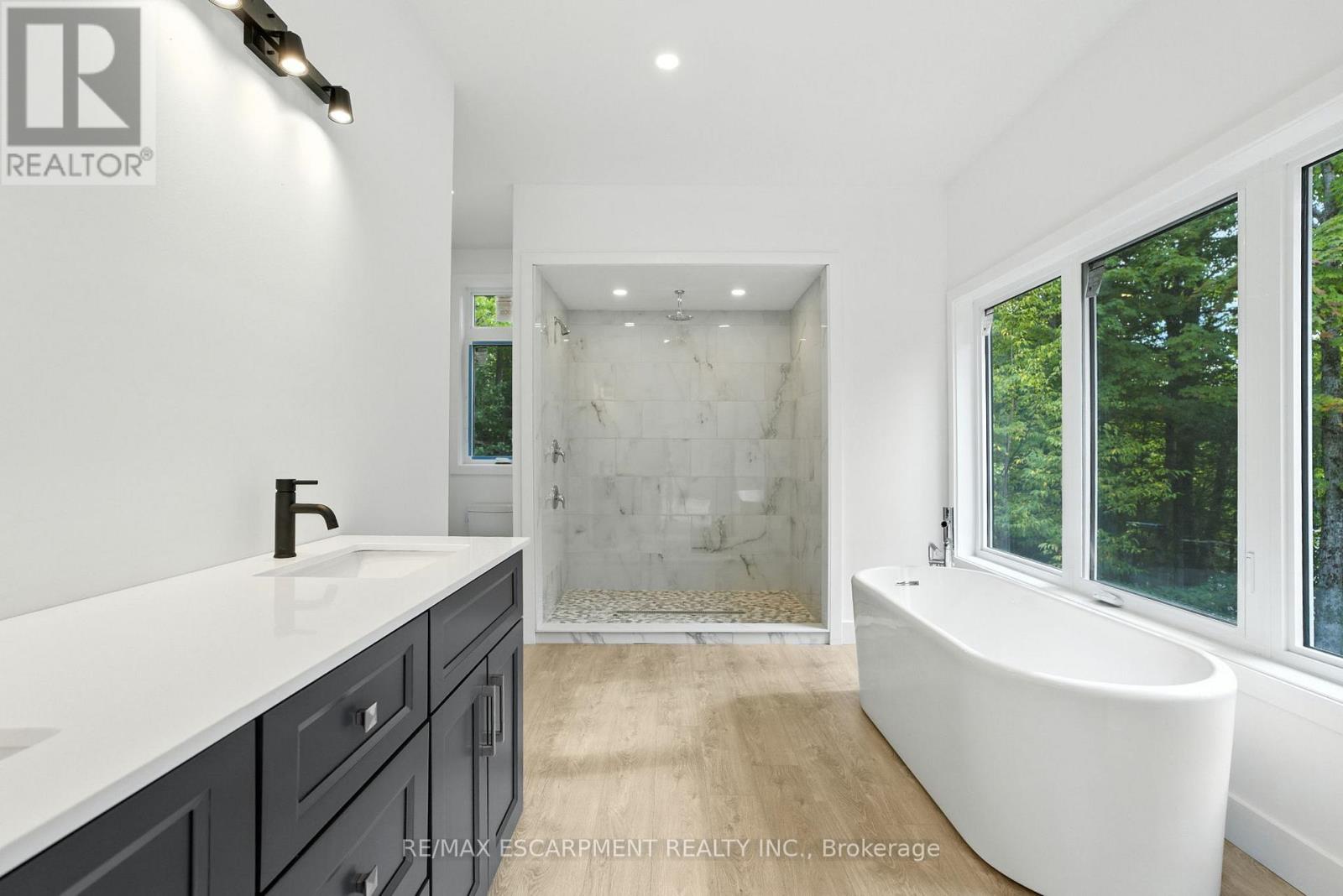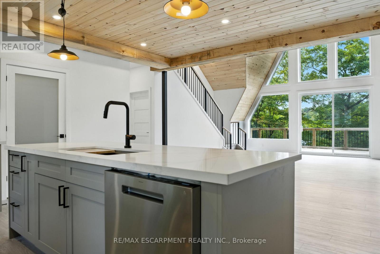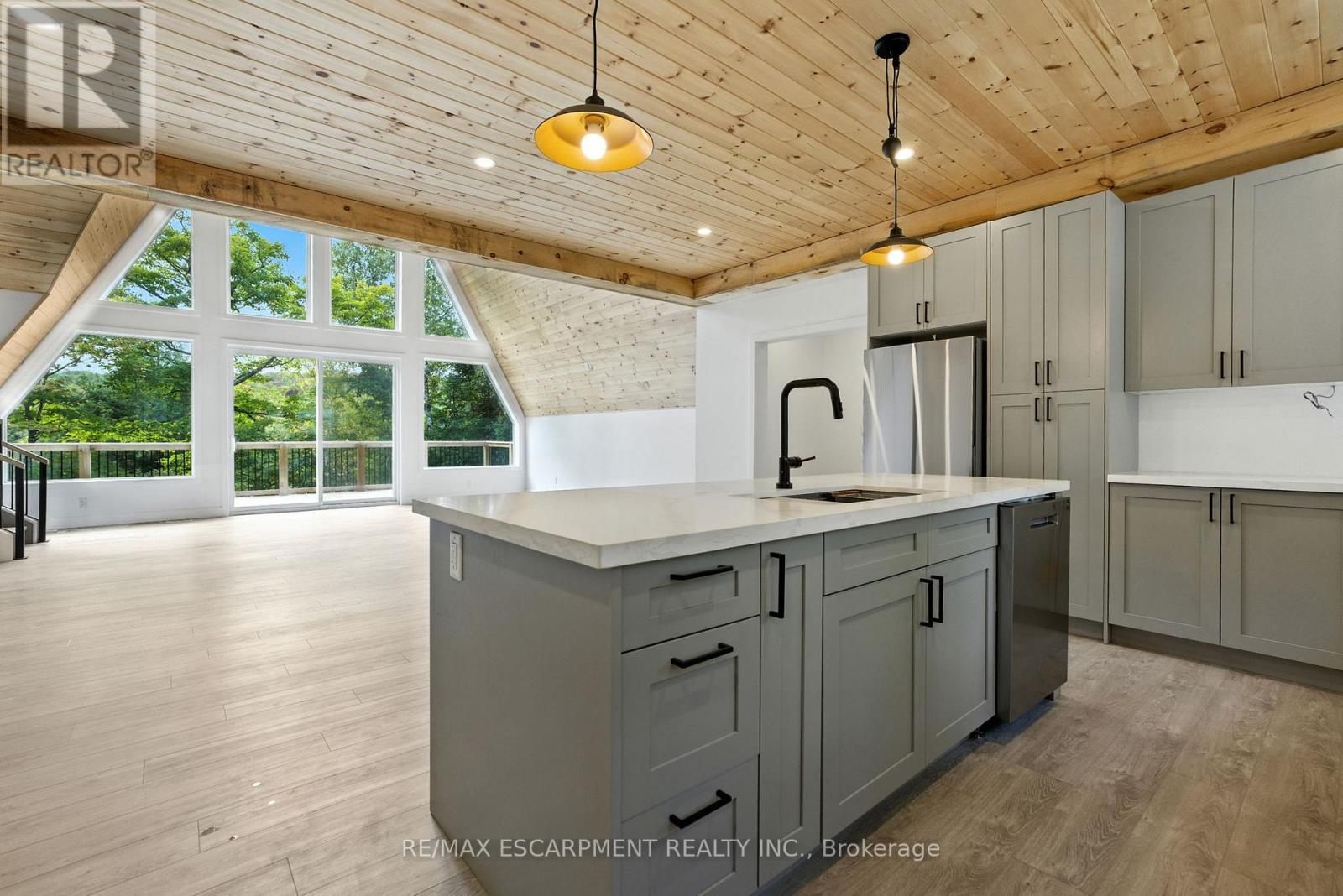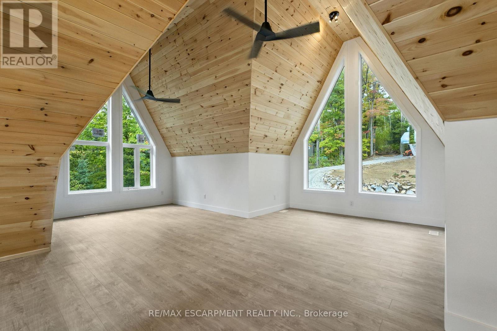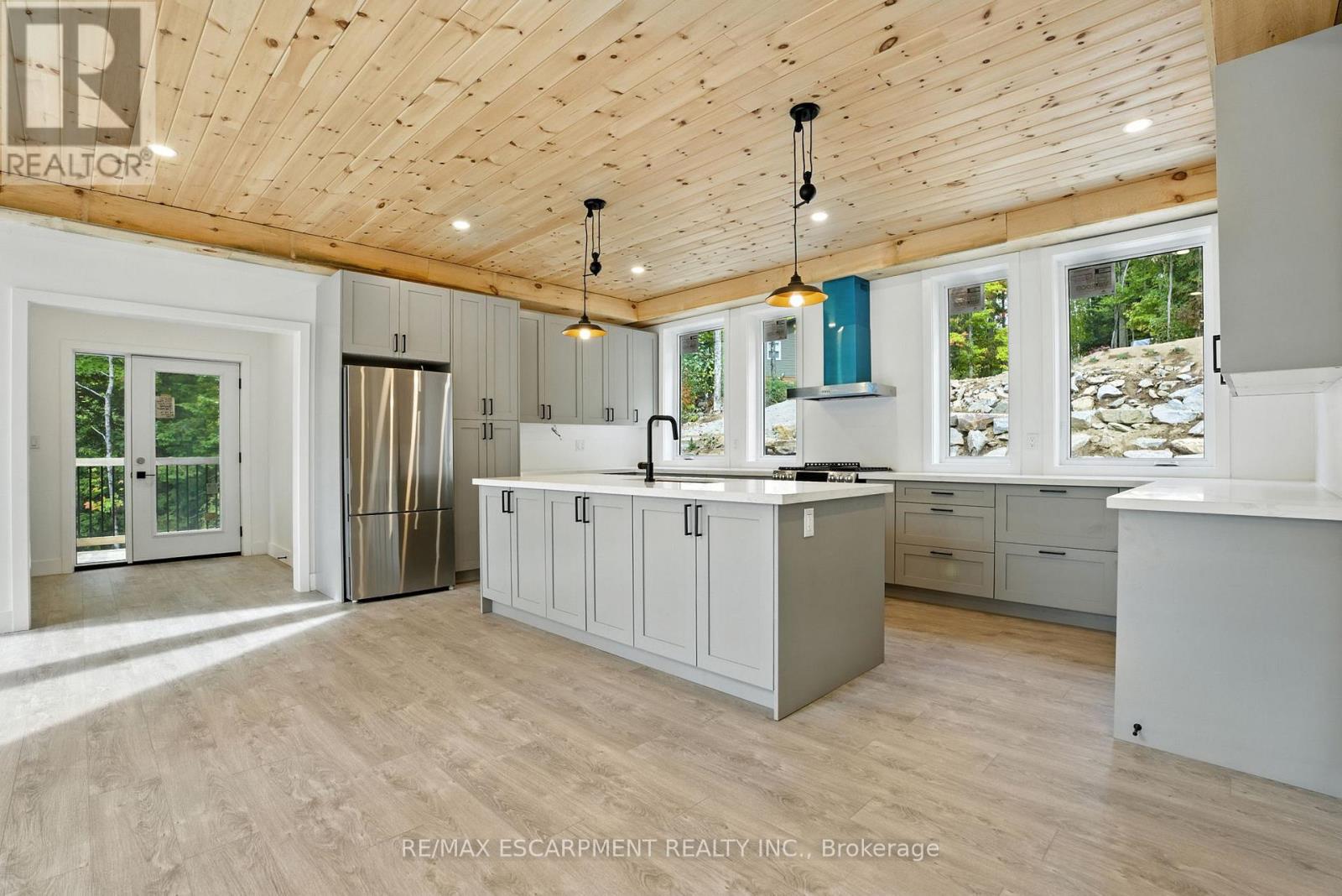 Rare opportunity to own a custom 3-bedroom, 2-bath A-frame + modern hybrid lakefront retreat on spring-fed Wenona Lake - where thoughtful design & exceptional craftsmanship meet Haliburton's pristine natural setting. Completed in October 2025, this professionally designed residence blends architectural impact with refined comfort & timeless quality. Enter through a bright foyer & well-appointed mudroom flowing into a chef-inspired kitchen with wet island, brand-new stainless steel appliances, soft-close cabinetry & generous quartz countertops. This Hollywood kitchen was designed with entertaining in mind, with the walk-in pantry adding practical storage & roughed-in versatility for future expansion. The impressive open-concept grand living room is anchored by a 500+ sq ft loft above, pine-clad cathedral ceiling & a dramatic wall of feature windows bathing the space in natural light. The spacious primary offers a walk-out to treetop balcony, walk-in closet & spa-like 5-pc ensuite with double vanity, oversized walk-in shower & freestanding tub offering breathtaking lake & forest views. Two additional bedrooms, a stylish 3-pc bath with pocket door & a main floor laundry room add ease & comfort to this captivating home. Built to exceed expectations both aesthetically and structurally, the build features an ICF foundation for superior energy efficiency, plus a steel roof & siding for durability & minimal maintenance. The lower level offers high ceilings, a cold room & walk-out to the lake - a blank canvas for future customization. Framed by maple, birch & pine trees with west-facing frontage, the property enjoys spectacular sunsets & starry nights. With year-round municipal road access, this architectural lakefront retreat is perfect for private escapes or unforgettable gatherings - a unique chance to create your family's legacy on Wenona Lake. A truly special property - built to last, designed to inspire. Luxury Certified. (id:61423)