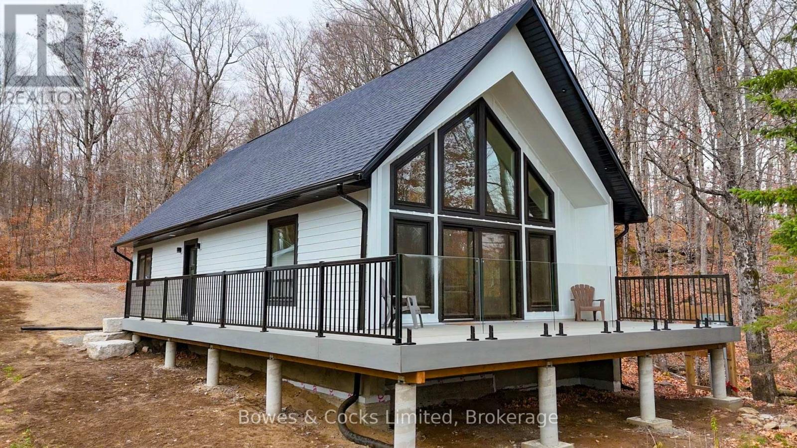 Your Private Lakeside Paradise on Finnegan Lake! Experience the best of four-season lakeside living with this stunning, brand-new custom homeset on the sparkling shores of Finnegan Lake. Offering 233 feet of pristine East-facing waterfront and nearly 7 acres of complete privacy, this property is a true retreat-perfect for relaxation, recreation, and reconnecting with nature. Step inside the beautifully crafted three-bedroom main residence, where refined design meets everyday comfort. The main level features a spacious primary suite with ensuite and a welcoming guest bedroom. Hickory hardwood floors, premium finishes, and an open-concept layout showcase breathtaking lake views throughout. The chef's kitchen is equipped with new stainless-steel appliances, making entertaining effortless. Built for year-round enjoyment, the home is fully winterized and outfitted with a high-efficiency heat pump, central air, electric furnace, and a cozy propane fireplace-ideal for snowy evenings by the fire. The property offers exceptional versatility with a self-contained guest bunkie for visiting family and friends, plus a fully equipped outbuilding complete with a bathroom, shower, and kitchenette. Down at the shoreline, a lakeside storage shed keeps your gear organized, and the gentle slope to the water makes swimming, boating, and lounging a dream. You can even drive right down to the lake for easy access. Located on a privately maintained, four-season road with friendly year-round neighbours, this property blends serenity with convenience. Just 3.4 km to Coe Hill for essentials and 23minutes to Bancroft for full amenities, it offers the perfect balance of privacy and practicality. More than a home-this is a lifestyle. Whether you're seeking a peaceful retreat, a family getaway, or a full-time escape, this Finnegan Lake gem delivers. Turnkey. Private. Breathtaking. Ready for you. (id:61423)