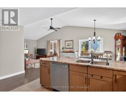 Lovely community neighbourhood! This large 7 year new Peterborough Home has lots of features and extras, double front door was an extra feature, double door pantry, added cupboard beside dishwasher, under counter lighting, gas range, gas line to deck for BBQ hookup, upgraded hardwood staircase, extra pot lights in kitchen and all showers have a light, ceramic tiled laundry room, built-in blinds in patio door, reverse osmosis system in kitchen, water softener, central air and central vac. Beautiful all brick bungalow + double garage in Norwood Park Estates! Upgraded deck looking out to a forest, no neighbours behind. Quality built in 2017 offering 2+2 bedrooms, 3 full bathrooms and fully finished basement. Bright open concept kitchen, dining room and living room with vaulted ceilings, hardwood floors and walkout to oversized deck with natural gas BBQ hook up. Main floor primary bedroom with walk-in closet and 3 piece ensuite. Finished lower level offering rec room with gas fireplace, kitchenette, and walkout to fully fenced backyard, laundry room, 2 bedrooms and 4 piece bathroom. Enjoy municipal services with friendly small-town community feel, walking trails and beautiful Millpond around the corner. Convenient to all amenities of Norwood and 20 mins to Peterborough. (id:61423)