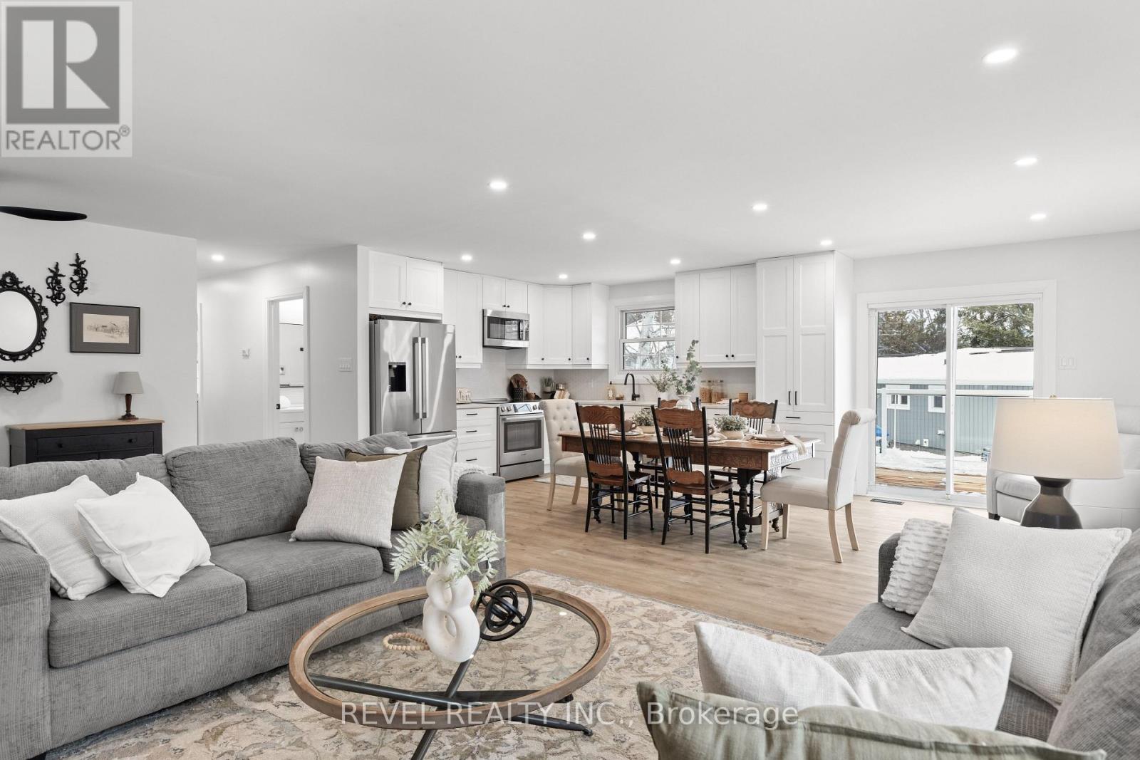 Nestled in the sought-after waterfront community of Pirates Glen, just outside Bobcaygeon, this solid raised bungalow sits proudly on a beautiful corner lot with stunning views of Pigeon Lake directly across the road. Offering an exceptional blend of comfort, space, and lifestyle, this home features a beautifully updated main floor with a brand new kitchen and dining area, new flooring, an open-concept living space, 3 spacious bedrooms, and a full main floor bathroom. Step out from the main living area onto the wraparound deck with glass railings and soak in the picturesque lake views.The home is loaded with valuable upgrades: an updated high-efficiency propane furnace, a steel roofing system with a 50-year warranty, Generlink hydro system, and a newer septic system installed in 2008. The attached two-car garage, featuring a new door offers direct entry into the home for added convenience.The fully finished lower level is bright and inviting, with large windows, a full bathroom, an additional bedroom, and a spacious laundry room, making it ideal for guests, extended family, or extra living space. Residents also enjoy access to an incredible community park with a sandy beach and boat docking available for a small annual fee. With waterfront living perks and endless potential, this close-to-the-water home could be exactly what you've been waiting for. Located between Bobcaygeon & Buckhorn. (id:61423)