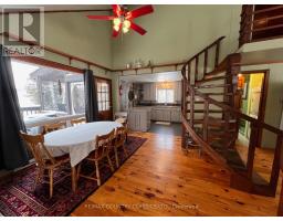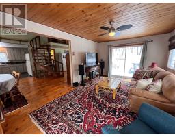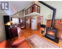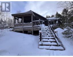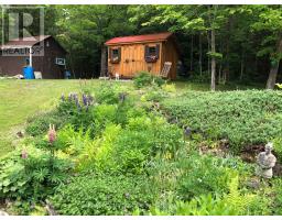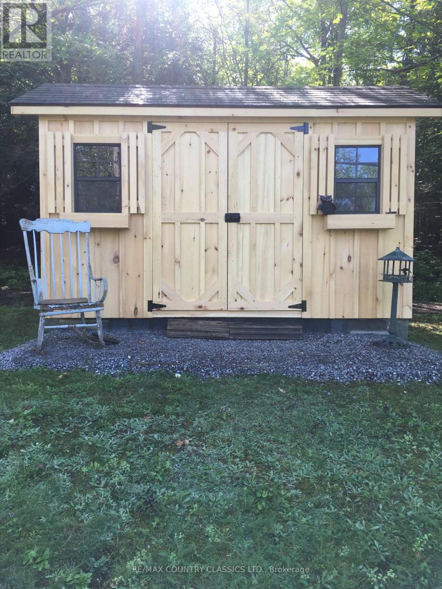 Bancroft area - This is a perfect spot to enjoy the view of Wadsworth Lake without paying waterfront taxes. This 3 bedroom home is situated on 1.74 acres on a year round road and features many outbuildings. Adorable bunkie for guests, garden shed, greenhouse and drive shed are on a well treed lot. Very cozy 3 bedroom home has a front deck, a nice screen porch facing the lake, and a composite back deck featuring a hot tub with easy access from the living room patio doors. Main floor has both a living room and family room, a 3 piece bathroom with stackable washer and dryer, kitchen, dining room and main floor bedroom.. Upper floor has 2 bedrooms with fir flooring and lots of storage. House is heated with a propane stove in the family room and electric baseboard heaters. Hydro averages $110 per month and propane is $1800 per year. New metal roof was installed in 2018 with added insulation and house is insulated under the living room. Crawl space in the basement is insulated and heated. Drilled artesian well produces 40 GPM. Most furnishings are included. This home is suitable for a cottage or a year round home! (id:61423)