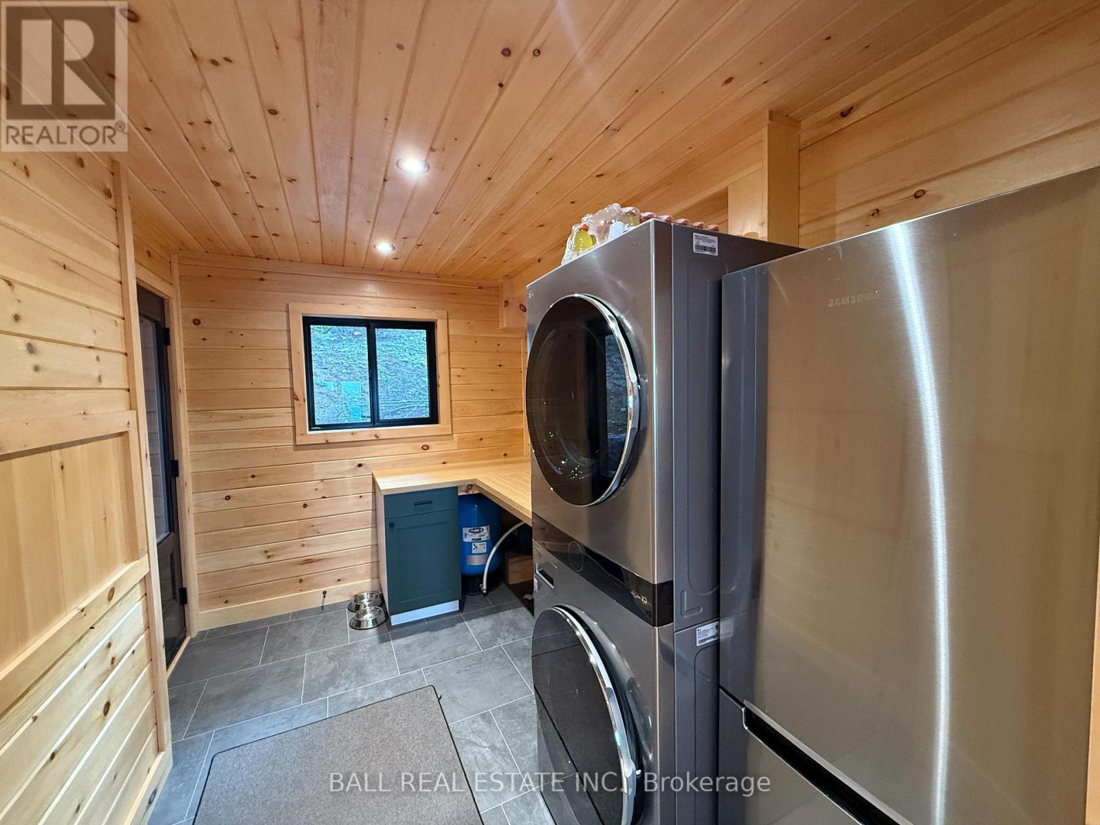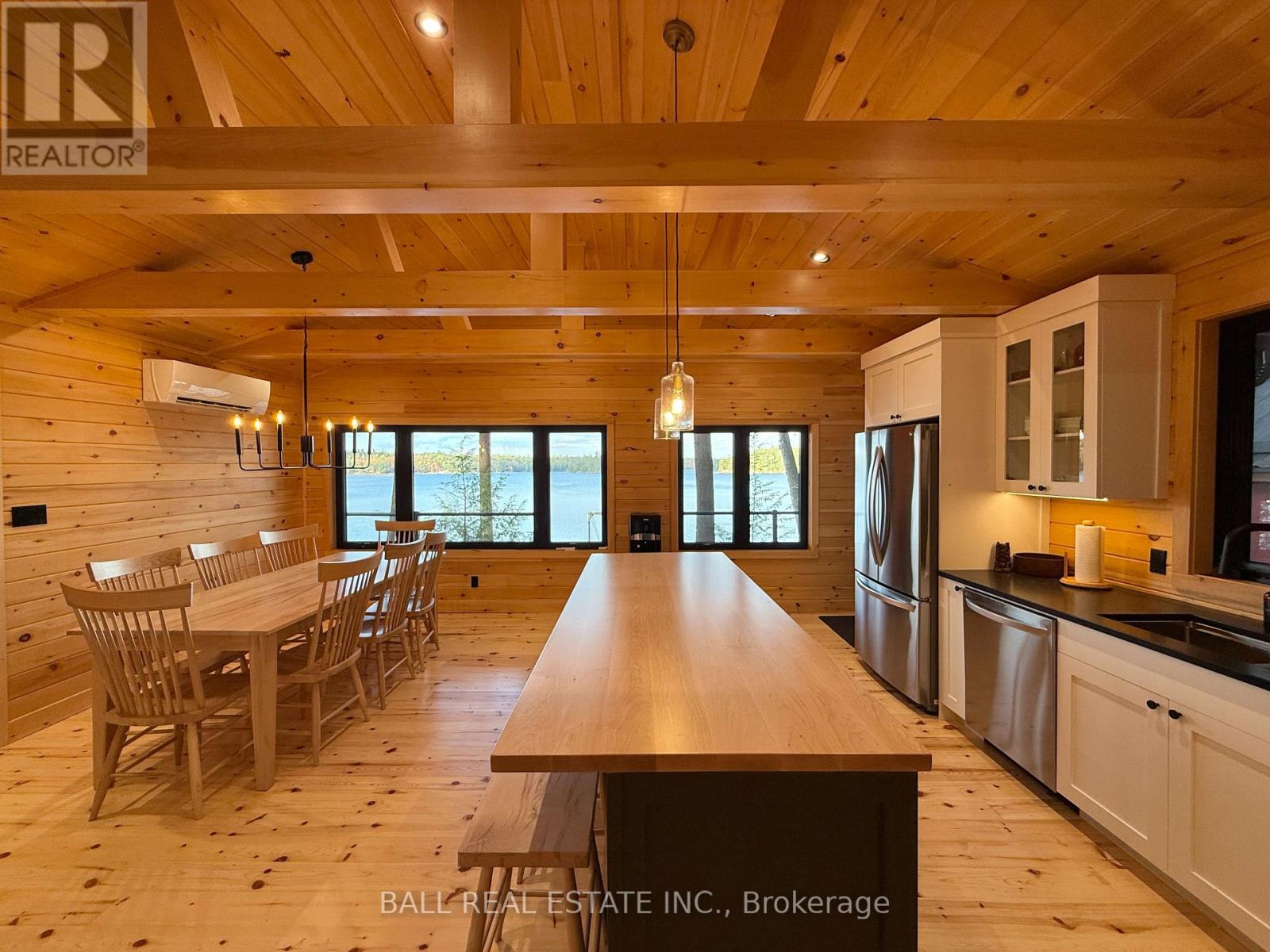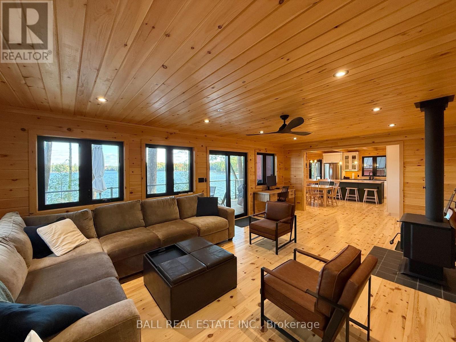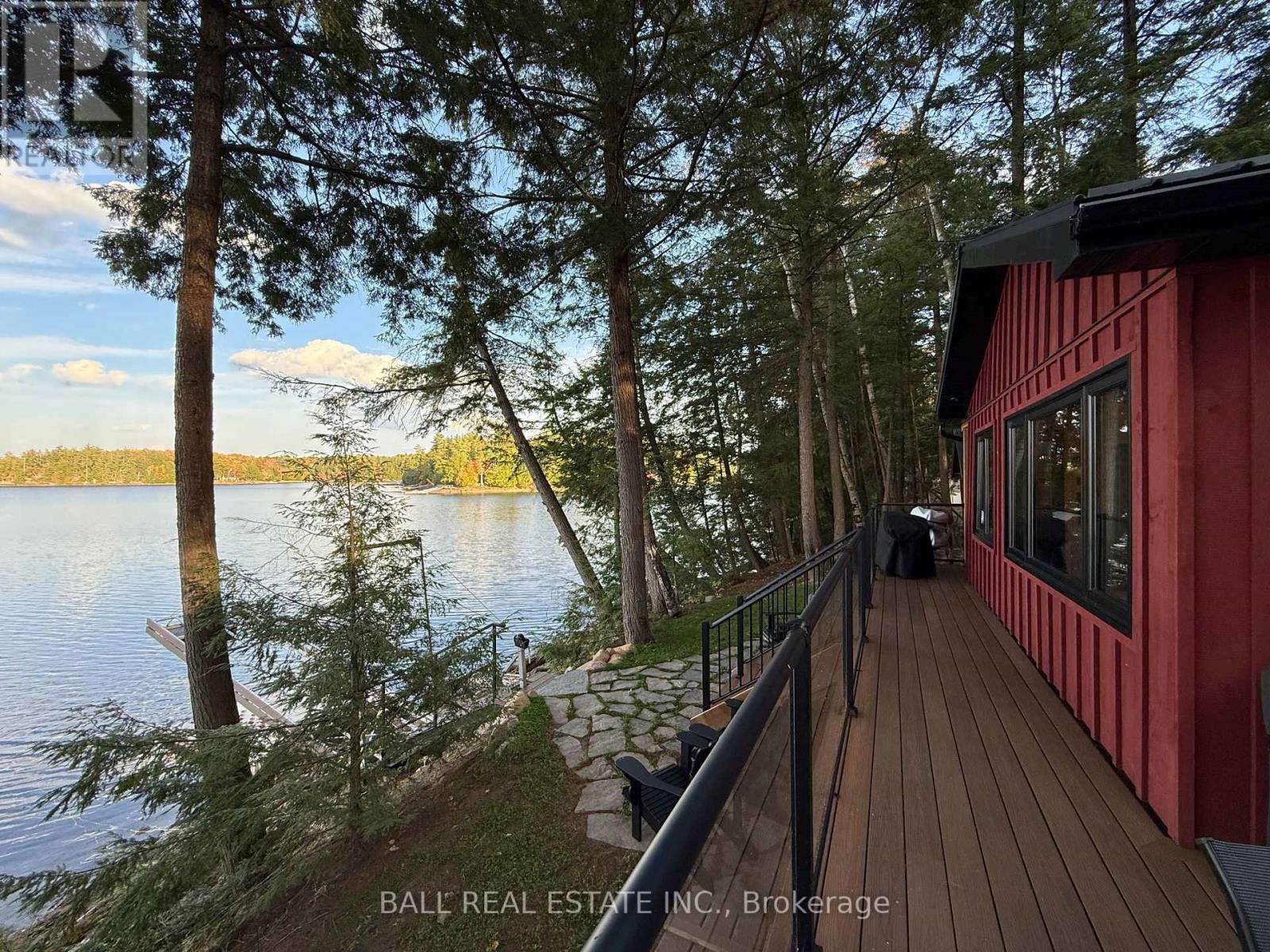Fully renovated 4 season cottage on beautiful Beaver Lake! This board & batten bungalow is set right at the waters edge, tucked in the trees on an acre of land with 112ft owned, clean waterfront for great swimming, fishing and boating on this desirable 7 lake chain. Significant quality renovations inside and out, ready for you to start enjoying cottage life with all new appliances (2024) and furnishings included. Newly updated metal roof, foundation, retaining wall, siding, full water system with heated waterline, heat/AC pumps, WETT woodstove, baseboard heat in crawl space, Generlink, EV charger, composite decking, staircases, flagstone landscaping etc. Step inside to beautiful open concept living space with spectacular lakeviews from the premium kitchen with eat-up island, dining and living room. Offering 3 bedrooms + loft, full bathroom and laundry with updated 200amp panel, on demand hot water, softener etc. Walkout to lakeside deck or firepit that are just steps to the R&J Machine dock 20x12 with 2 seadoo ports & winch. Great lakeside storage outbuilding with kayaks & racks included, plus the outdoor furniture, Weber BBQ & Blackstone. Nothing left to do to start living quality cottage life on Beaver Lake and this sought-after lake chain! (id:61423)