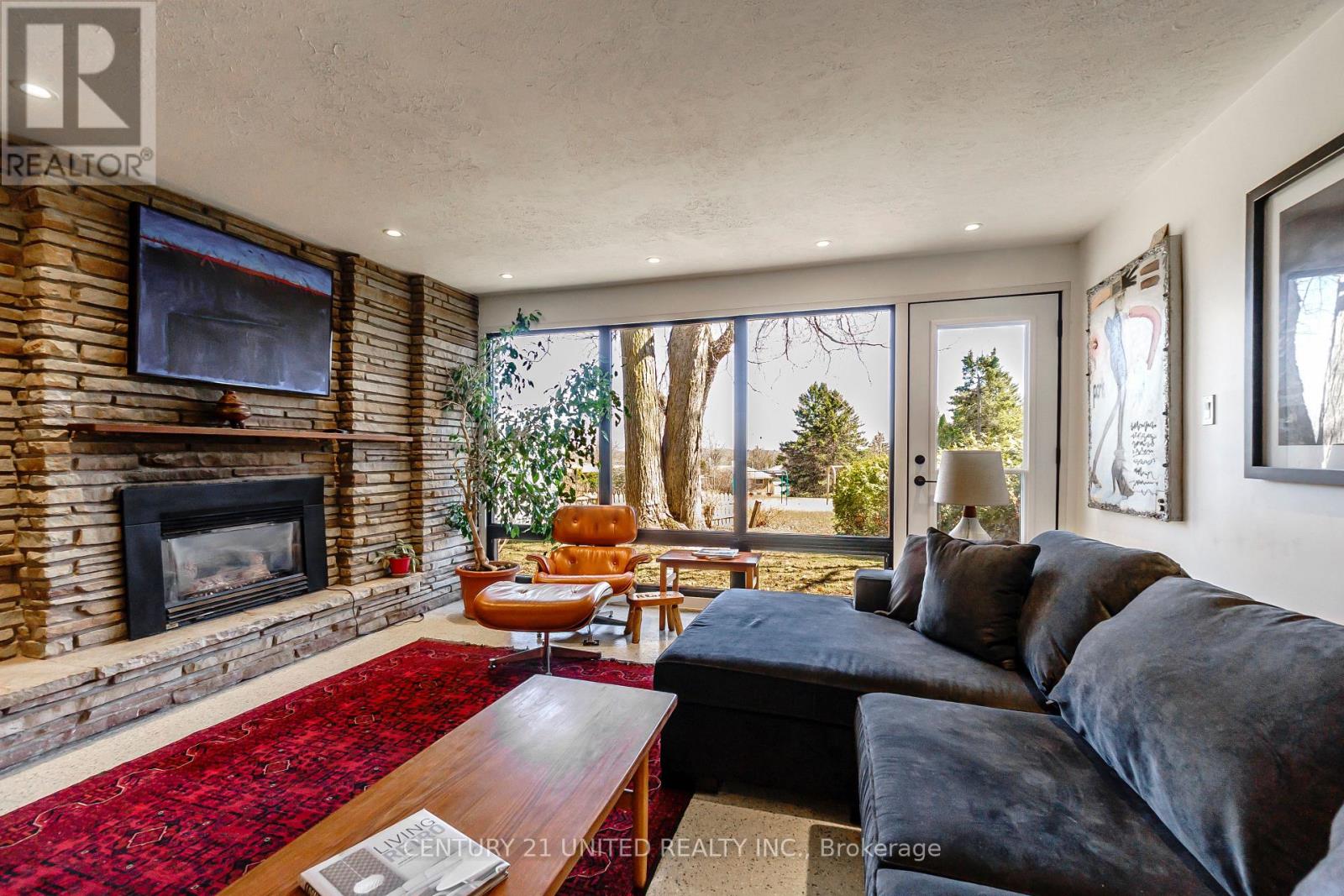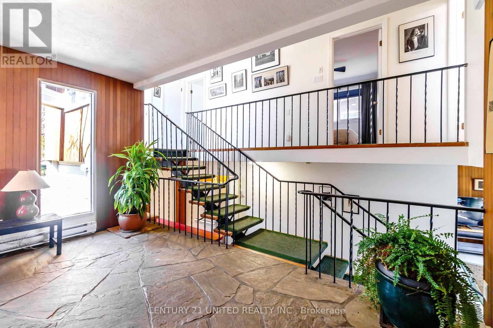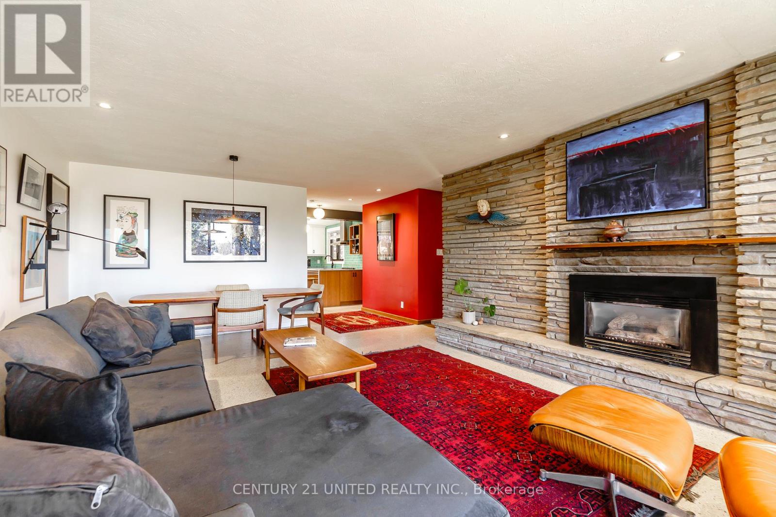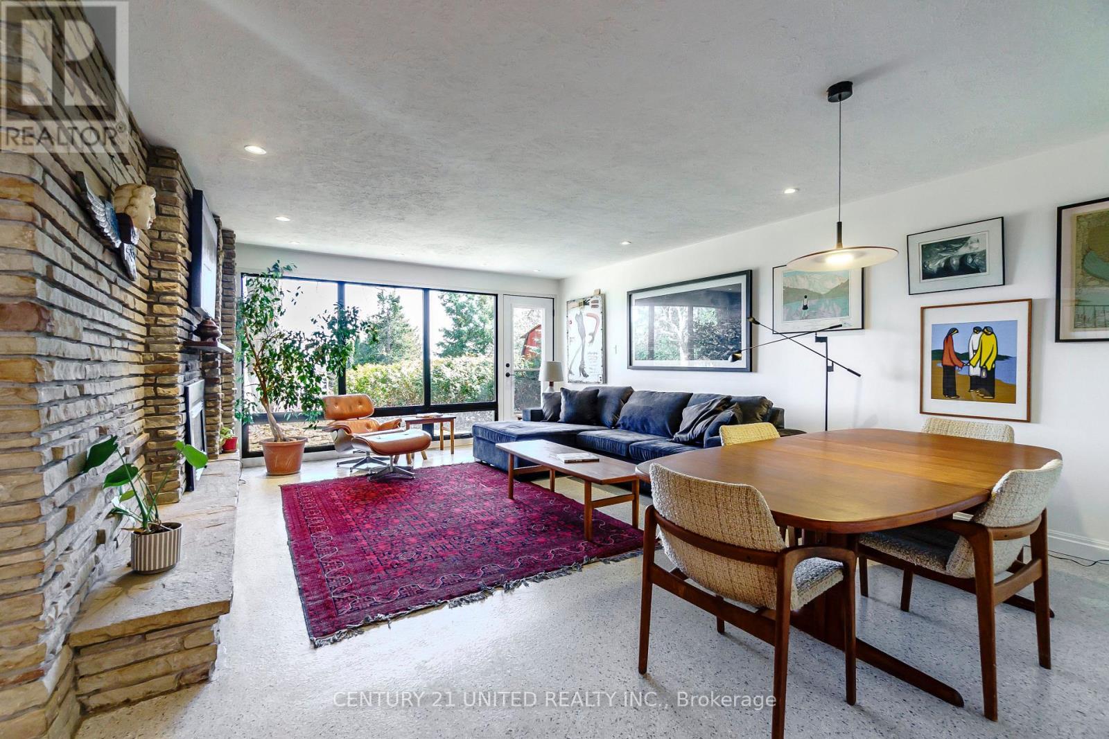 This custom-built mid-century modern masterpiece, completed in 1963, is a testament to the elegance of natural elements. The home features stone and cedar finishes, floor-to-ceiling windows that flood the interior with natural light, and an organic connection between indoor and outdoor spaces. Recognized for its design excellence, this home is a well-executed example of mid-century housing. The split-level construction creates an open concept while providing separate areas for privacy. The recessed entrance, floor-to-ceiling black-framed windows, polished concrete floors, modern and sympathetic kitchen renovation, renovated bath, ensuite bath, stone fireplace in the living room, and walk-out to a picturesque parkette add to the home's charm. Upgraded wiring, new pot lights, roof covering 2021, an attached garage with convenient access to the house, and a truly beautiful, warm, and inviting space make this home much larger than expected. The home boasts great curb appeal, a low profile that blends into the landscape, and an attractive circular driveway. A private sunny side patio just off the kitchen provides a convenient space for breakfast and lounging. Backed onto green space, this home is close to all amenities, schools, shopping, Trent University, trails, and Riverview Park and Zoo. Its quiet central location, friendly neighbourhood, green spaces for kids and dog walking, makes it an ideal choice. Heat and Hydro approx. $255.00 monthly average. This home will undoubtedly impress you. (id:61423)