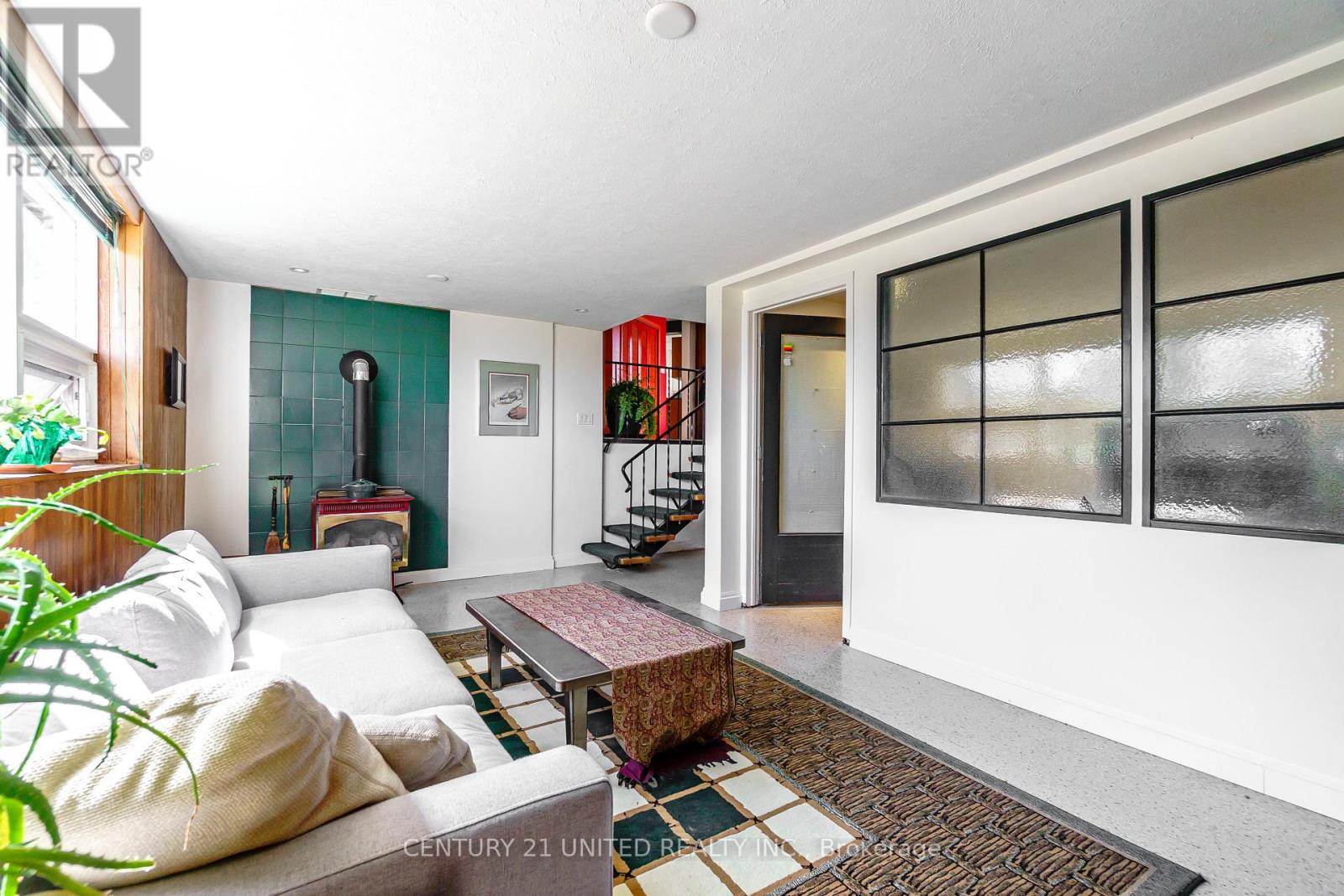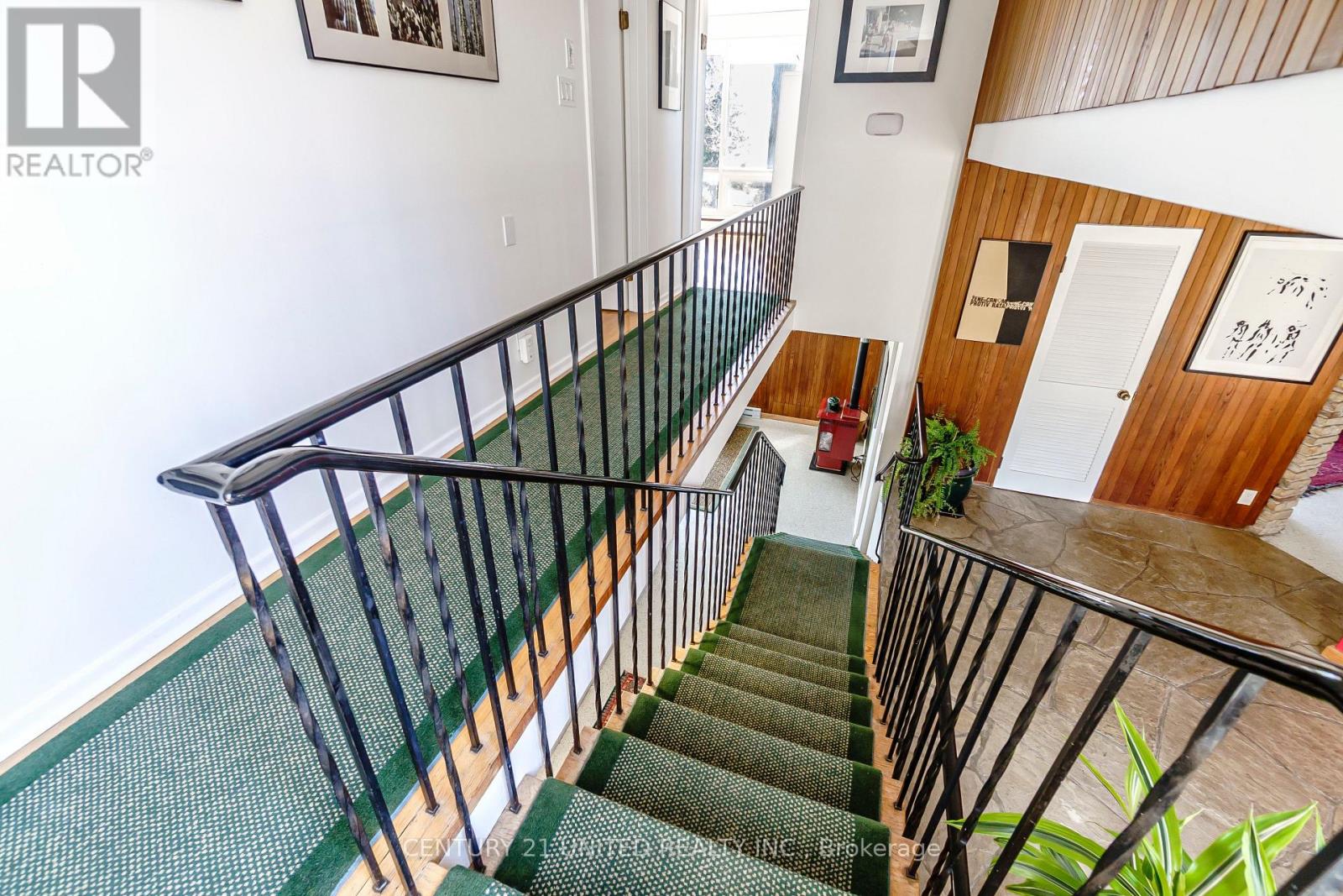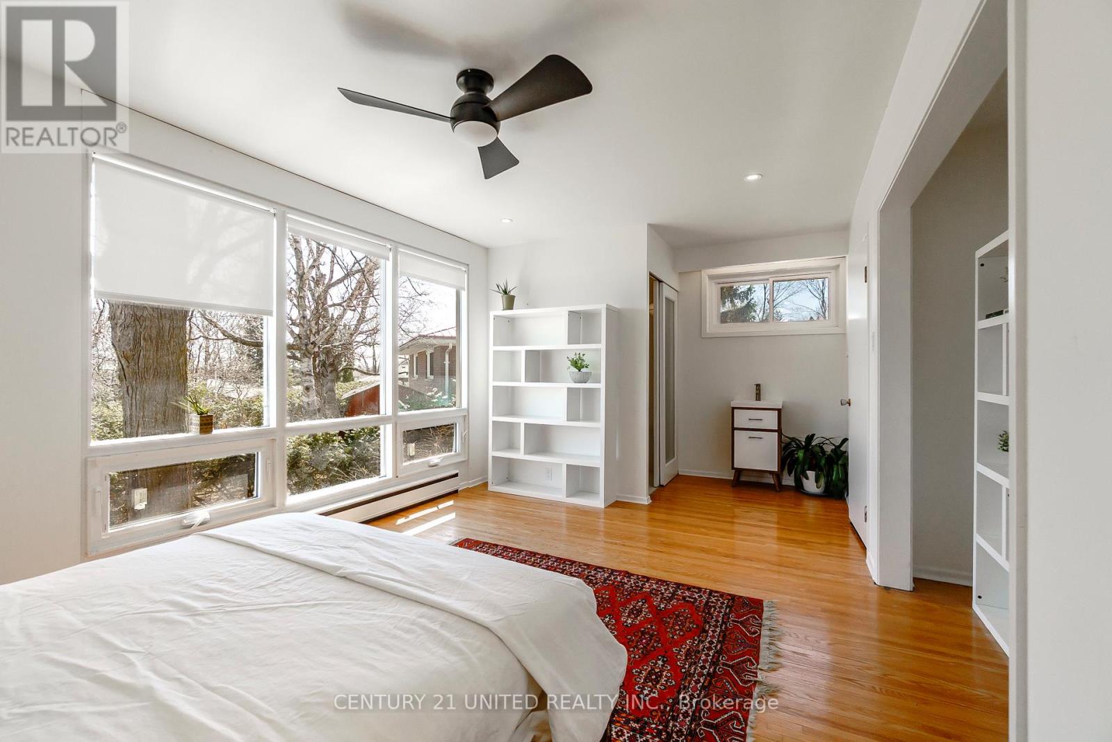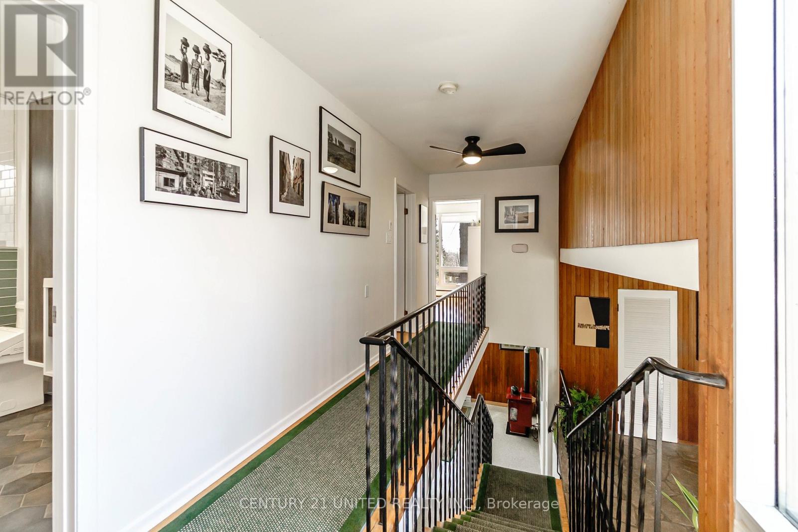 This custom-built mid-century modern masterpiece, completed in 1963, is a testament to the elegance of natural elements. The home features stone and cedar finishes, floor-to-ceiling windows that flood the interior with natural light, and an organic connection between indoor and outdoor spaces. Recognized for its design excellence, this home is a well-executed example of mid-century housing. The split-level construction creates an open concept while providing separate areas for privacy. The recessed entrance, floor-to-ceiling black-framed windows, polished concrete floors, modern and sympathetic kitchen renovation, renovated bath, ensuite bath, stone fireplace in the living room, and walk-out to a picturesque parkette add to the home's charm. Upgraded wiring, new pot lights, roof covering 2021, an attached garage with convenient access to the house, and a truly beautiful, warm, and inviting space make this home much larger than expected. The home boasts great curb appeal, a low profile that blends into the landscape, and an attractive circular driveway. A private sunny side patio just off the kitchen provides a convenient space for breakfast and lounging. Backed onto green space, this home is close to all amenities, schools, shopping, Trent University, trails, and Riverview Park and Zoo. Its quiet central location, friendly neighbourhood, green spaces for kids and dog walking, makes it an ideal choice. Heat and Hydro approx. $255.00 monthly average. This home will undoubtedly impress you. (id:61423)