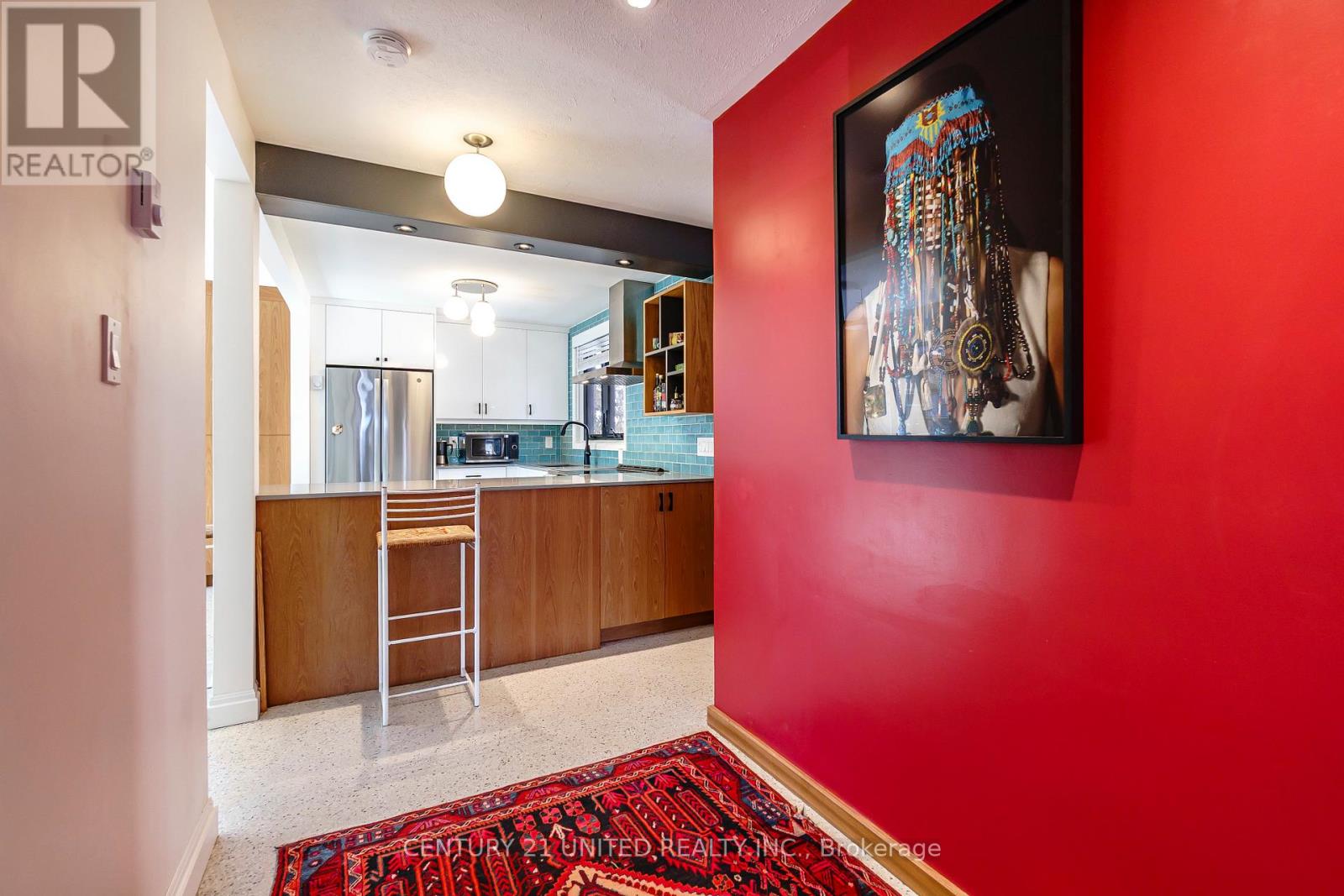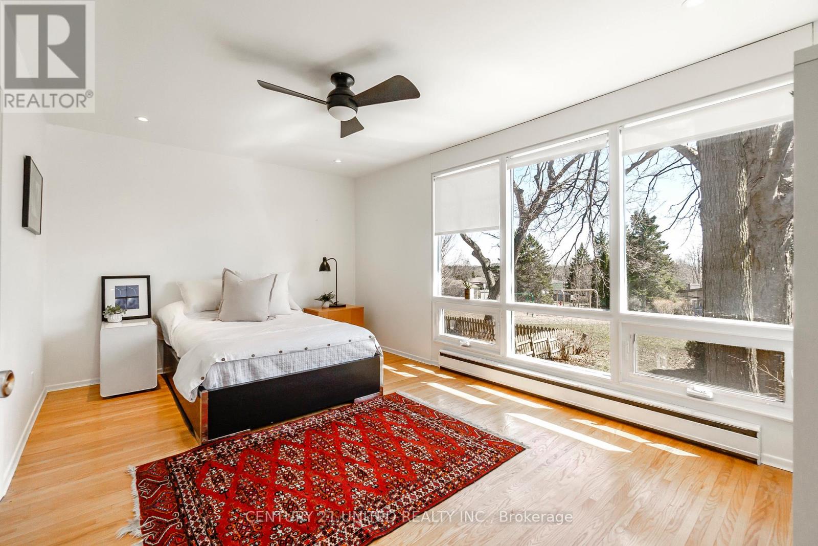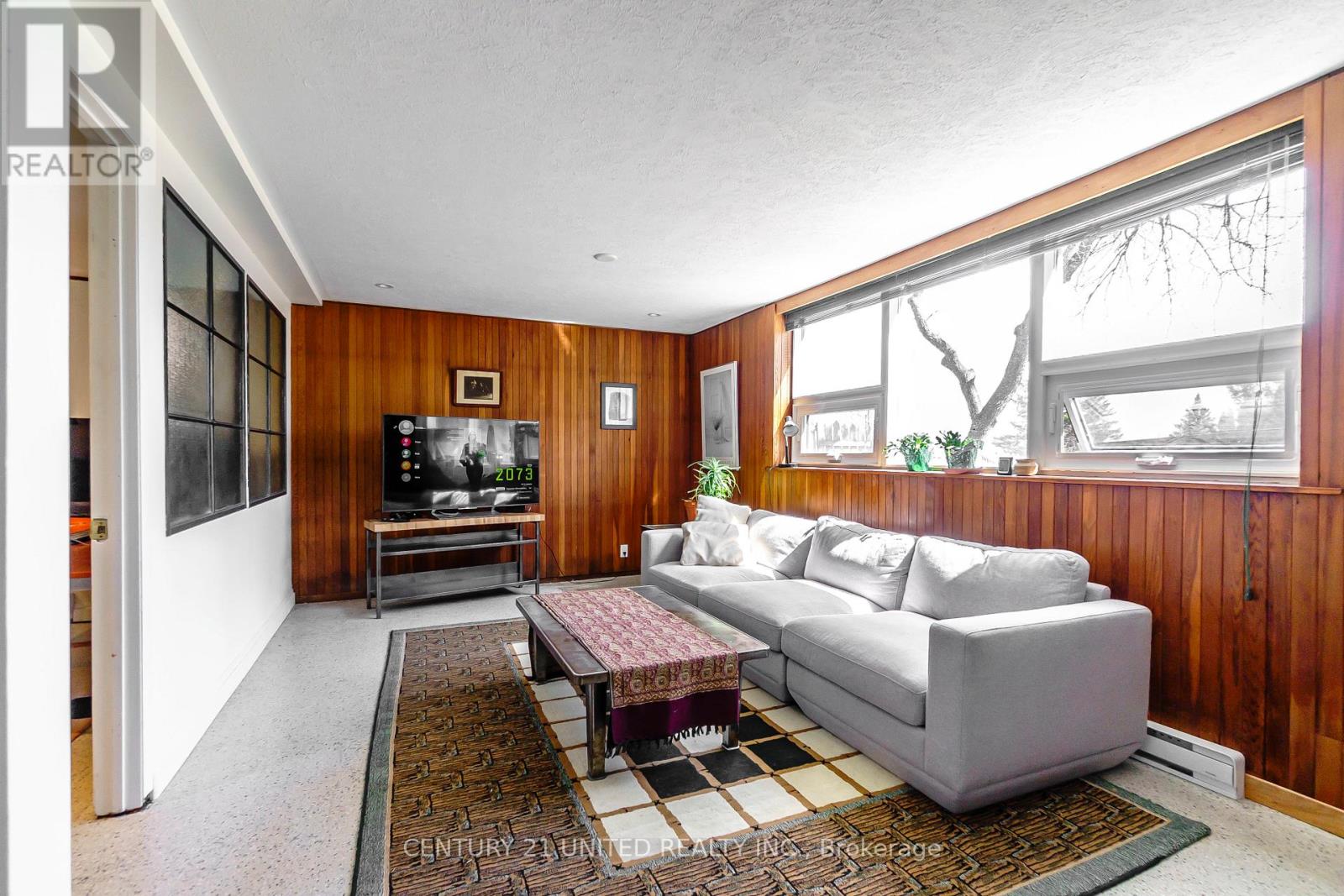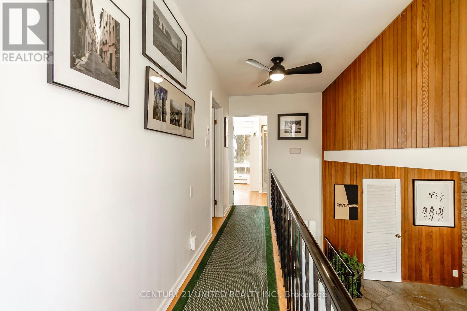 This custom-built mid-century modern masterpiece, completed in 1963, is a testament to the elegance of natural elements. The home features stone and cedar finishes, floor-to-ceiling windows that flood the interior with natural light, and an organic connection between indoor and outdoor spaces. Recognized for its design excellence, this home is a well-executed example of mid-century housing. The split-level construction creates an open concept while providing separate areas for privacy. The recessed entrance, floor-to-ceiling black-framed windows, polished concrete floors, modern and sympathetic kitchen renovation, renovated bath, ensuite bath, stone fireplace in the living room, and walk-out to a picturesque parkette add to the home's charm. Upgraded wiring, new pot lights, roof covering 2021, an attached garage with convenient access to the house, and a truly beautiful, warm, and inviting space make this home much larger than expected. The home boasts great curb appeal, a low profile that blends into the landscape, and an attractive circular driveway. A private sunny side patio just off the kitchen provides a convenient space for breakfast and lounging. Backed onto green space, this home is close to all amenities, schools, shopping, Trent University, trails, and Riverview Park and Zoo. Its quiet central location, friendly neighbourhood, green spaces for kids and dog walking, makes it an ideal choice. Heat and Hydro approx. $255.00 monthly average. This home will undoubtedly impress you. (id:61423)