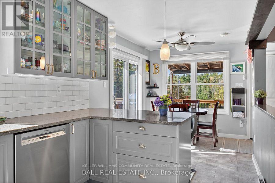 Escape to your own private paradise on Little Silver Lake with this charming move in ready bungalow nestled on 6.8 acres, boasting an incredible 1170 feet of pristine waterfront. Located just 10 minutes north of Bobcaygeon, this rare property offers peace, privacy, and endless potential. Whether you're seeking a serene family retreat, a full-time residence, or a work-from-home haven, this home with approximately 2000 sq ft of finished living space delivers. Reliable Bell Fiber and Starlink internet ensure seamless connectivity, while the spacious detached oversized double garage plus extra bay workshop is ideal for hobbies, storage, or even a home-based business (subject to municipal approval). The 1000 sq.ft. of lakeview deck with two barbecues, one a Weber connected to the propane system, is perfect for entertaining, and there is ample parking for up to 30 vehicles. Inside, you'll find comfort year-round with a multi-head heat pump, electric baseboard heating, and cozy Napolean propane fireplaces as a third heat source. A drilled well provides a dependable water supply. Meticulously maintained and thoughtfully upgraded over 34 years by the current owners, this exceptional property is ready for your next chapter. (id:61423)