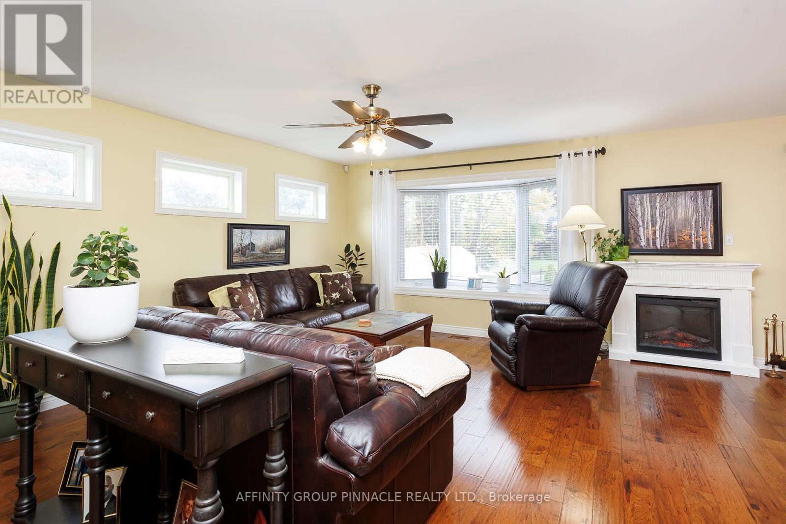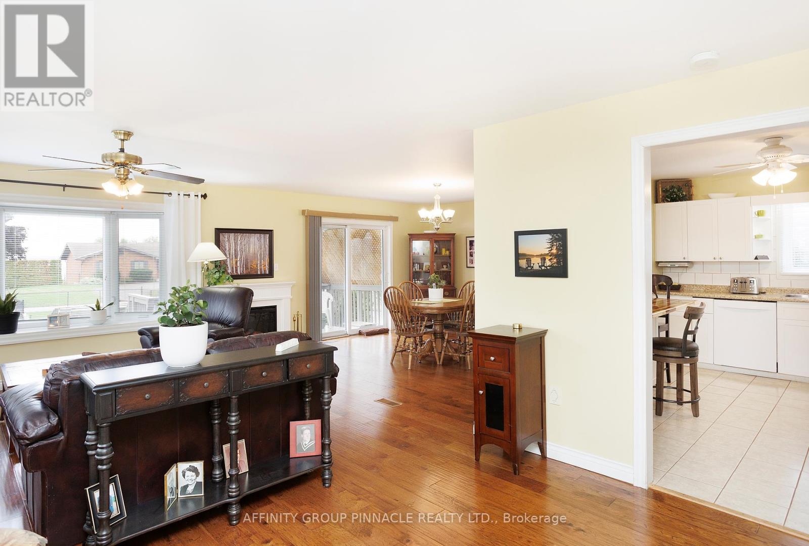Fully updated and perfectly maintained raised bungalow in desired area of Fenelon Falls. This home offers a spacious and natural light filled main floor with open concept living, 2+2 bedrooms,1 full and 2 half bathrooms and an attached single car garage. Engineered hardwood and ceramic tile throughout. Updates include but are not limited to, windows throughout, new front door, updated bathrooms, heat pump/furnace and HVAC (2017), Pacific Energy woodstove, new composite decking, asphalt shingles with 50 year warranty (2022), and a fully fenced backyard perfect for keeping the kids and the pets in. The home has been recently resided and new eavestroughs added. The freshly remodelled kitchen with a new gorgeous acacia wood island counter is the heart of the home with beautiful peek-a-boo views of Cameron Lake. This unique property offers an entrance off of both Queen Street and Dodd Street with parking and entrances on both sides, and could easily be converted into a multi family home and has excellent in-law suite potential. Home was originally built to R2000 specifications (no certificate). Tons of storage offered in the home and in exterior sheds. Excellent location with walking trails, downtown, public beach and and schools all close by. Energy efficient home with Heat and Hydro for 2024 only ($2128) and Wood ($300). (id:61423)