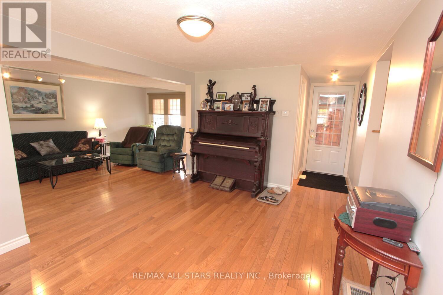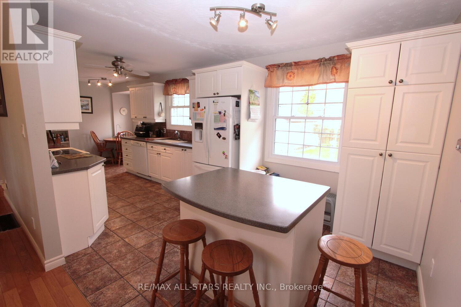 Pride of ownership. Picture perfect setting. Large intown lot with that country feel. Enter this magnificent home through your sunroom to your large family room with gleaming hardwood flooring then on to your dining room and beautifully updated kitchen with ceramic flooring. Inviting living room with huge window and again hardwood flooring. Upper level with large bed room (22x11feet), 2nd bedroom and 4pc bath. Lower level large den area-TV room plus laundry area. Propane furnace, central air. Outside entertaining on your private patio area or front veranda, 2 car garage with oversized door plus additional heated work ship area of approx. 576 sq. ft. Both areas are insulate and can be heated (id:61423)