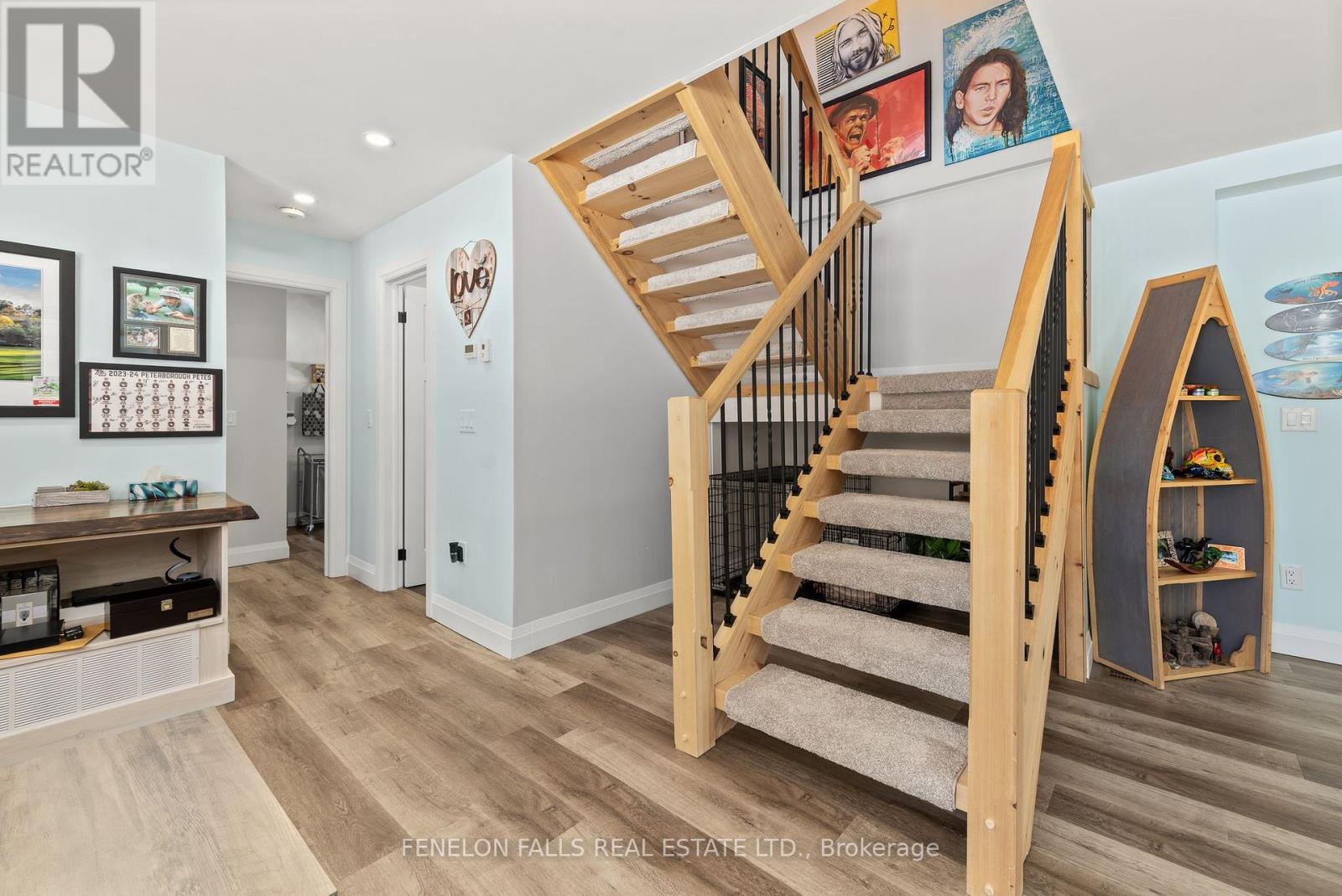 MOTIVATED SELLERS! QUICK CLOSE AVAILABLE! GET IN BEFORE SUMMER AND ENJOY THE BEACH AND BOATING. Your chance to own a fully renovated home in a sought-after Alpine Village waterfront community.Welcome to Alpine Village on Pigeon Lake, just 8 minutes from Bobcaygeon. This beautifully updated home offers a bright, open-concept layout with custom built-ins and a stunning kitchen featuring quartz countertops, stainless steel appliances, and ample storage-perfect for entertaining or everyday living.Enjoy the ease of main floor living with a spacious bedroom, full bath, and laundry, plus walkouts to a private, fully fenced backyard. Relax or entertain on the large deck, or unwind year-round in the screened-in 3-season room complete with hot tub.Upstairs, the primary suite offers a luxurious 5-piece ensuite and a generous walk-in closet.A detached double car garage with its own 40-amp panel and RV plug provides excellent space for vehicles, tools, and recreational equipment.Alpine Village residents enjoy exclusive access to a private park, sandy beach, boat launch, and docking on Pigeon Lake with access to the Trent-Severn Waterway. Annual association fee $175; optional dock fee $75/year.Turn-key, beautifully finished, and offering an exceptional lifestyle-this is your opportunity to enjoy the best of the Kawarthas. But don't take our word for it-come experience this beautiful home and incredible community for yourself. (id:61423)