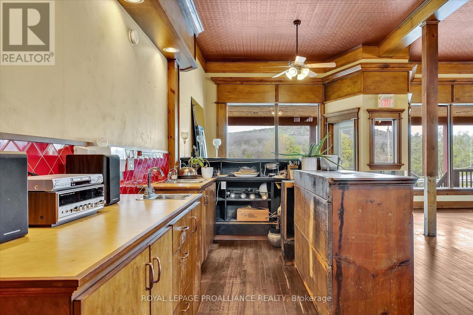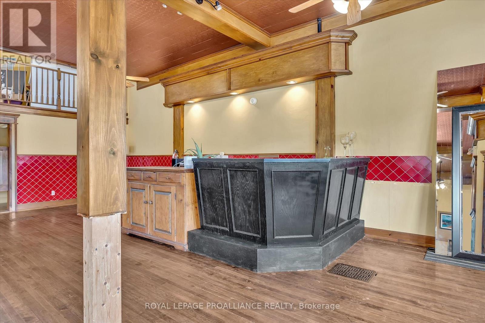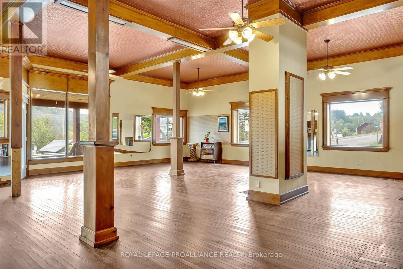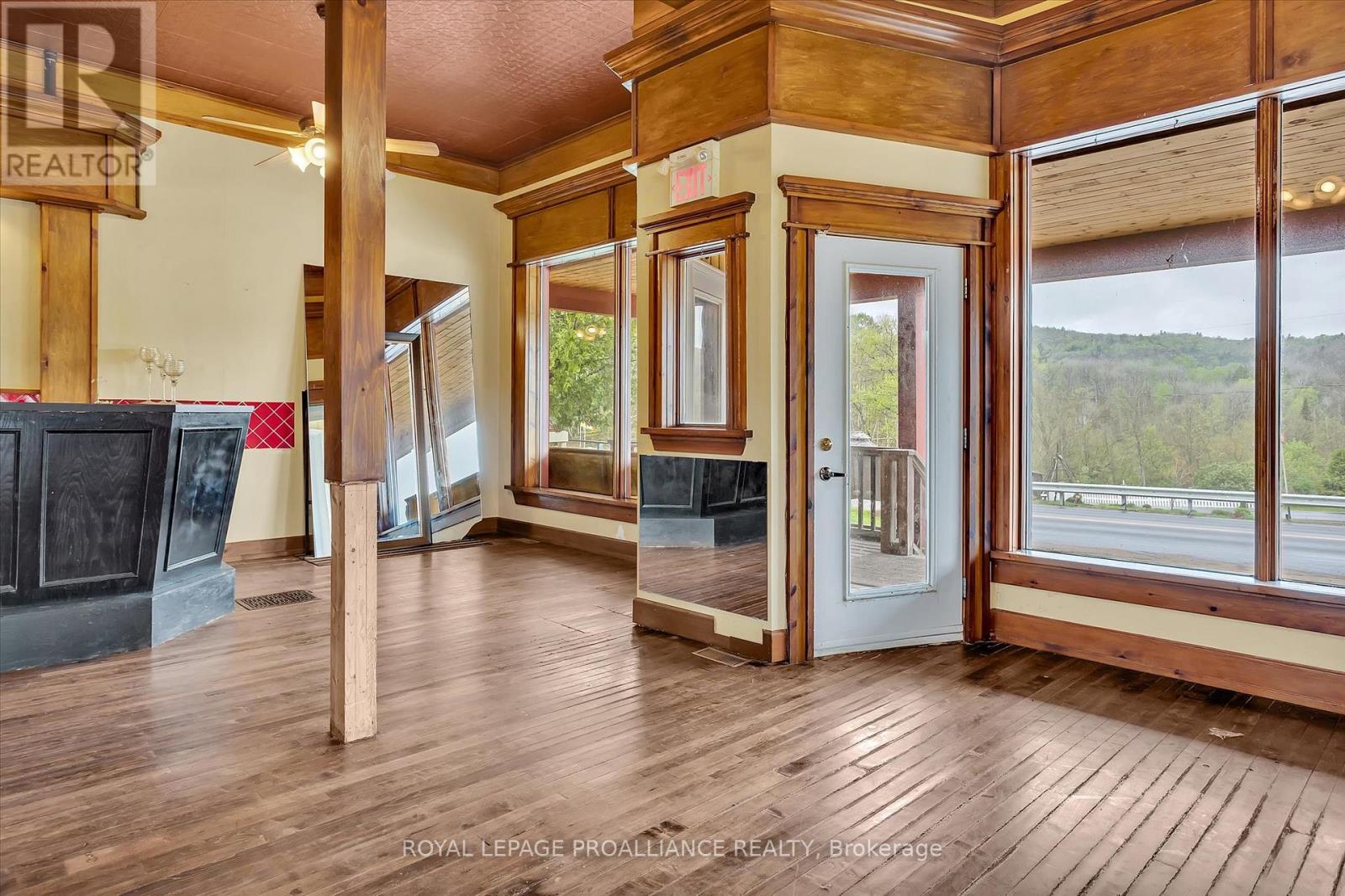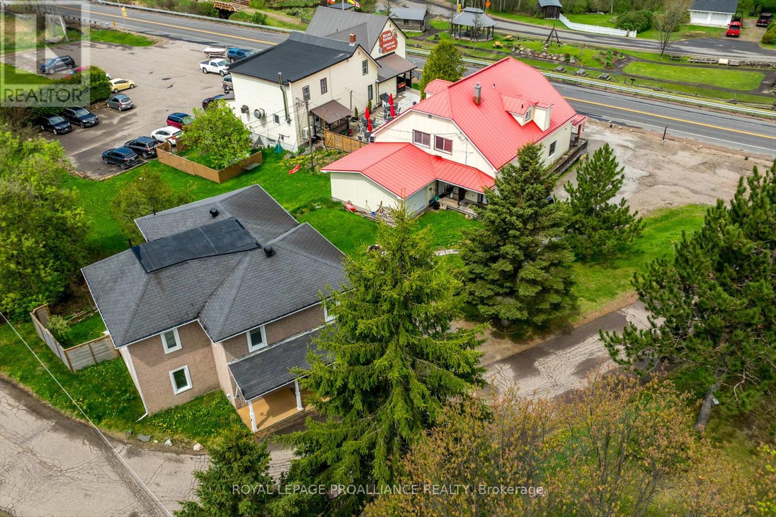 Incredible Turnkey Opportunity on Highway 60 in Wilno, Ontario. Welcome to a rare and exceptional offering in the heart of Wilno - two turnkey buildings on a high-visibility stretch of Highway 60, both included in the price! Whether you're an owner/operator ready to launch your dream business or a savvy entrepreneur looking for a versatile investment, this property delivers unmatched potential. Building One - Commercial Storefront + Apartment. This stunning highway-facing commercial space features soaring ceilings, gorgeous wooden beams and posts, and expansive front windows that flood the space with natural light. With beautiful hardwood floors, a walk-in refrigerator, and a heated, insulated garage, it's perfectly set up for retail, food service, or a studio. A 400 sq ft loft overlooks the main floor, offering flexible space for office use or additional display. Above the commercial unit is a bright and inviting one-bedroom apartment, ideal for live-work convenience or rental income. Building Two - Spacious Country Home - Tucked privately behind the storefront is a charming and meticulously finished 4-bedroom, 3-bathroom home with over 2,100 sq ft of living space. Highlights include a custom kitchen with stainless steel appliances and an island, hardwood flooring, propane fireplace, main floor laundry, and on-demand hot water heater. The primary suite features a luxurious 4-piece ensuite, and the wrap-around porch provides the perfect space to relax and enjoy the peaceful country setting. A Rare Find in Cottage Country. This unique property offers endless possibilities, operate your business up front while enjoying the comfort of a beautiful home in the back, or rent both spaces for solid income potential. Don't miss your chance to own this one-of-a-kind package in a thriving, high-traffic location. Book your private showing today and unlock the potential of this exceptional Wilno property! (id:61423)