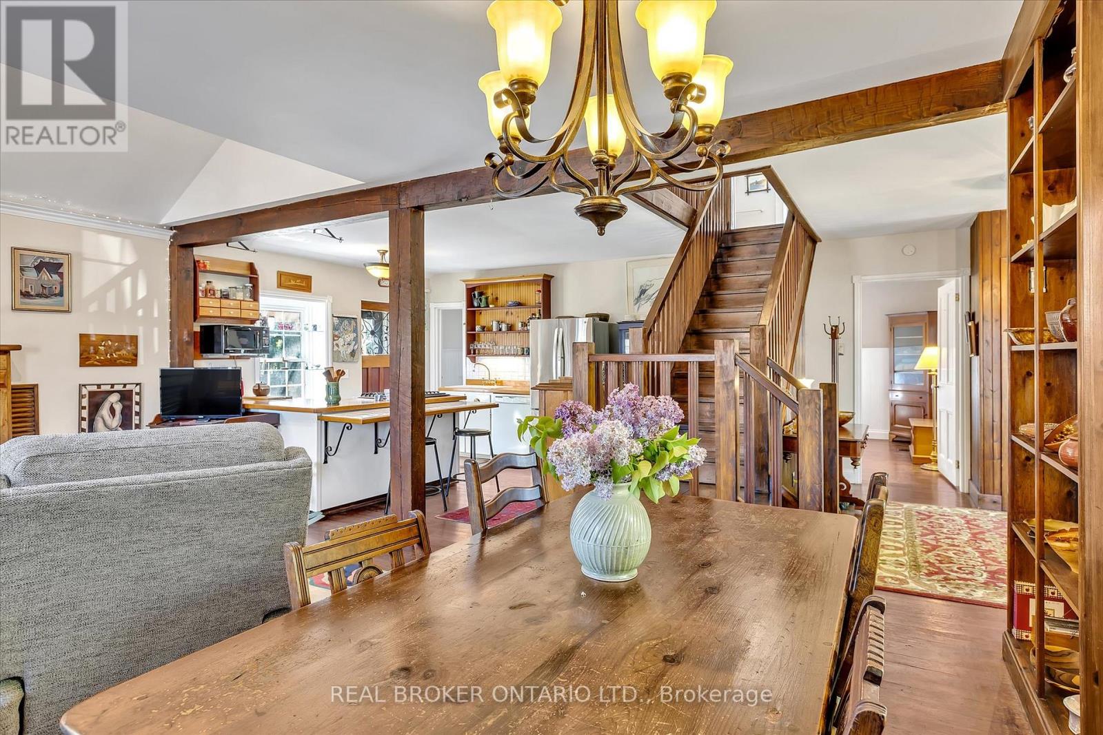 Discover the perfect blend of history and lifestyle in this unique century home with heritage recognition, ideally located just steps from downtown Hastings and the popular Trent-Severn Waterway. Set on a generous 1/4 acre lot, this property is a rare find for retirees, young families, and lovers of historic homes. Enjoy the beauty of lush gardens, raised vegetable beds, a peaceful fish pond, and two versatile garden sheds/workspaces (built in 2019 & 2020). New flagstone walkways and a pergola-covered patio (2019) make outdoor living effortless and inviting. Inside, the home features open-concept living, filled with light and charm. Admire the pine and original maple floors, built-in shelving, and striking gothic-style windows that speak to the home's rich history. Thoughtful updates include a new dishwasher (2025), new furnace (2017), heat pump (2019), gas stove (2017), fridge (2016), and washer/dryer (2016) plus a new tiled walk-in shower and fencing for added comfort and privacy. With modern efficiency and timeless character, this home offers a peaceful retreat with all the convenience of small-town living. A full property inspection report is available upon request. This is your chance to own a piece of the past beautifully adapted for today. (id:61423)