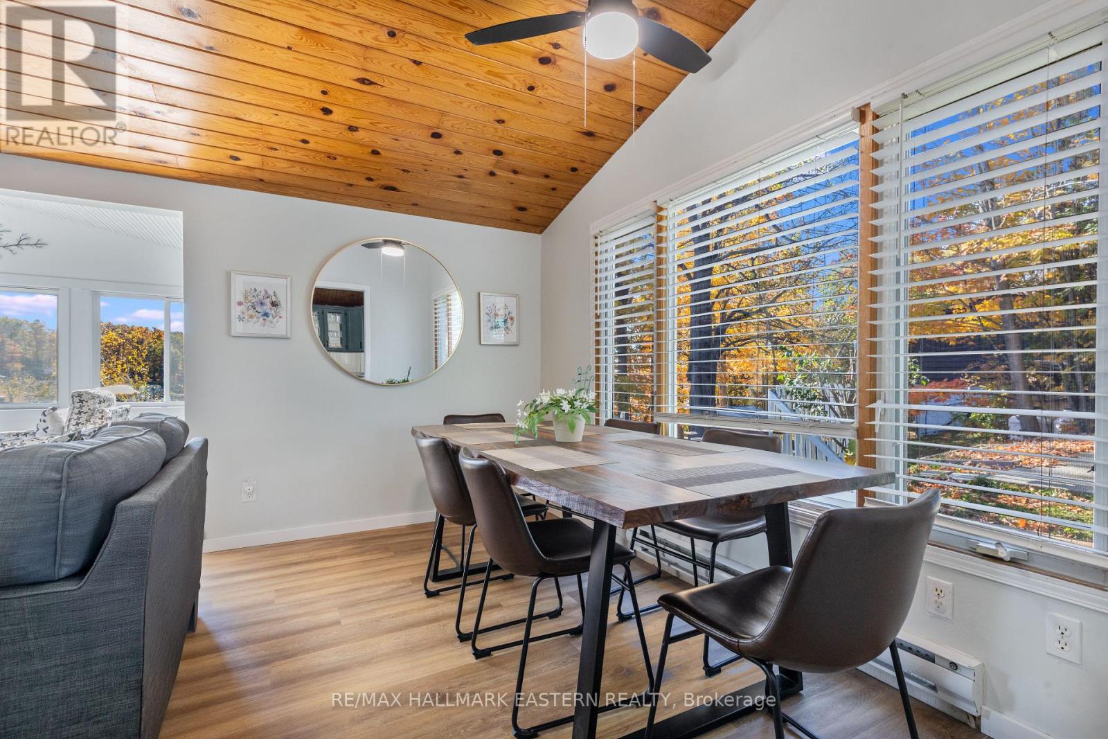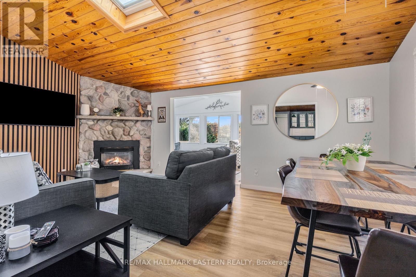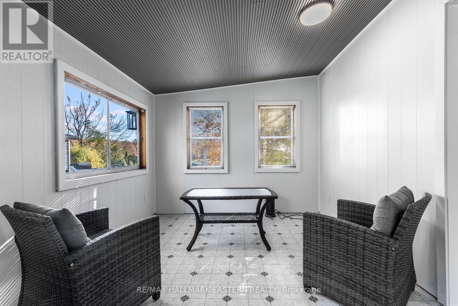This charming bungalow is nestled on the shores of Buckhorn Lake in the serene waterfront community of Beausoleil. It has 100 feet of waterfront with a fabulous south facing open lake view. This quaint two plus bedroom, one and half bath home features outstanding lake views and walk out to a balcony from the primary bedroom. The living room/dining room has a propane fireplace and a commanding lake view. The beautiful sunroom has a stunning lake view and is where you will spend hours watching the changing seasons on the lake. There is a door from the sunroom leading to the deck extending your living out of doors. The lower level offers a rec room, third bedroom, and a new 2 pc bath. There is a walkout to a covered and screened in patio that has a hot tub and sauna overlooking the lake for hours of enjoyment! Imagine relaxing in your hot tub while enjoying the view of the lake. There is a wonderful inground pool that overlooks the lake and is heated to extend your hours of enjoyment later in the season! The pool has had a new liner installed in 2025. NOT FINISHED YET! There is a charming 2 bedroom bunkie which also has stunning lake views and has a door to the lakeside. It has been redone including all new insulation. This wonderful space is where your guests will want to stay. Two sheds and a large T-shaped dock complete this fabulous property! This wonderful property has had extensive renovations completed in 2025 including new forced air propane furnace and duct work, new central air conditioning, a new water system, new flooring throughout the upper level, bunkie completely redone, new pool liner and the home has been completely freshly painted. This property is located on leased land from the Government of Canada. The land lease is $3,080.00 + $1,675.00 for police and fire service, garbage disposal and road maintenance. There is a one time $500.00 owner transfer fee. There are NO LAND TAXES. New 35 year land lease available. (id:61423)