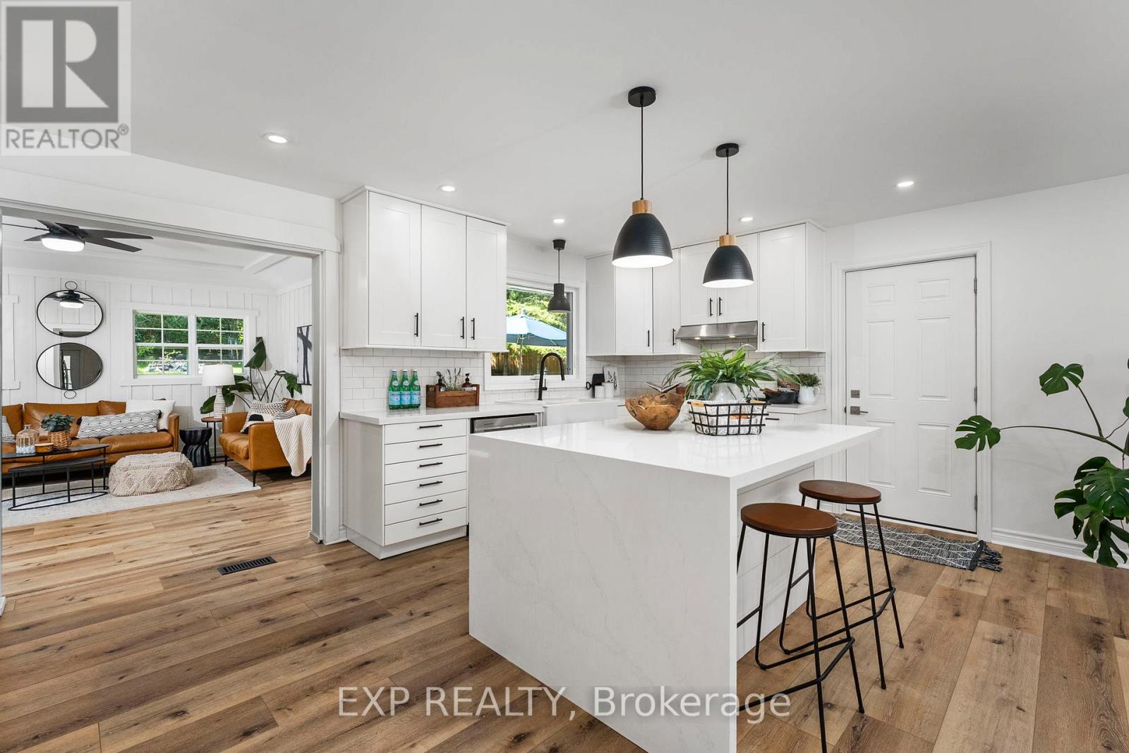 Life feels different at 14 Muskie Drive, calmer, softer, and more intentional.Set on a generous half-acre lot just steps from the water, this beautifully renovated 3bed, 3bath home offers a lifestyle many dream of but rarely find.From the welcoming front porch to the bright open kitchen with its quartz waterfall island, the home has a warmth that instantly puts you at ease. Over the past three years, it has been thoughtfully updated from top to bottom, including new windows and doors, upgraded insulation, smooth ceilings with pot lights, luxury vinyl flooring, fresh paint, and a beautifully hardscaped patio for relaxed outdoor evenings. The home also features a durable, maintenance-free metal roof, offering long-term peace of mind.The property includes a double car garage, providing plenty of storage, workshop potential, or room for recreational gear, a perfect fit for lakeside living.This is the kind of home where you host Sunday dinners, grow your own vegetables, watch kids or pets play freely in the yard, or unwind on the patio after a day on the lake. A place where mornings start slower and evenings end outdoors.And with public waterfront access just steps away, swimming, paddleboarding, and boating become part of your everyday rhythm rather than a weekend treat.14 Muskie Drive is more than a move, it's a lifestyle shift.Experience the calm, comfort, and connection this property brings. Your next chapter starts here.Here's a list of our recent upgrades just for you!2022: Attic Insulation, Iron & UV Filter, SS Kitchen Appliances & Quartz Counters With Waterfall 2023: Professional Hardscaping & New Flooring & Paint Throughout2024: New Fence2025: Windows & Doors & Water Softener (id:61423)