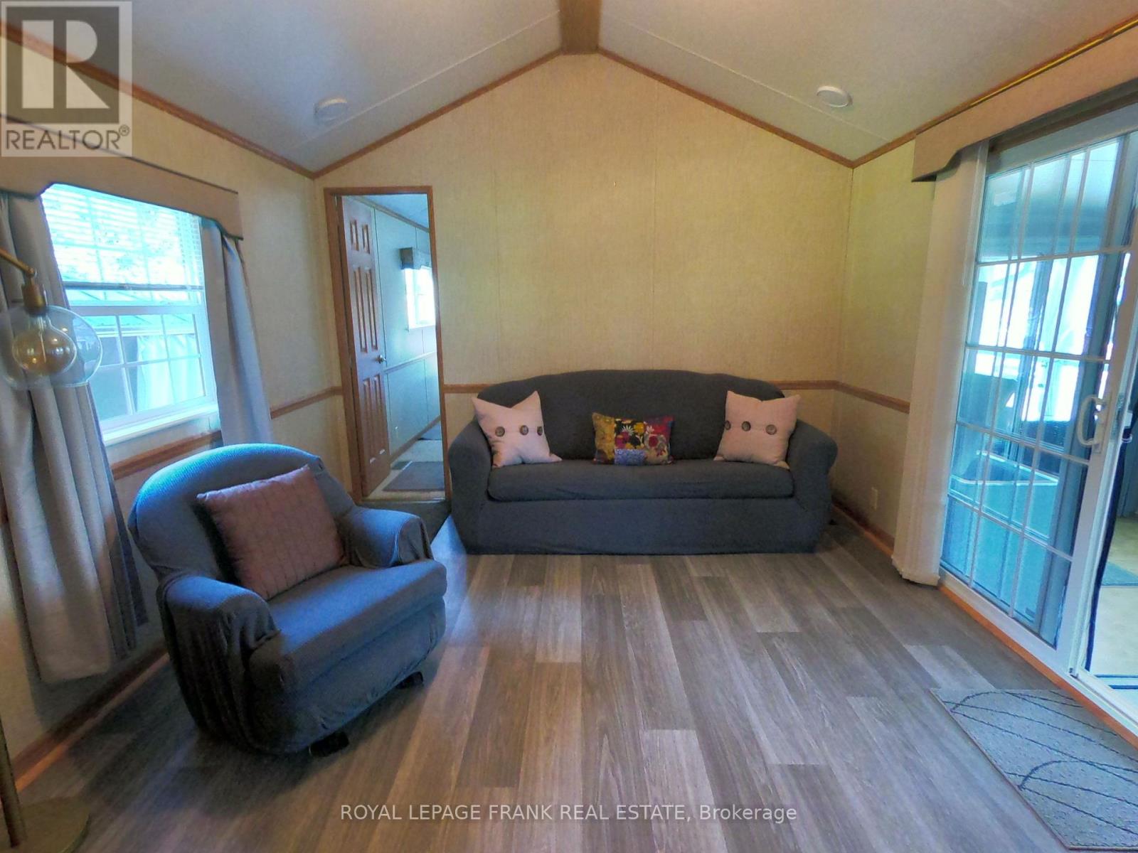 This 2 bedroom, 2 bathroom, 2006, spacious park model home with large sunroom addition with walkouts to front and rear covered patio areas is meticulous and shows like brand new! Enjoy your May to October affordable home away from home in Shady Acres Park on Rice Lake, less than 90 minutes from Toronto. 2026 land lease fees have been paid. Affordable cottage ownership for those weekend and holiday getaways or the perfect spot for snowbirds to call their summer home. Indulge in the numerous Park activities (social events, boating, fishing, pool, basketball, volleyball, horse shoes, shuffleboard, playground, etc) or enjoy the quiet, peaceful, country life. Open concept living, dining & kitchen areas with vaulted ceilings. Primary bedroom with 2pc ensuite and plenty of storage. Guest bedroom with built in bunks. Main 4pc bathroom. Shed. BBQ. Fire pit. You deserve a break today.........move in ready........Enjoy the summer of 2026! (id:61423)
