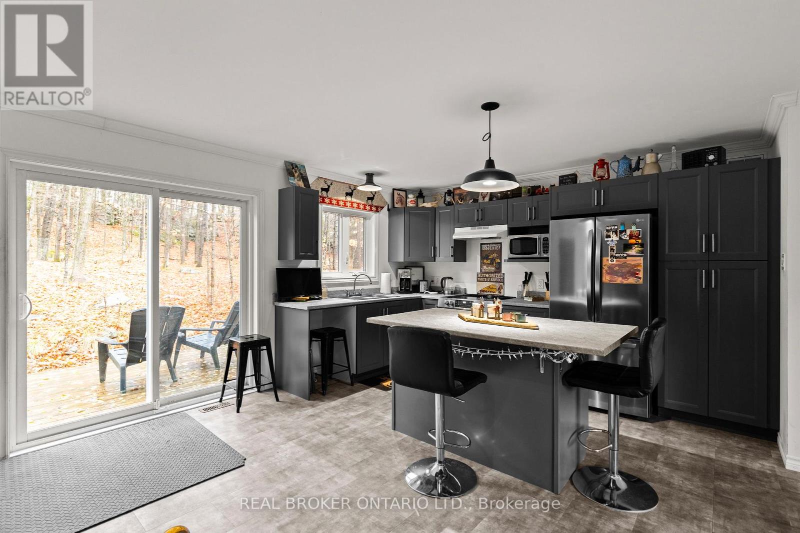 CHECK OUT THIS MODERN COUNTRY BUNGALOW. BEAUTIFUL 3-BEDROOM, 1-BATH GUILDCREST HOME ON A PRIVATE 1-ACRE LOT, JUST 10 MINUTES FROM MINDEN. BUILT IN 2022 AND SURROUNDED BY MATURE TREES, THIS TURNKEY BUNGALOW FEATURES AN OPEN-CONCEPT LAYOUT, BRIGHT LIVING SPACE, AND WALKOUT TO A LEVEL YARD AND BACK DECK. THE KITCHEN OFFERS MODERN GREY CABINETRY, A LARGE ISLAND, AND AMPLE STORAGE. ENJOY LOW-MAINTENANCE LIVING WITH VINYL SIDING, PROPANE HEAT, NEW SEPTIC, DRILLED WELL, AND DRIVEWAY. INCLUDES 7 YEAR TARION WARRANTY AND GUILDCREST 10-YEAR WARRANTY. YEAR-ROUND MUNICIPAL ROAD, CLOSE TO LAKES, TRAILS, AND ALL AMENITIES. (id:61423)
