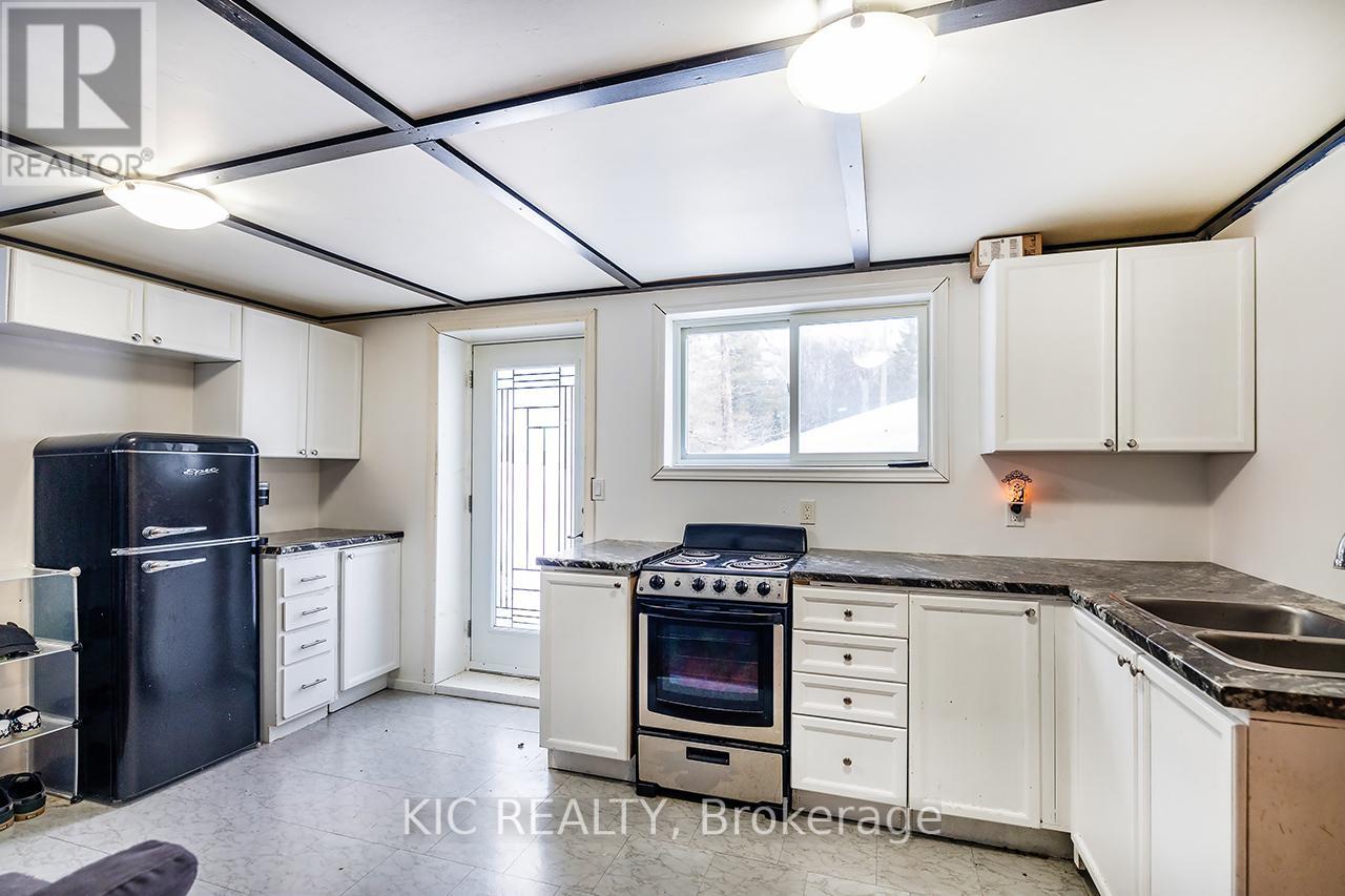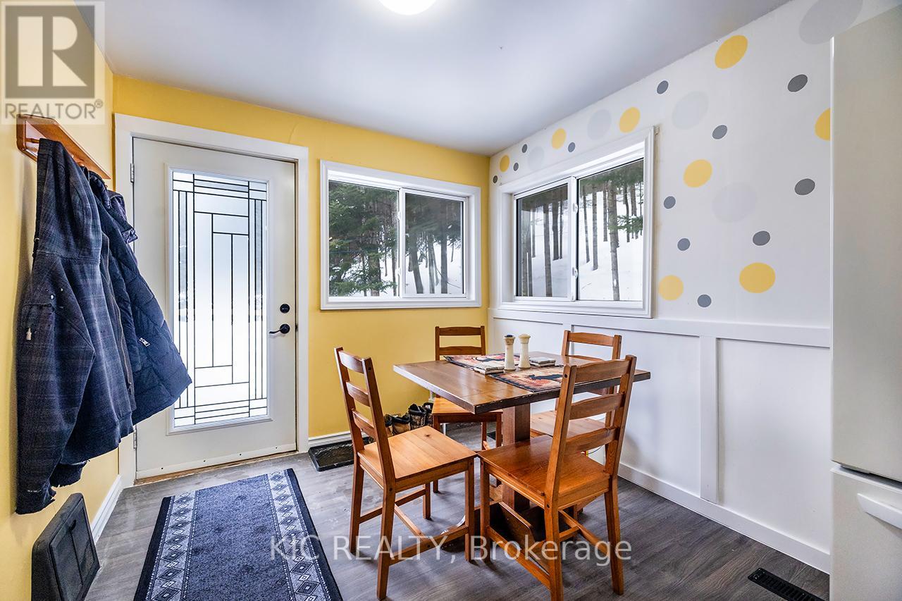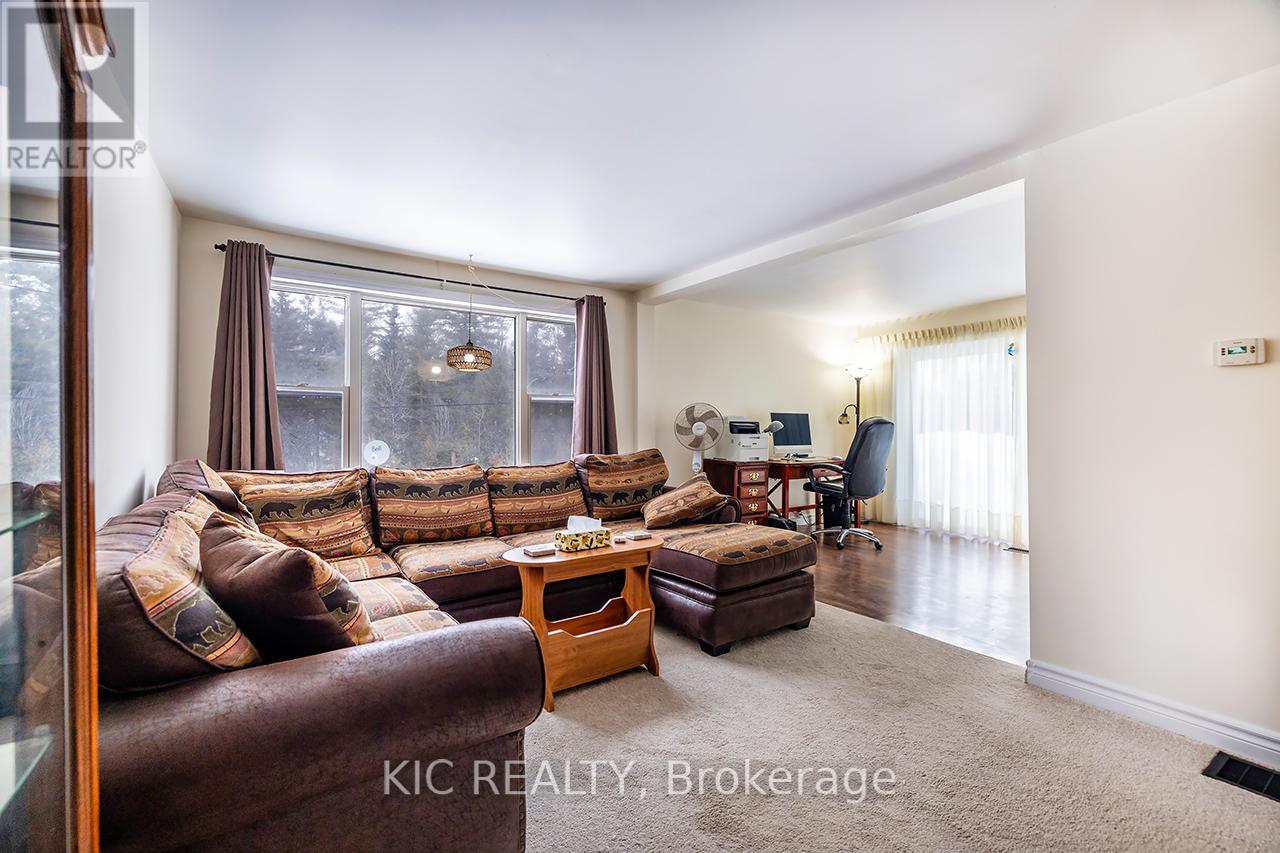 Cute and cozy, raised bungalow, walking distance to Haliburton Village! 3 plus 1 bedrooms with separate in-law suite located in ground level basement. Large windows throughout provide loads of natural light, large bedrooms with oversized closets! Main level has 4 pc bath and laundry, eat-in kitchen and living/dining with 8' sliding glass doors (2021) walkout to patio over garage! Ground level basement features 1 bed, 1 bath in-law suite with separate entrance! All windows and exterior doors replaced 2021. Water filtration system 2022. New septic 2025, New Oil tank 2025More storage room in basement and built-in garage has interior garage door for even more interior parking for ATV or motorcycles! Enjoy the tranquil sounds of the Drag River nearby, with nearly an acre of wooded property, enjoy hiking your own trails and the many wildlife visitors that frequent the site! Large campfire area, plenty of cleared space to enjoy. Parking areas and laneway behind house all resurfaced/gravel 2022. Comfortable year round living, or treat it as a seasonal getaway, with additional rental income from the lower suite! Offers anytime! (id:61423)